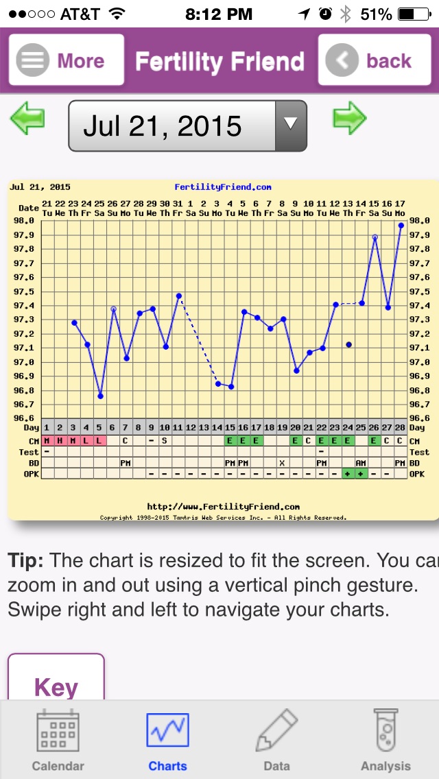 • Why the discarded temp on the 13th? Depending on what your temp is today, I think it looks like you O'd on the 13th or 14th.