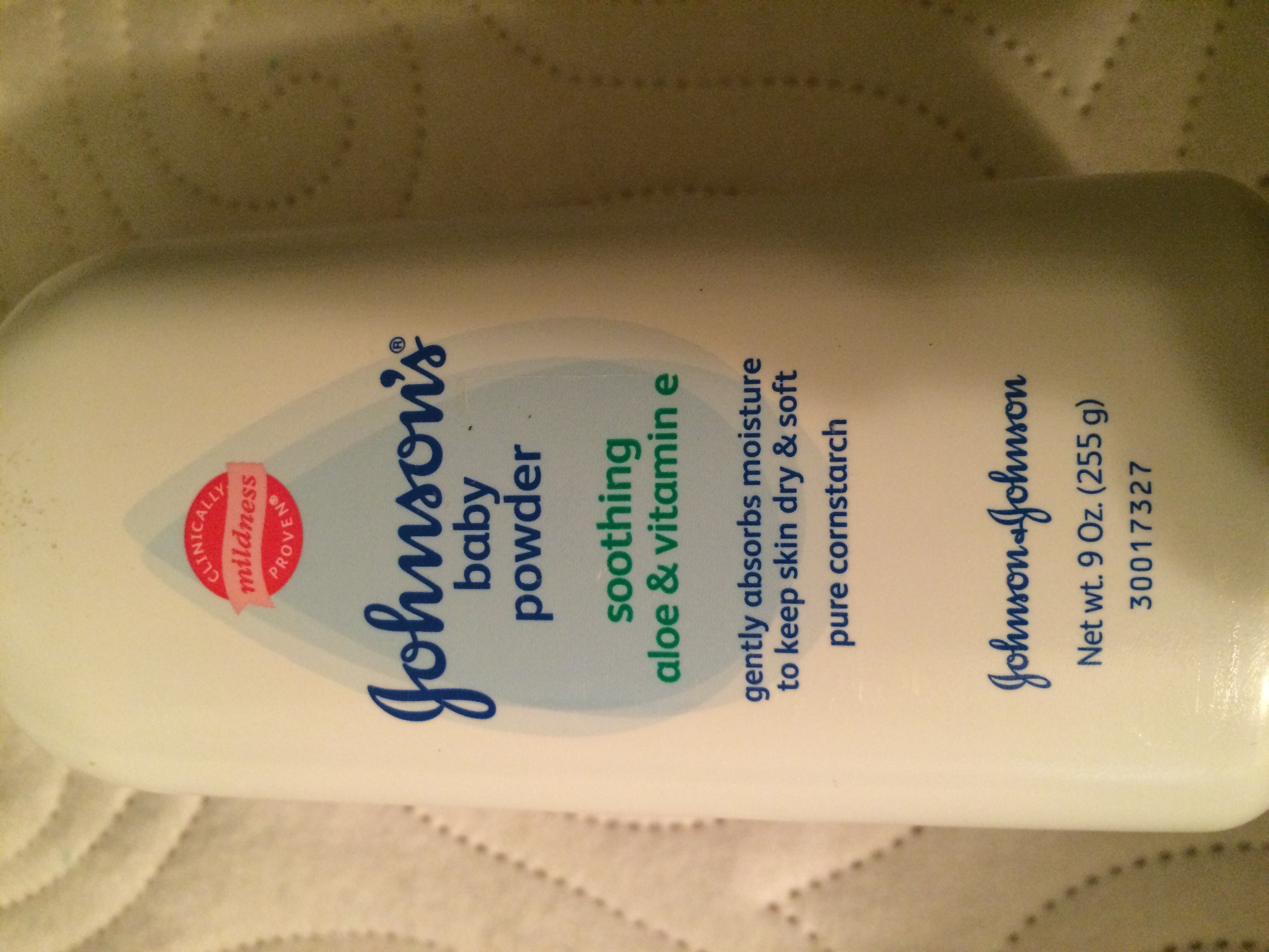 • I just learned that the talc in baby powder can cause uterine cancers due to the link it has to asbestos. I was using J&J powder (which has talc) and kinda freaked out. Lol. Burts bees uses corn starch which I'll be getting soon.