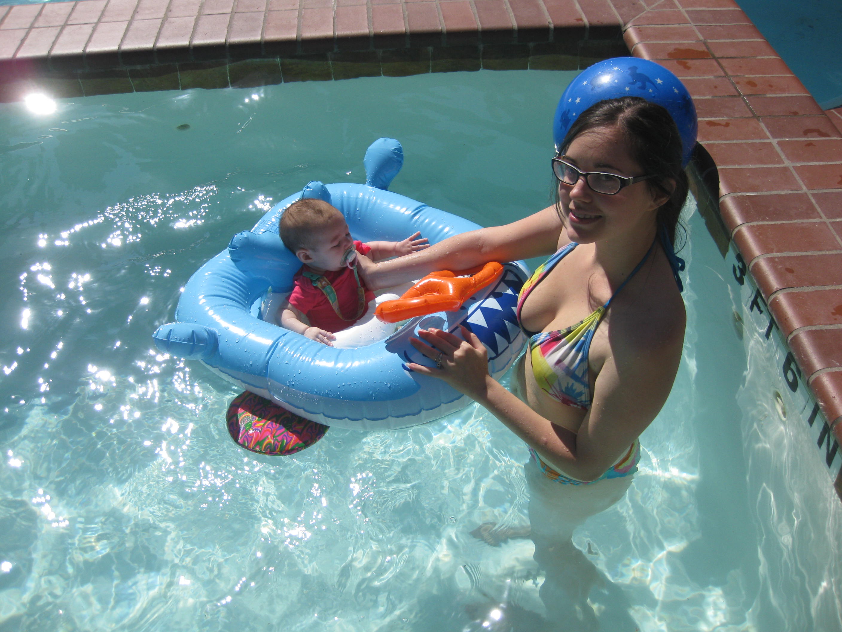 I have the springway baby float too. It's a bit big for dd this year because it's from 9-24 months but it keeps her shaded while we hold her and it will be great for next year.