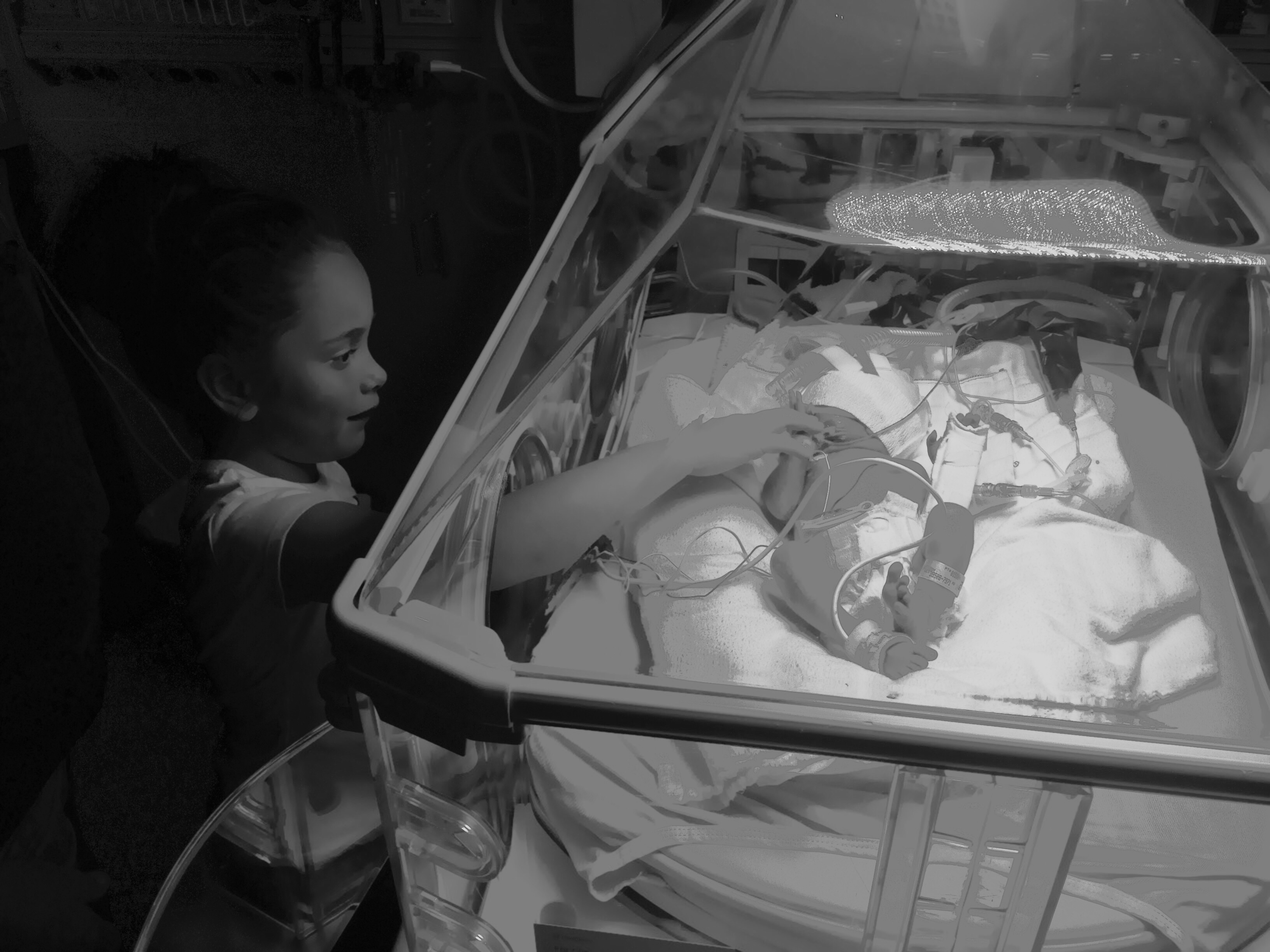 A very proud big sister who was so gentle and afraid to touch them because they are so small! The colour is terrible because they are under the uv lights.