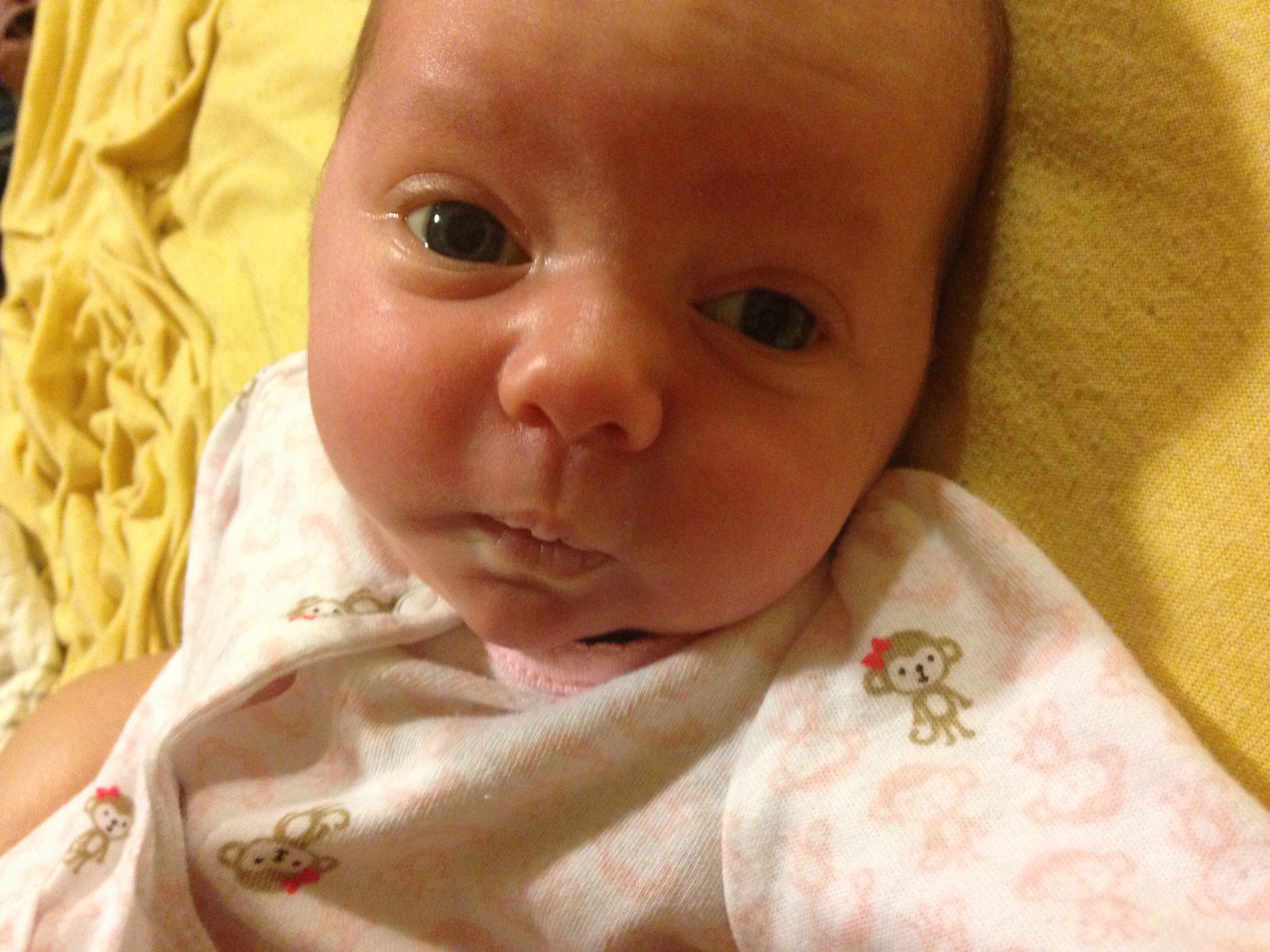 Kinsley can finally fit into her newborn pants without them falling off & loves her new swing! I can't believe how far she's come. Love seeing all these adorable babies :x