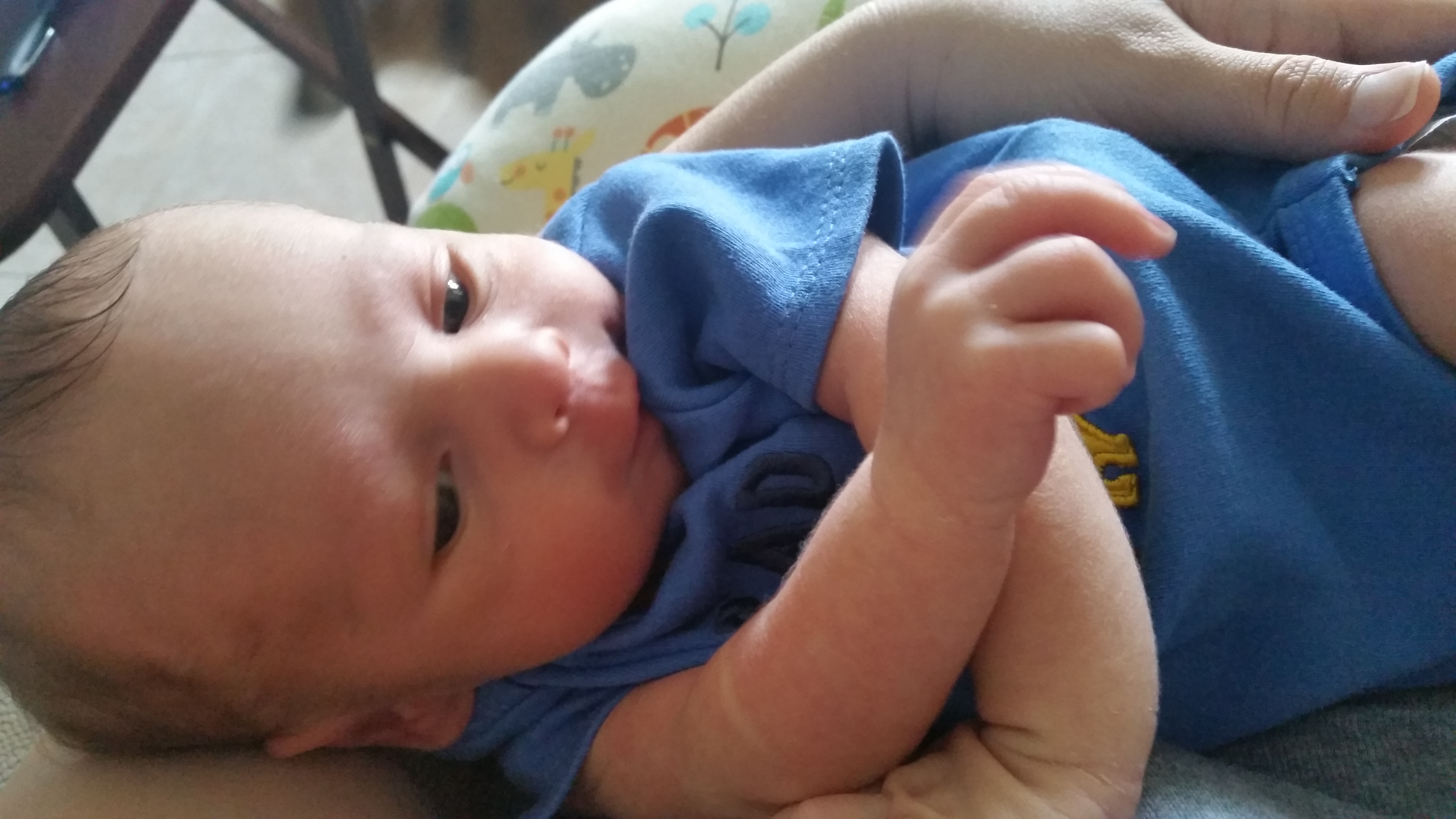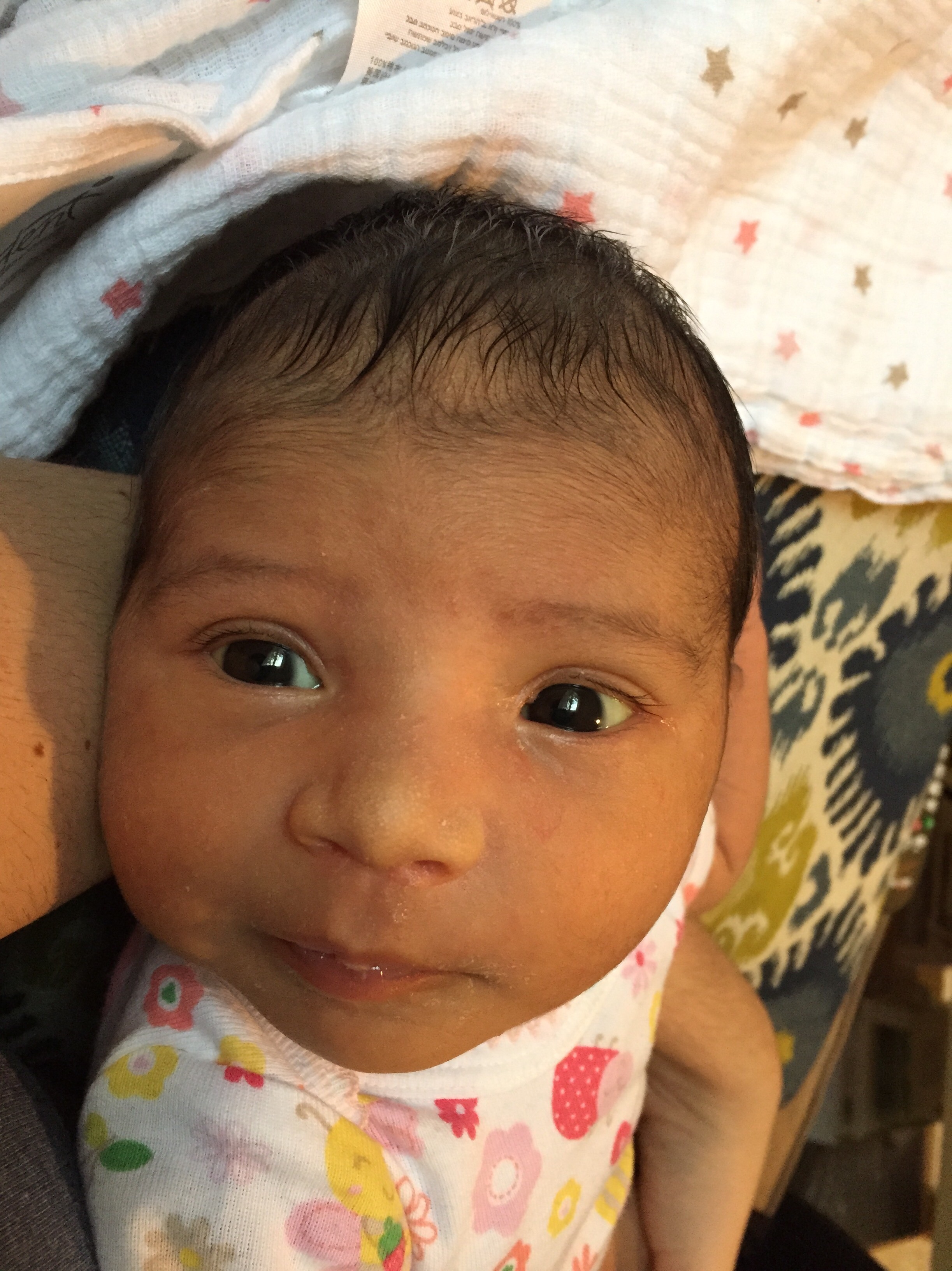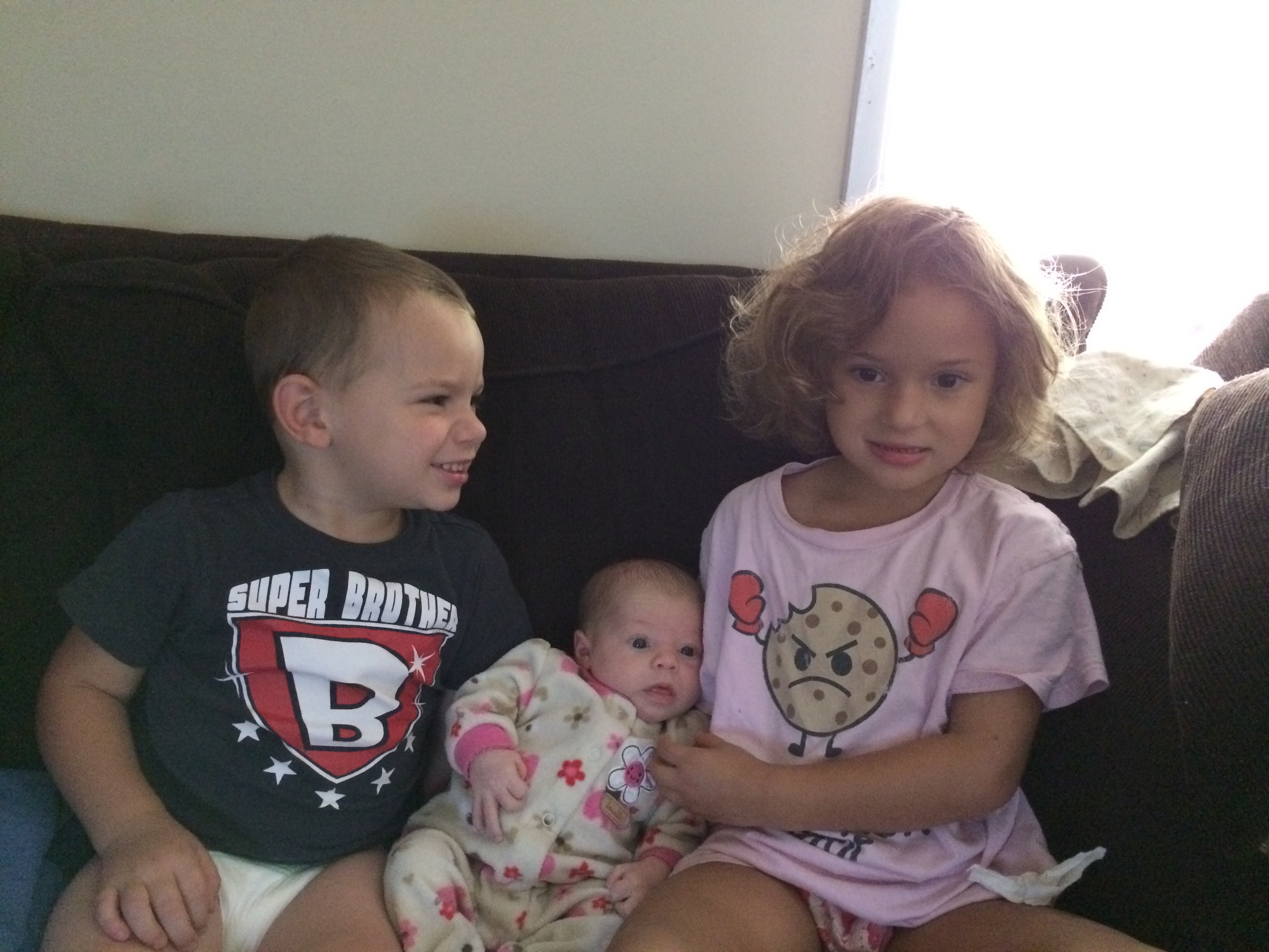 Tessa is 3 weeks old today! Nursing like a pro, sleeping well, loves being in the k'tan carrier and is fascinated by her brother and sister.