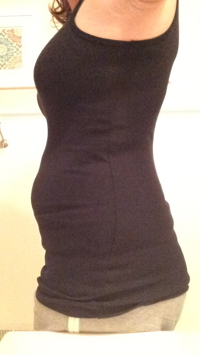 This was Monday at the end of the day. I still think I'm bigger in the evening than the morning (maybe just denial) but 14w and this is getting harder to hide!