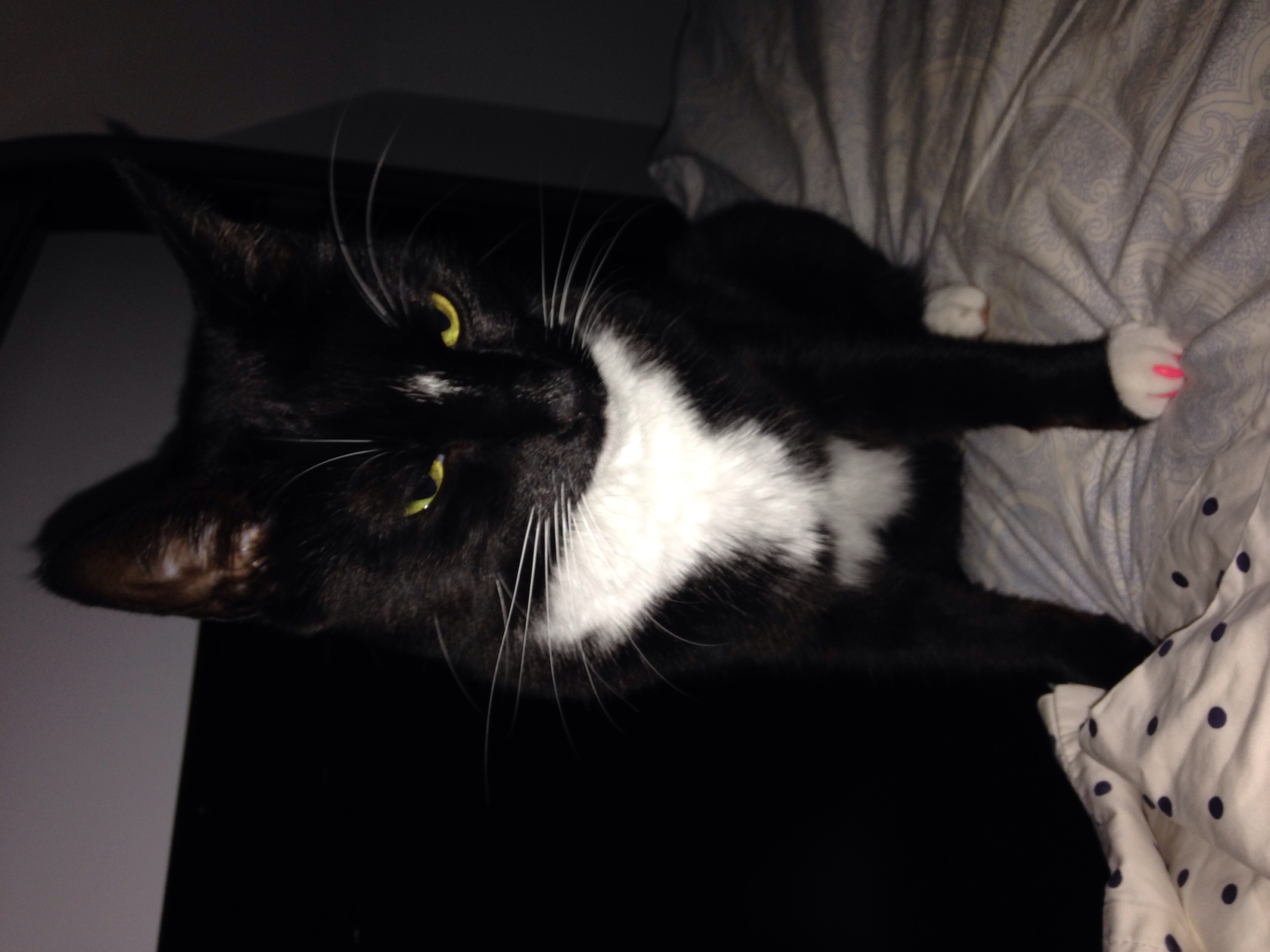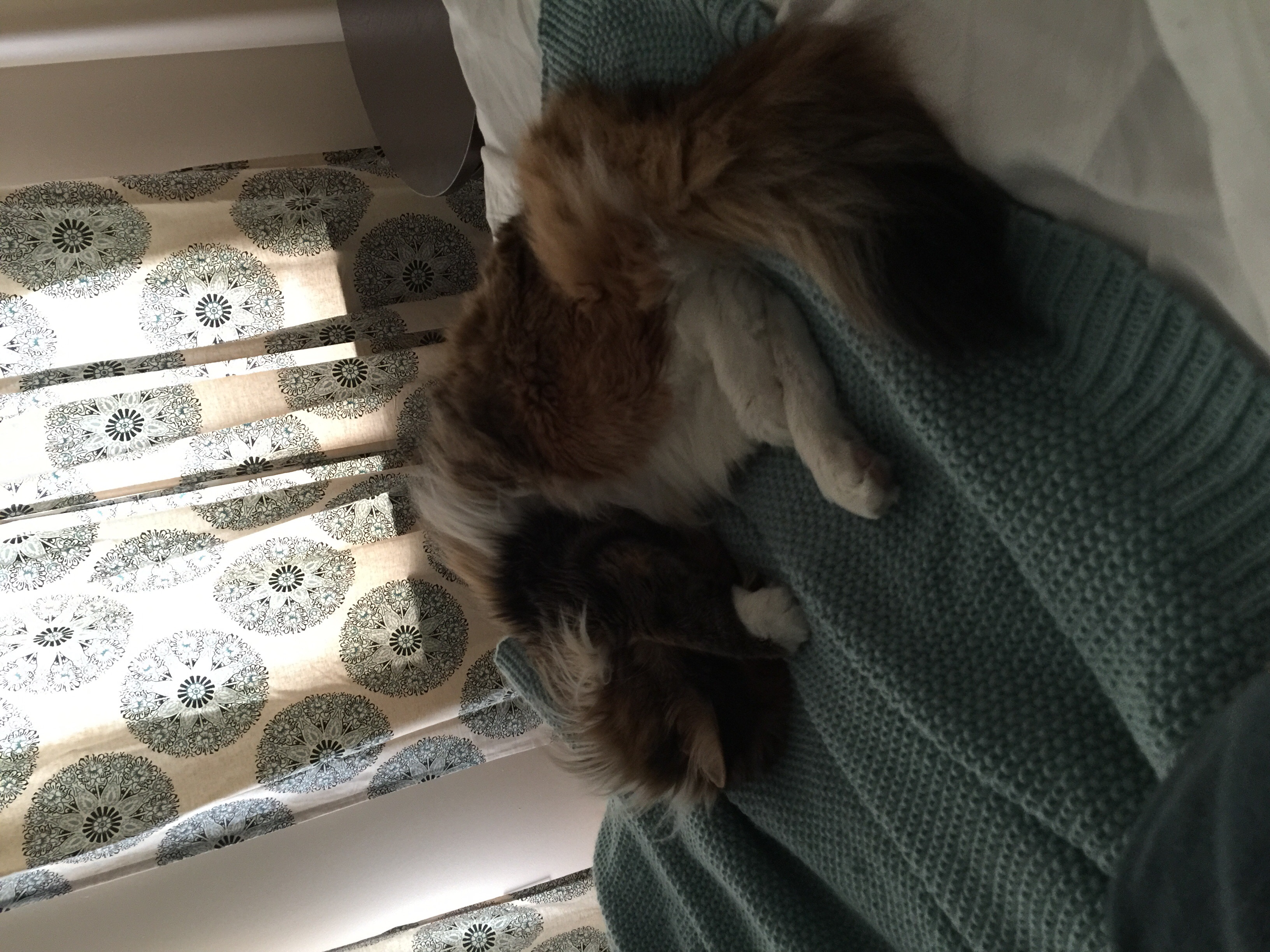 Elsa is the white one in the back, (typical I know). And Finnegan (Finn) is the black and white one in front. He's the major trouble maker who chews holes in my walls and book shelves