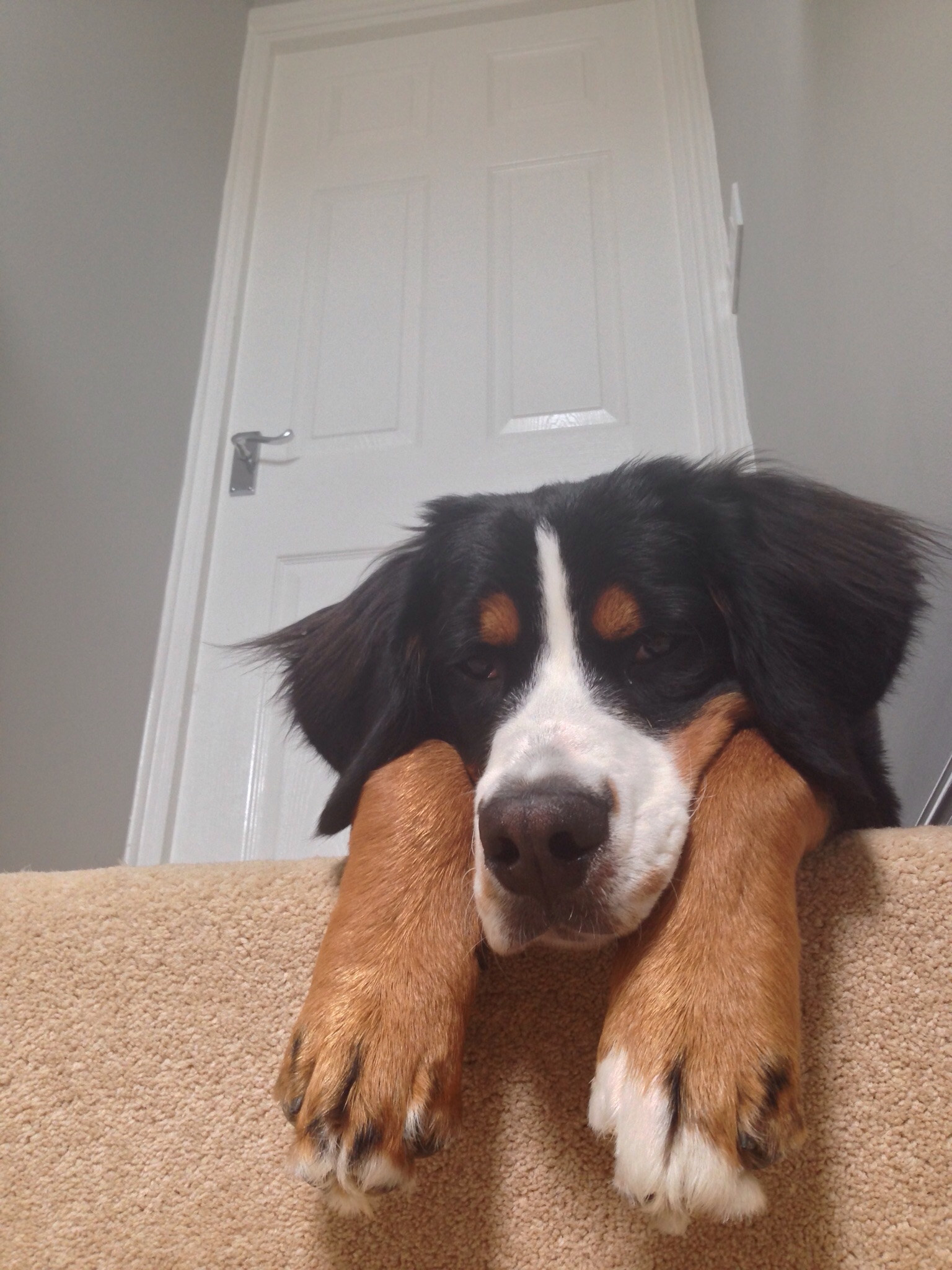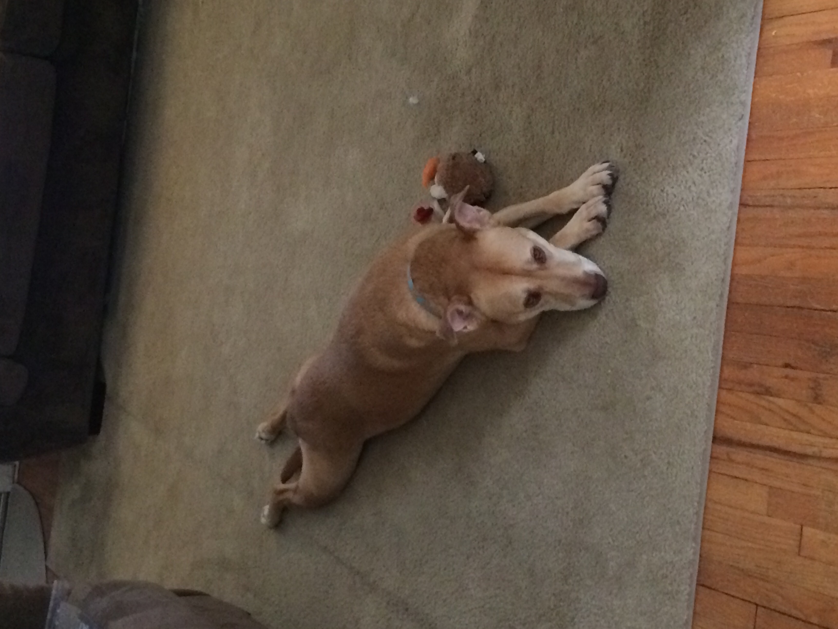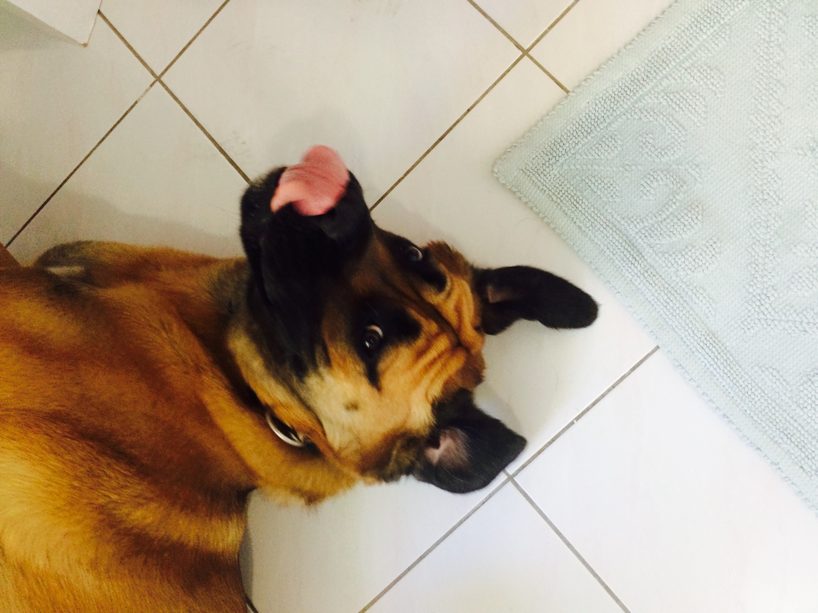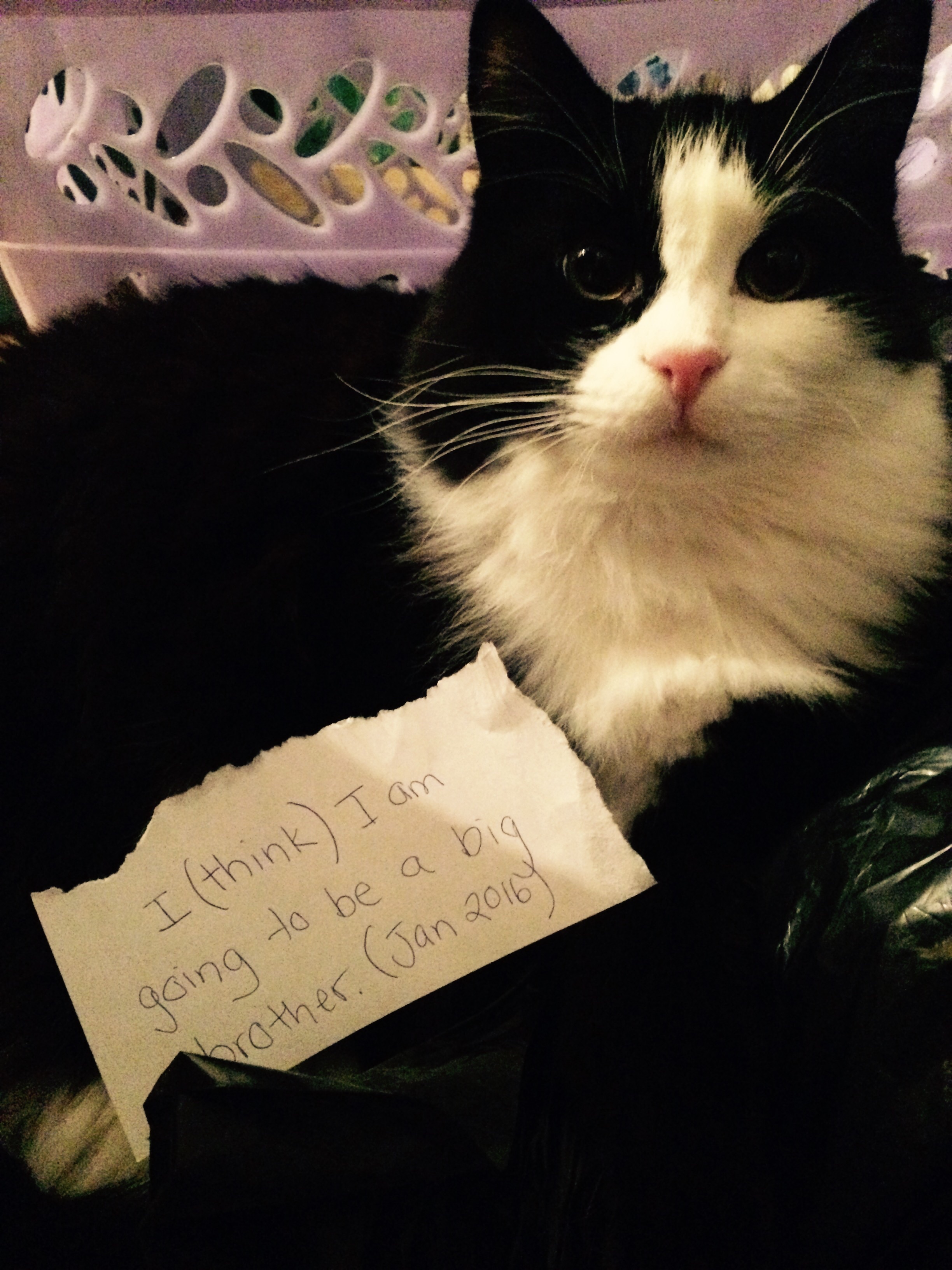 This photo is how I told my hubby we were expecting. I wrote I think because it was a faint positive a week and a half before my expected period. Fur baby is named Jasper.