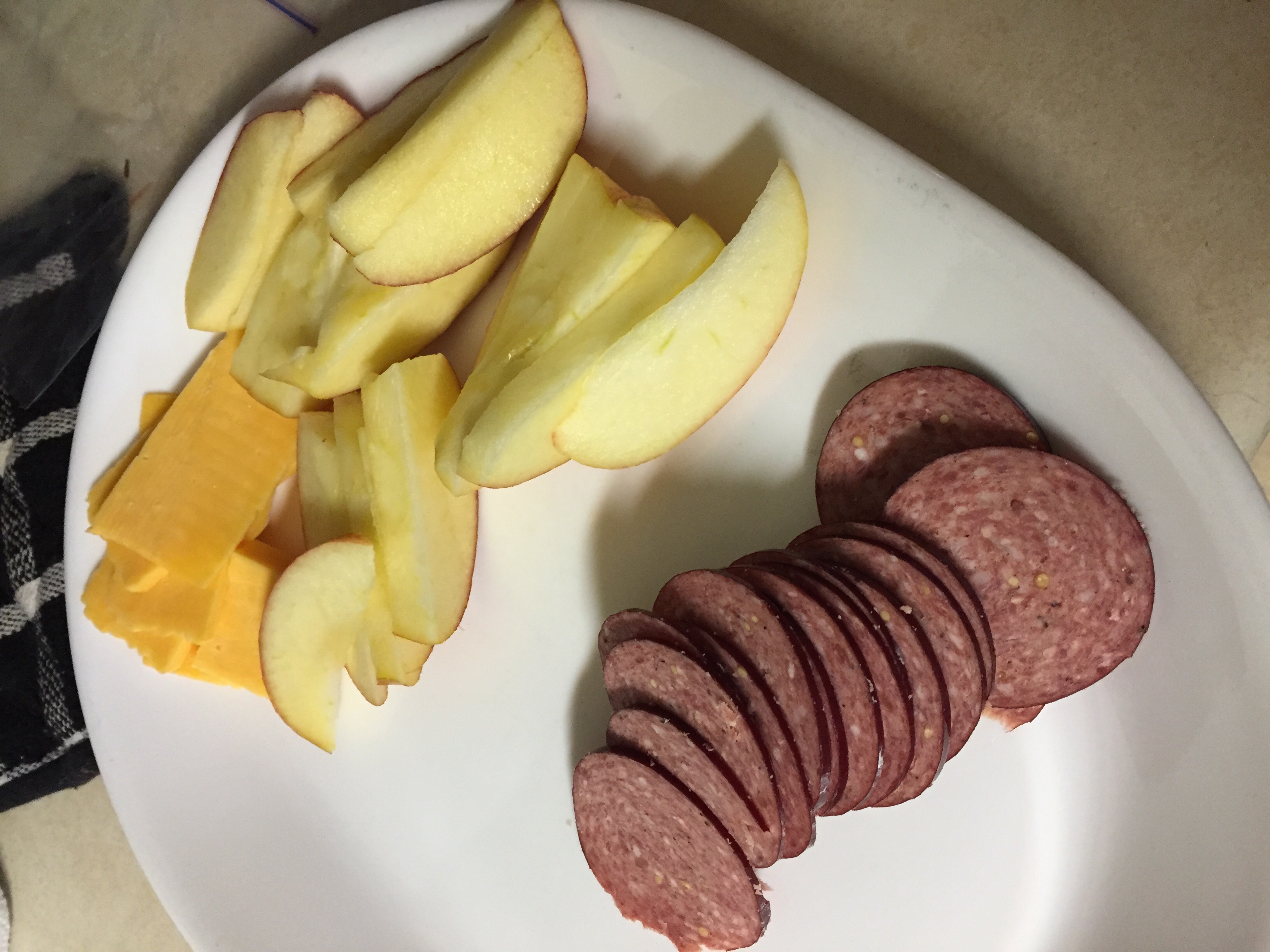 I have a bad case of the Mondays so I didn't even bother with a normal lunch. Today all that sounded good was an apple, some cheese and some summer sausage. It was really good!