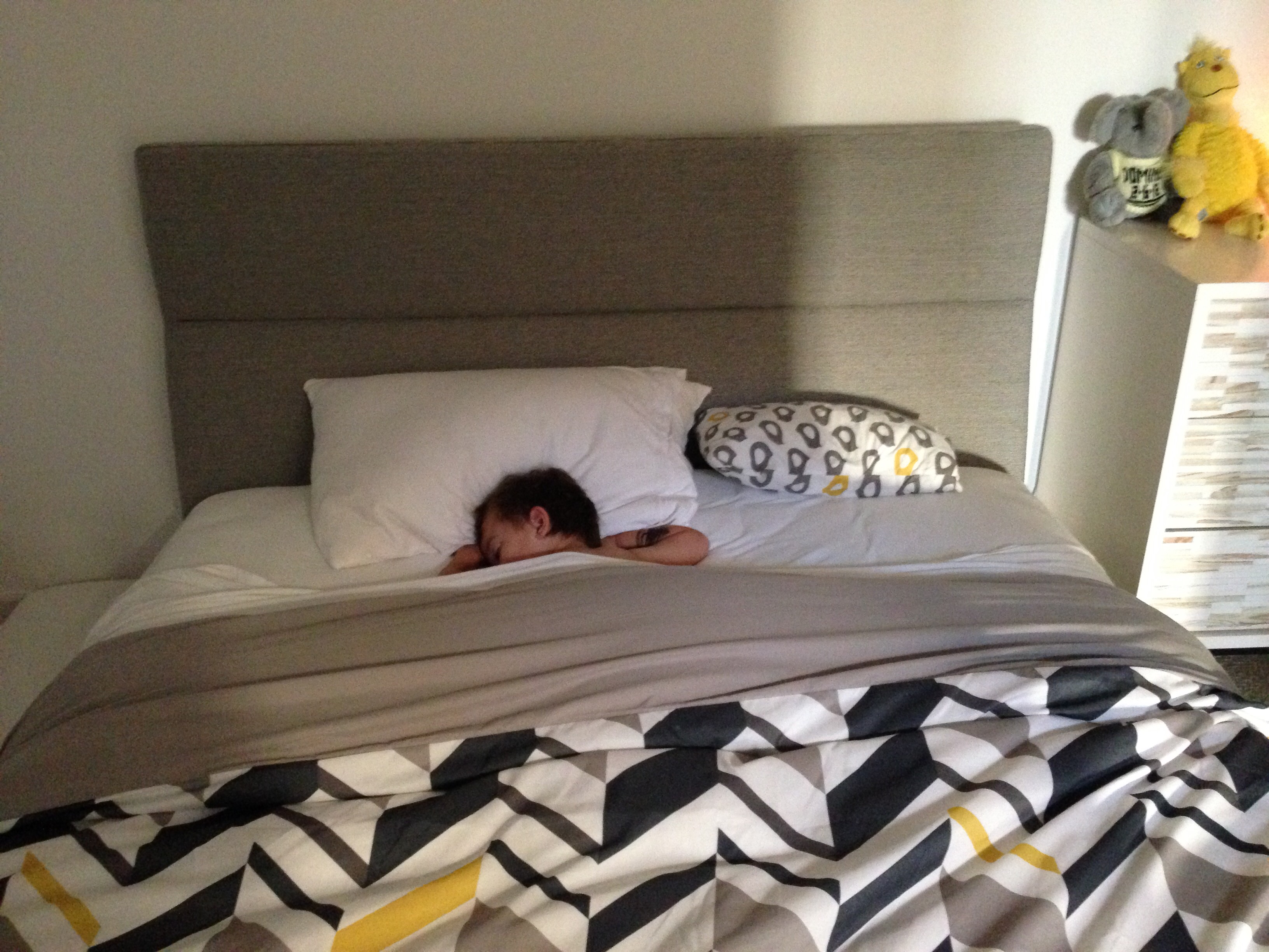 First ones are in the old house and the ones with a bed are in the new place. I especially love his bed because it is so low, and there were times where he would roll out of it, and he would just climb back in.