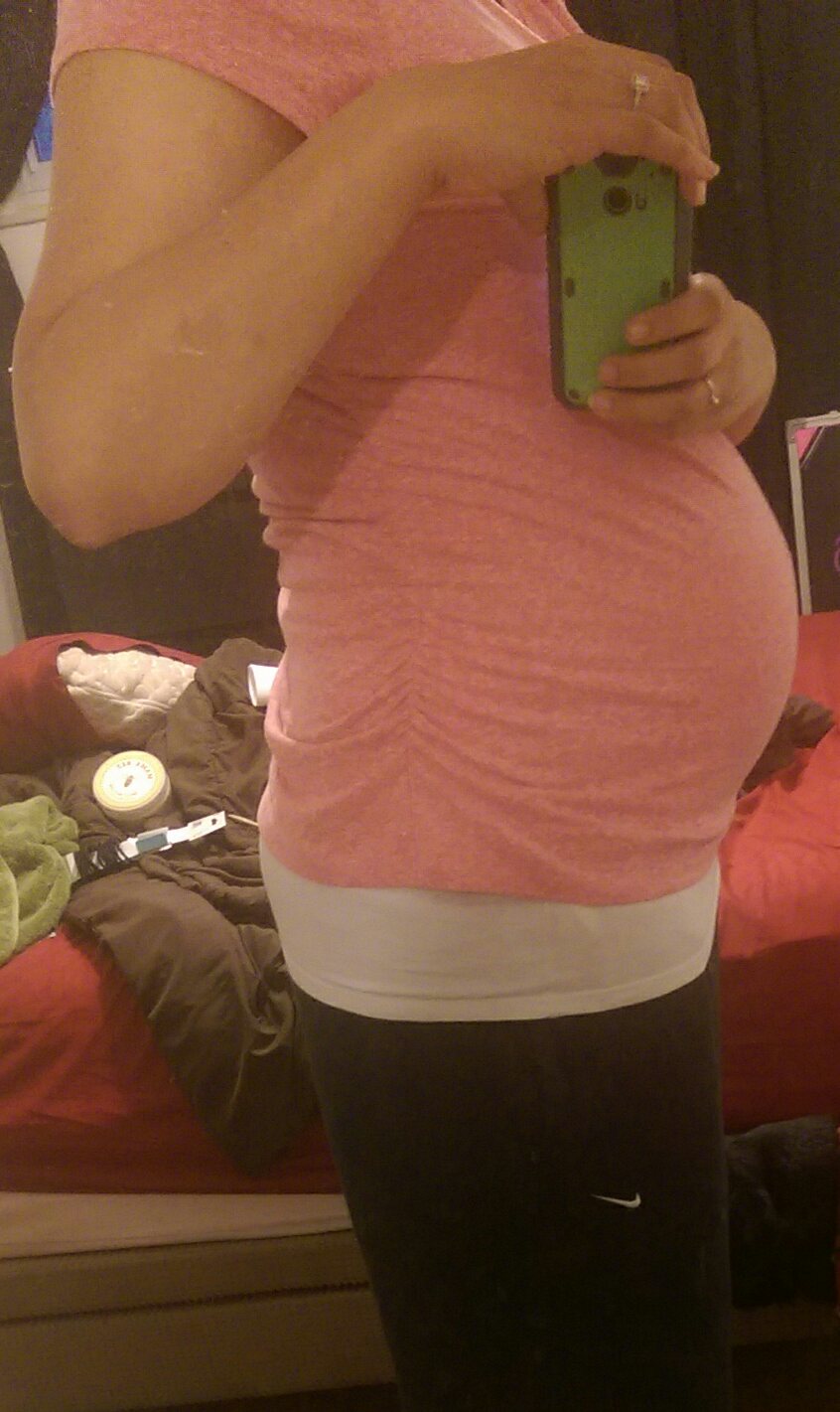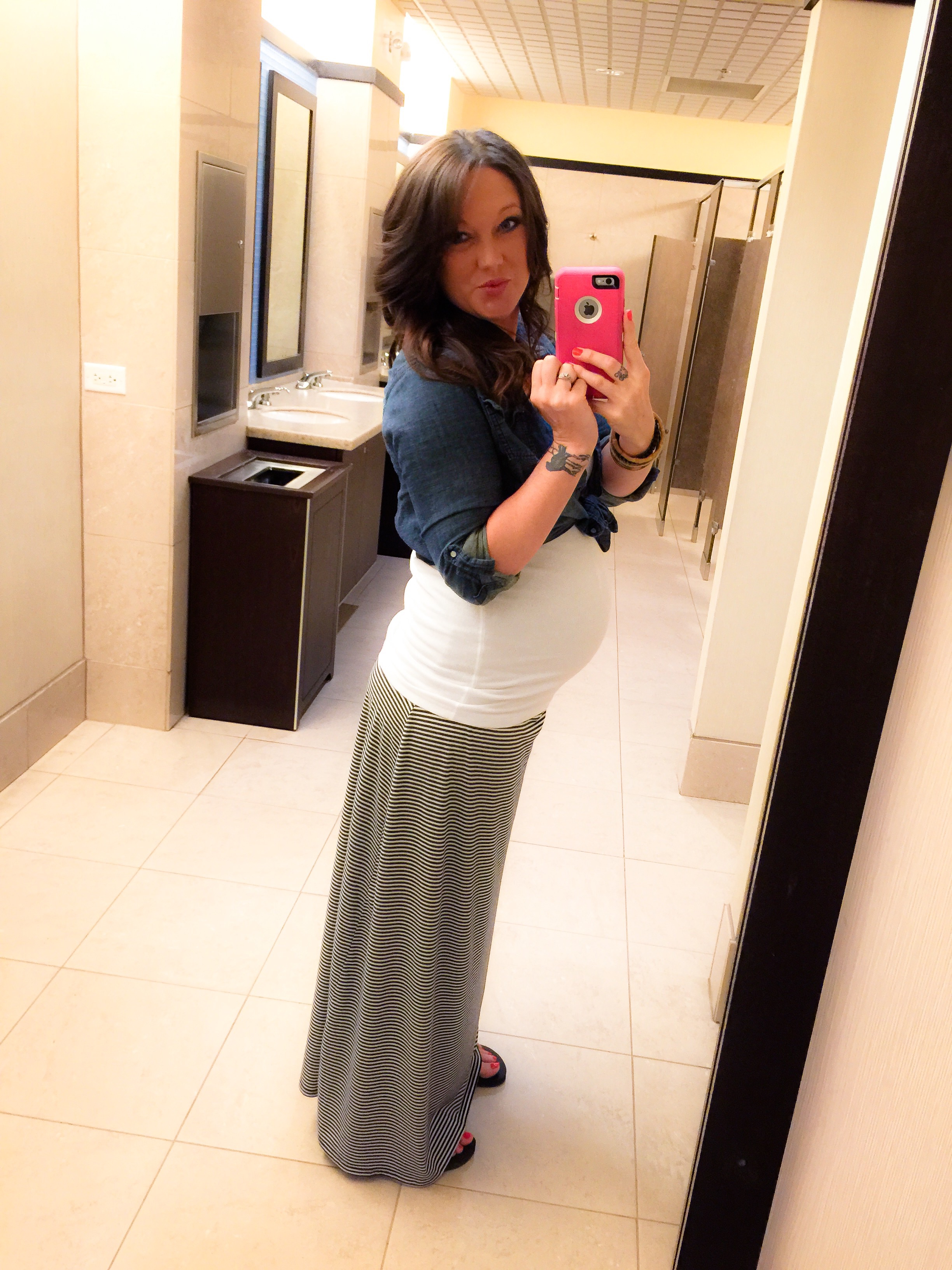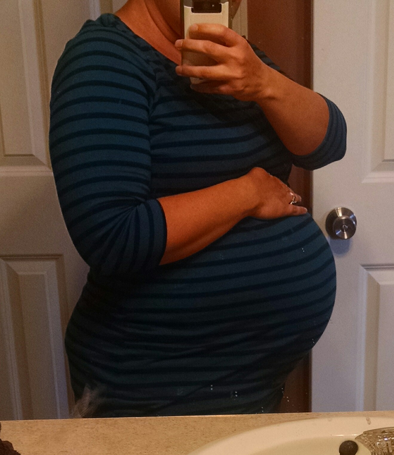 #1 I was wearing the same shirt for the same week when pregnant with my last son. (Fun to compare). And standing in the same spot!!