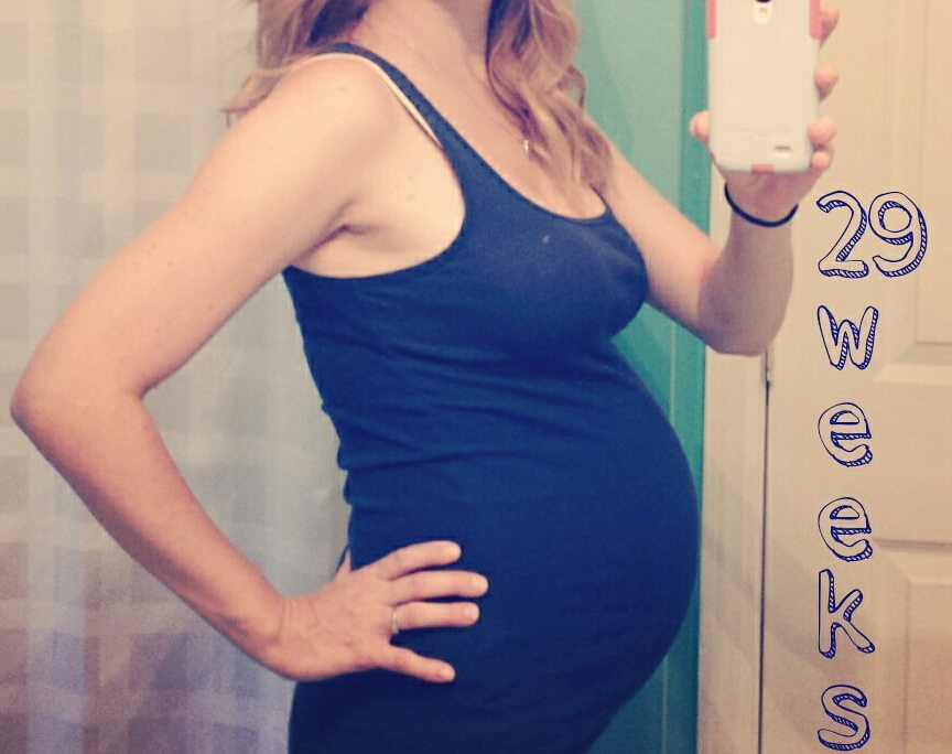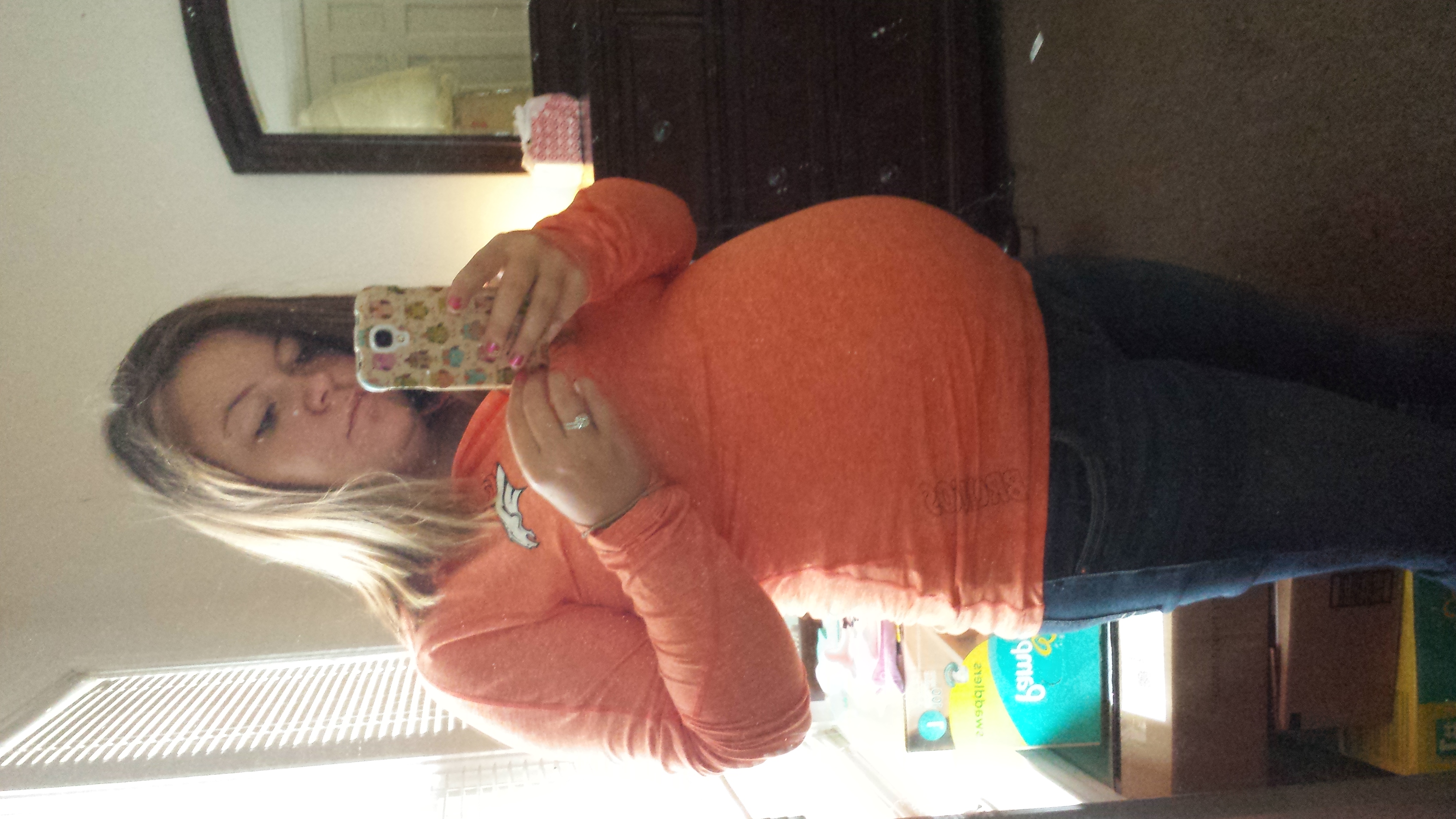 29 weeks 3 days. We got sweater weather here in Wisconsin this week and I love it! Baby's dad wanted to listen to her and she kicked him in the face...twice! That's my girl. :x