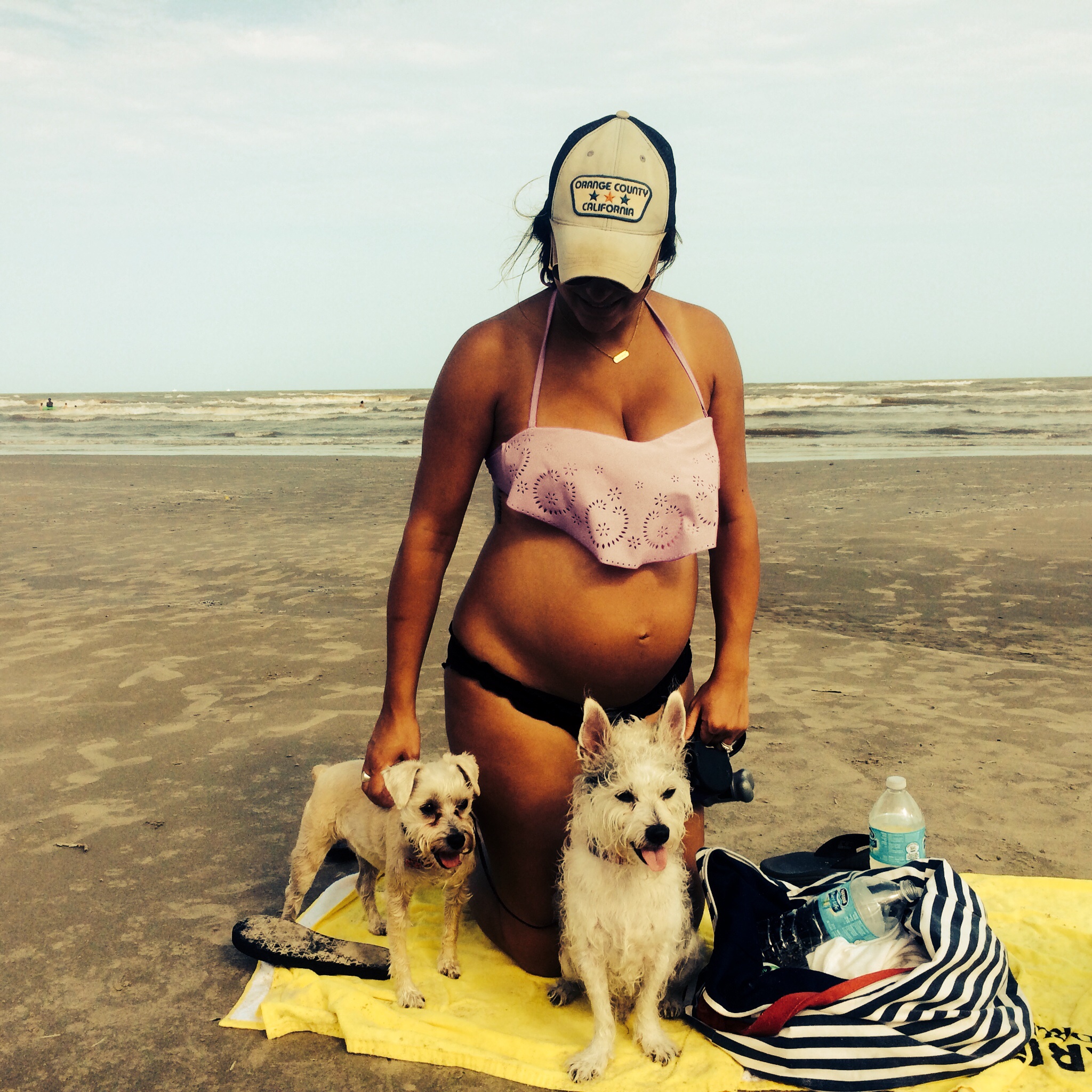Happy bump day guys! Here's a picture taken Saturday on our impromptu baby moon to Port Aransas. Had heard the island is very dog friendly so 2/3 pups joined -which was fun! Ate my weight in shrimp cocktail daily.