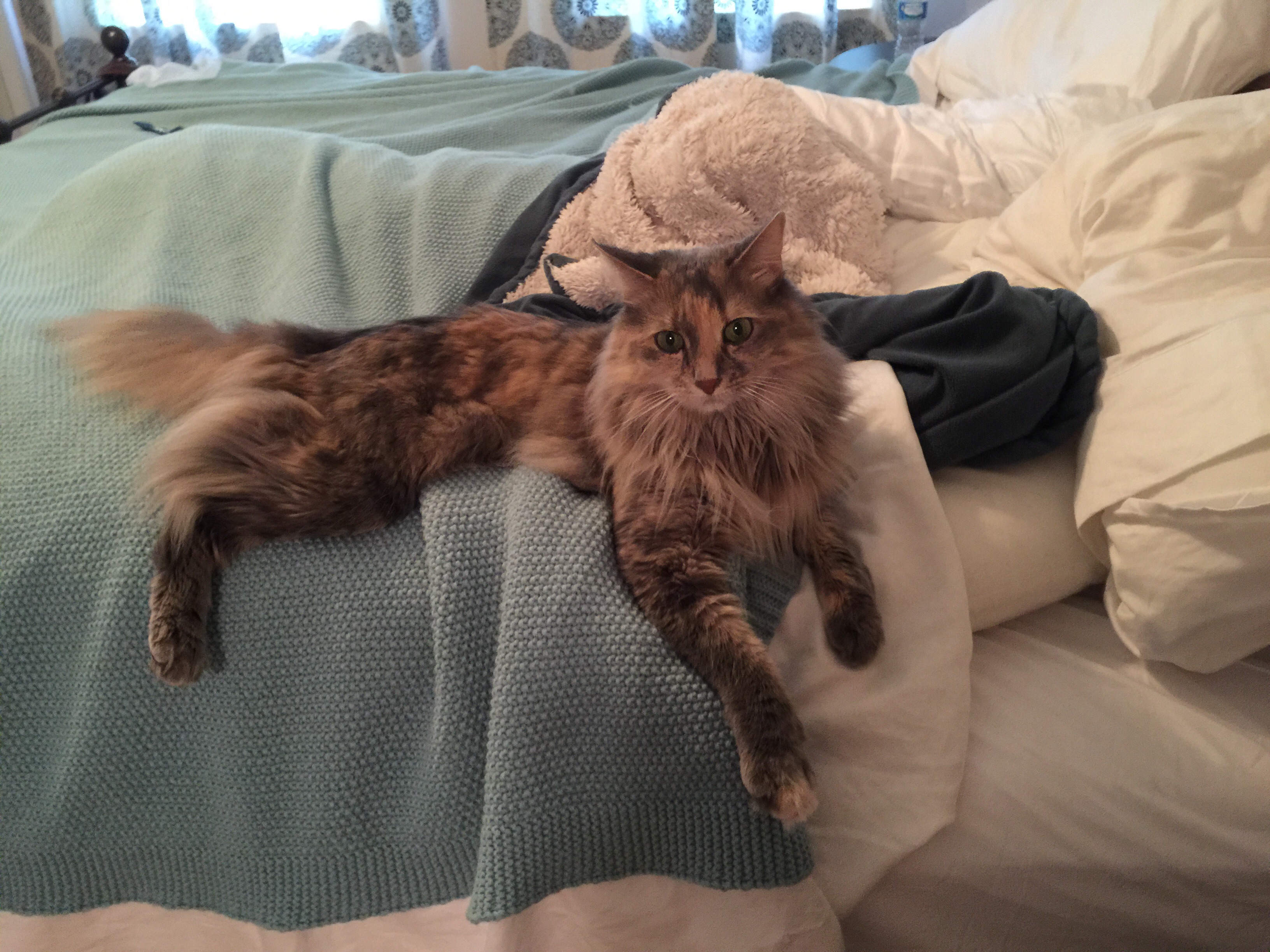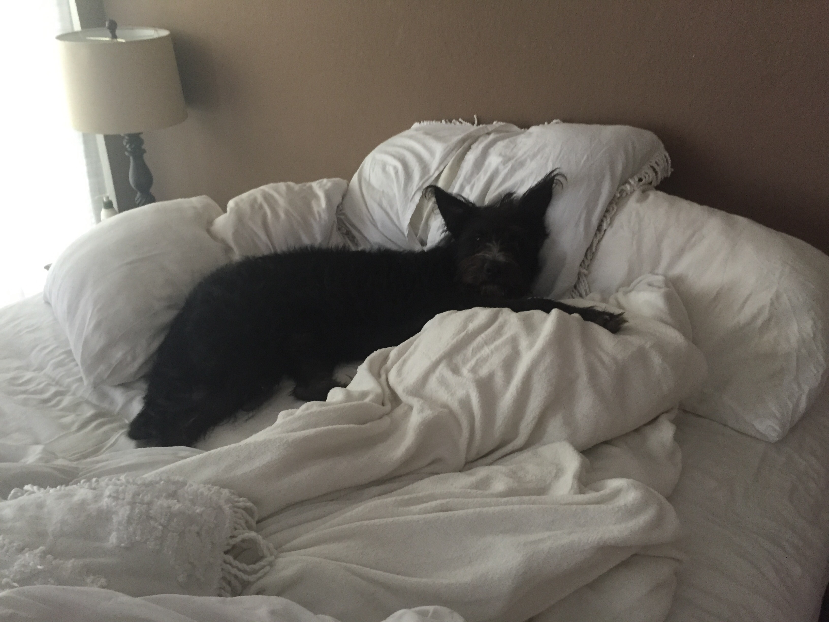 I have a Gus too! Here's my booger butt all laid up in my bed... I caught him after I got out of the shower. He's not allowed up there, and yet he looks so natural lol. Probably does it all the time behind my back