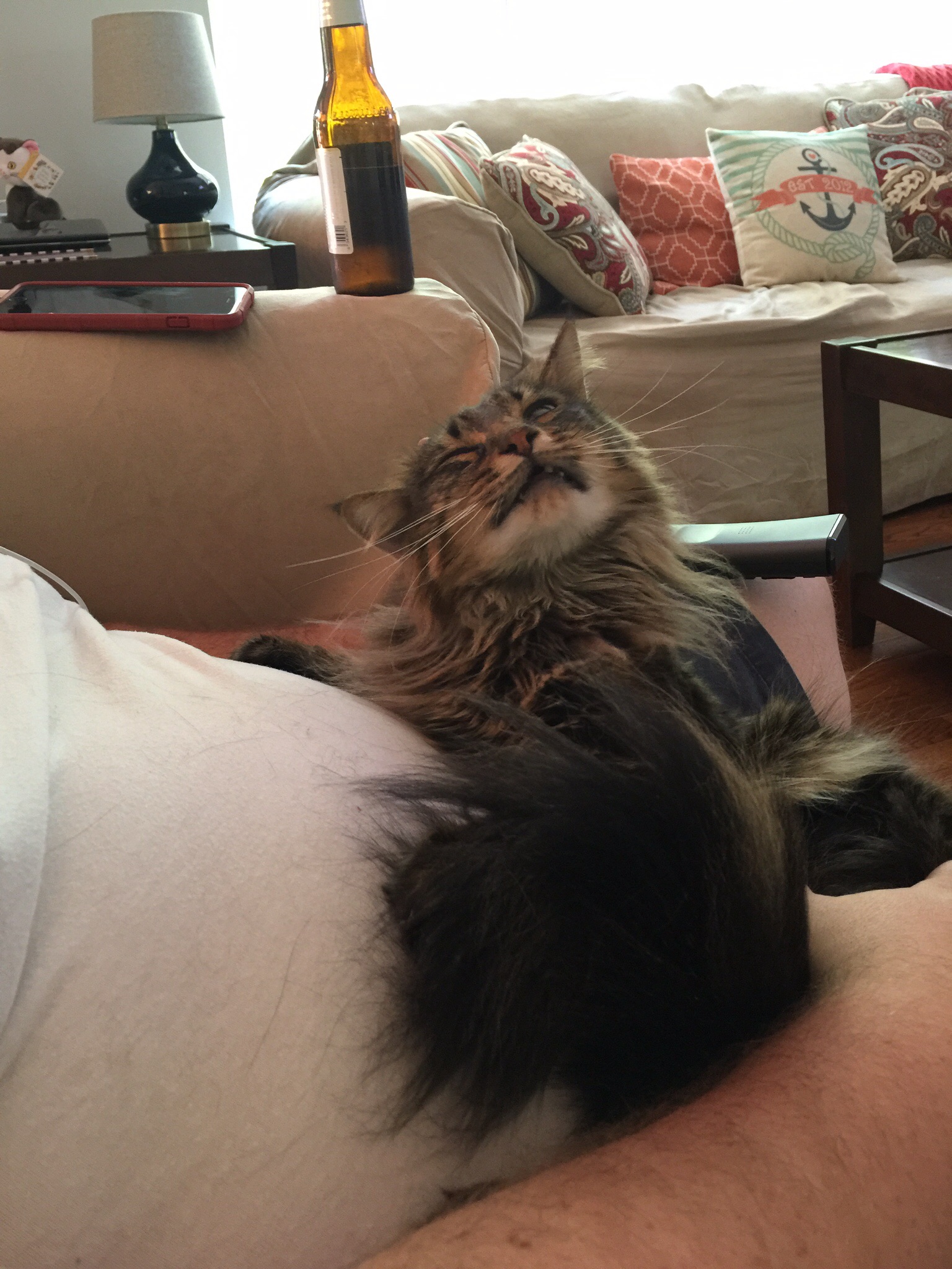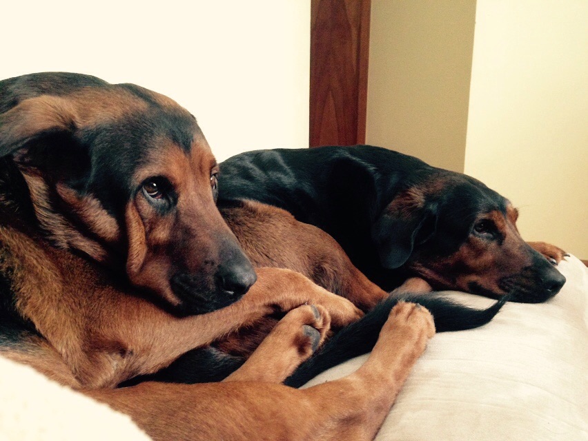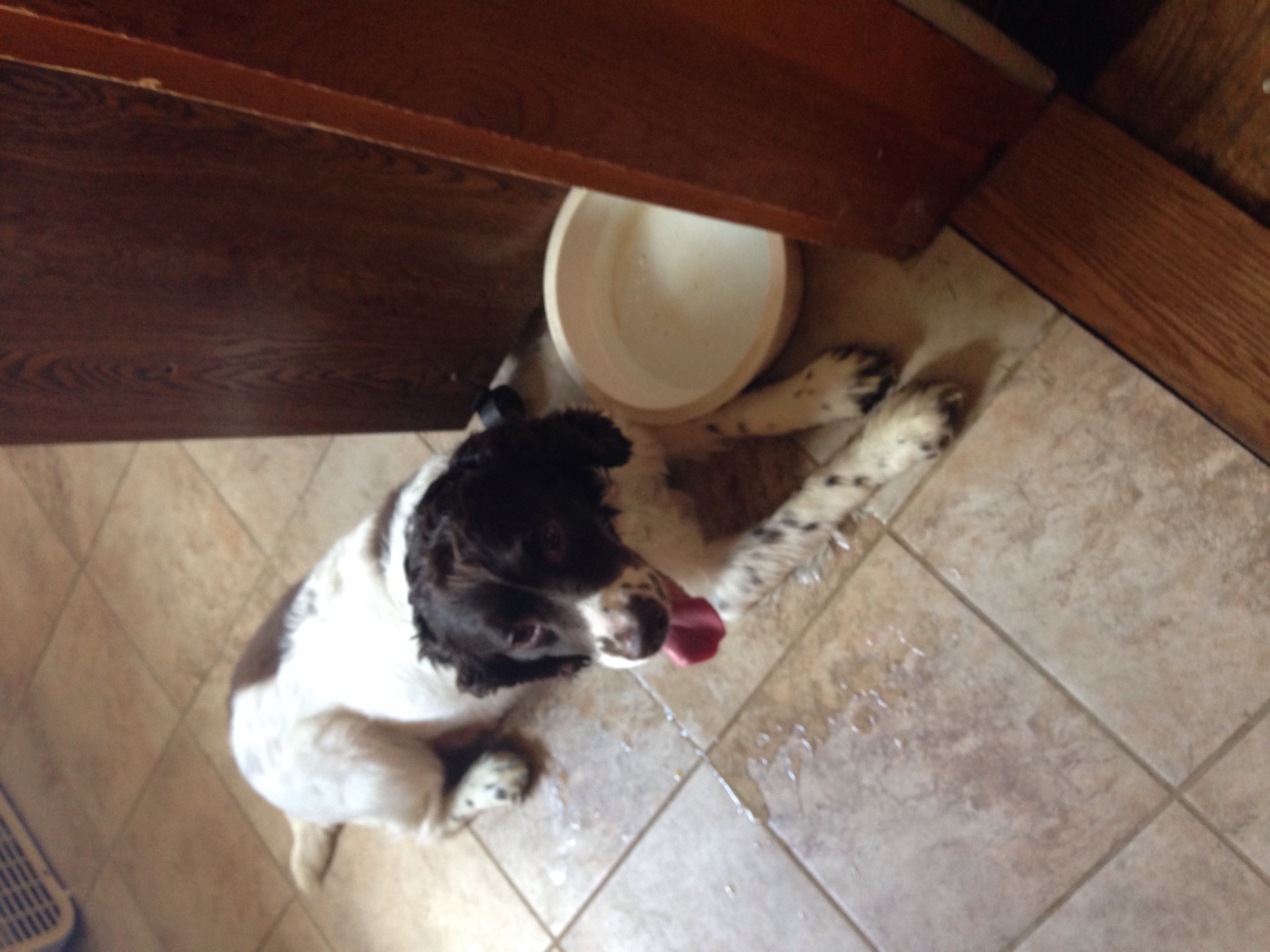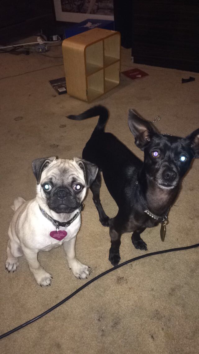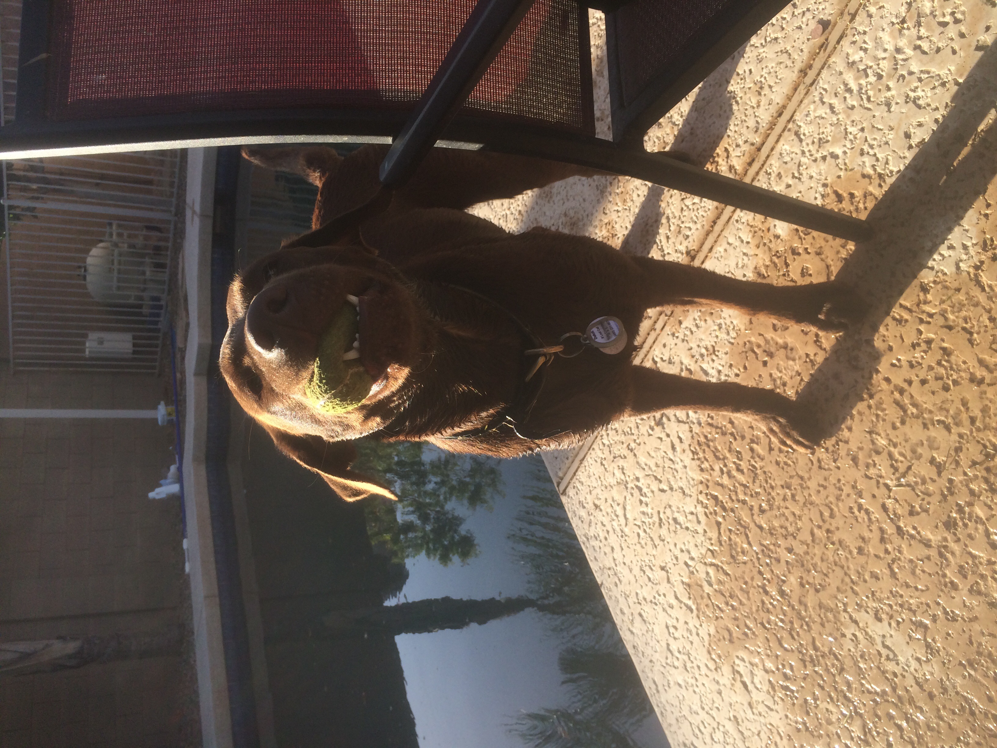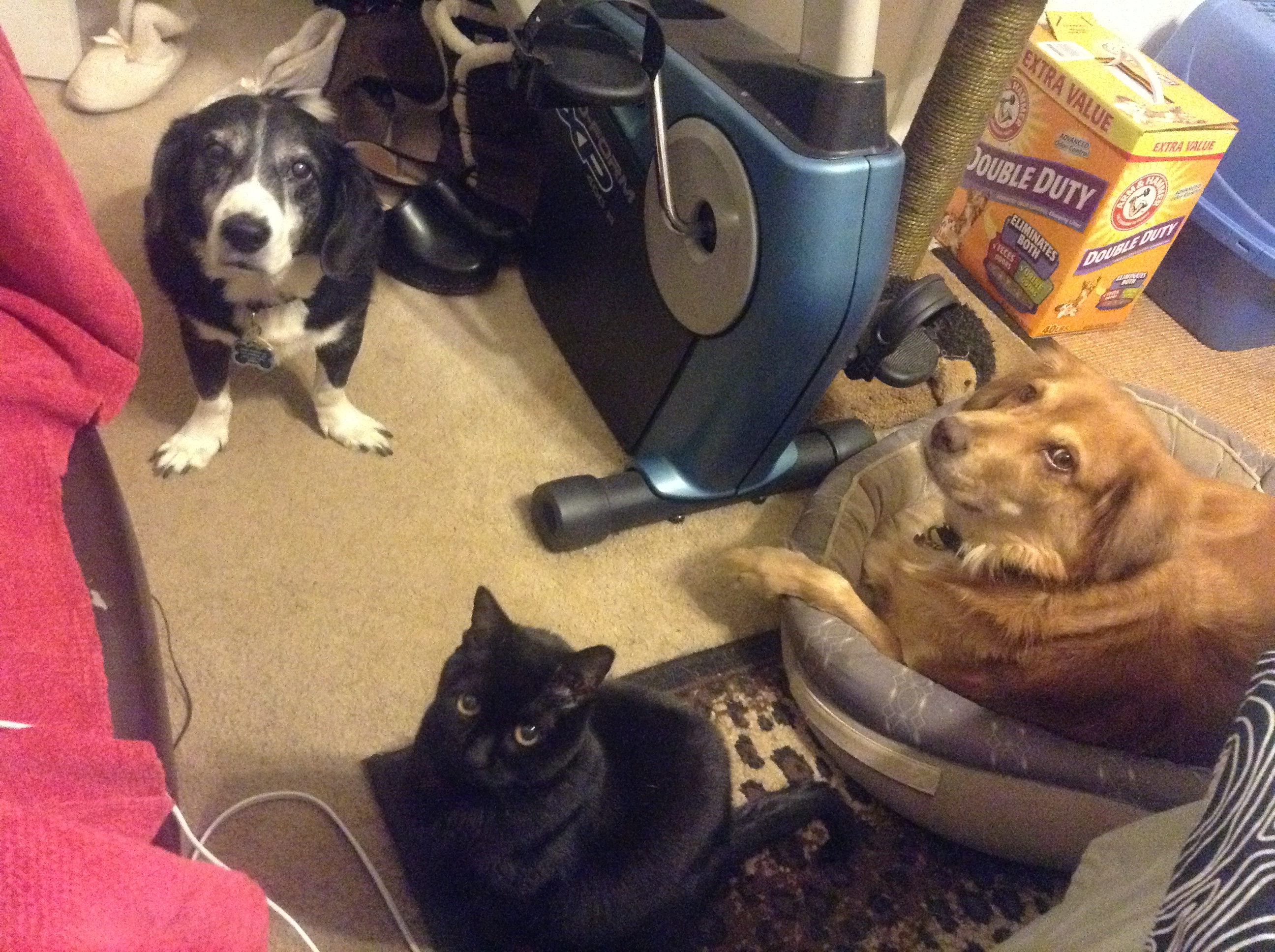 I missed the Friday part of this but here are my two. Dutch is the chocolate lab and hobbes is the cat. Still not sure what prompted that pose on his water dish...