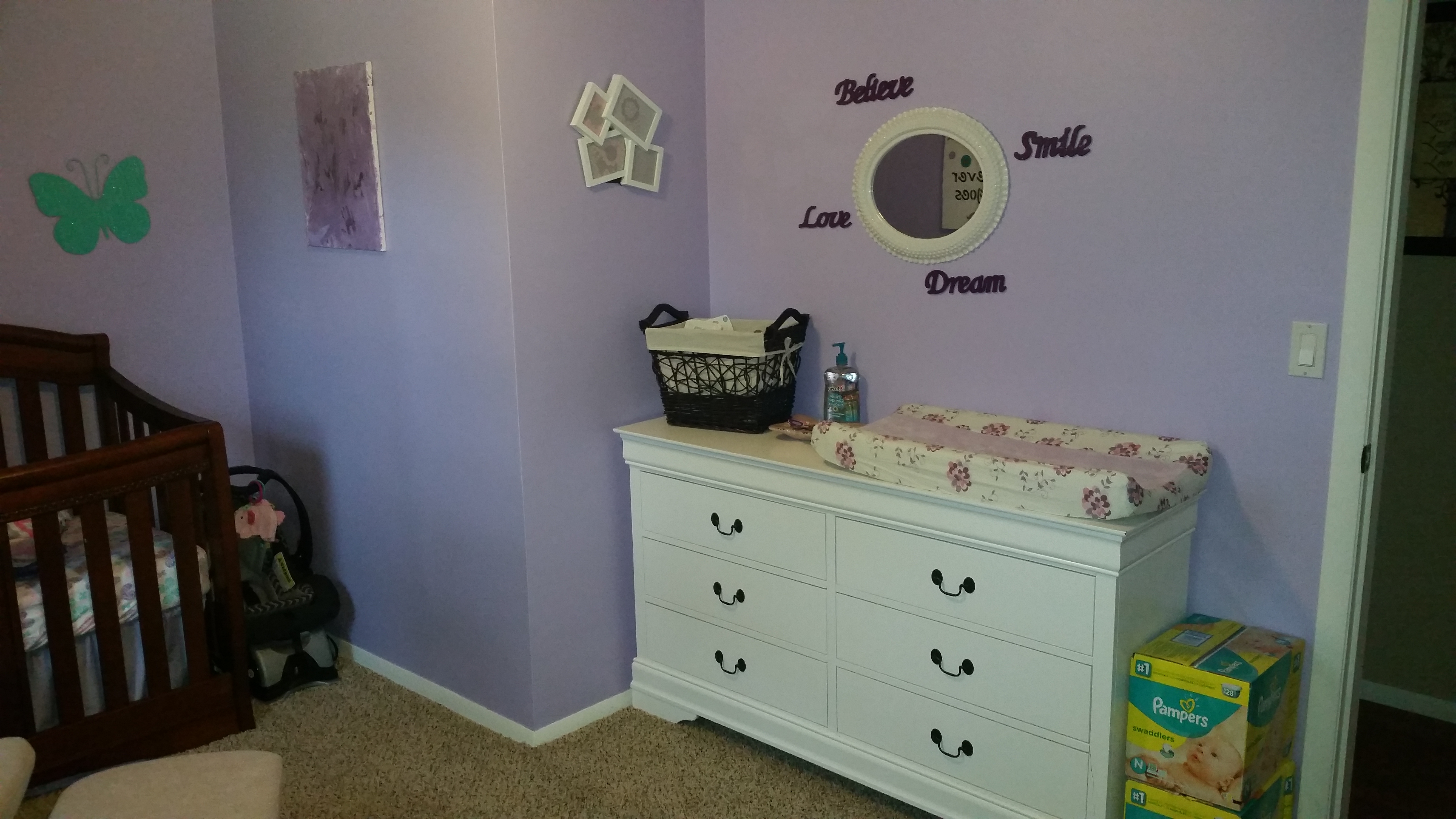 The purple canvas was painted by big sister (2yrs old). She loves her little sister so much already, it's adorable!
