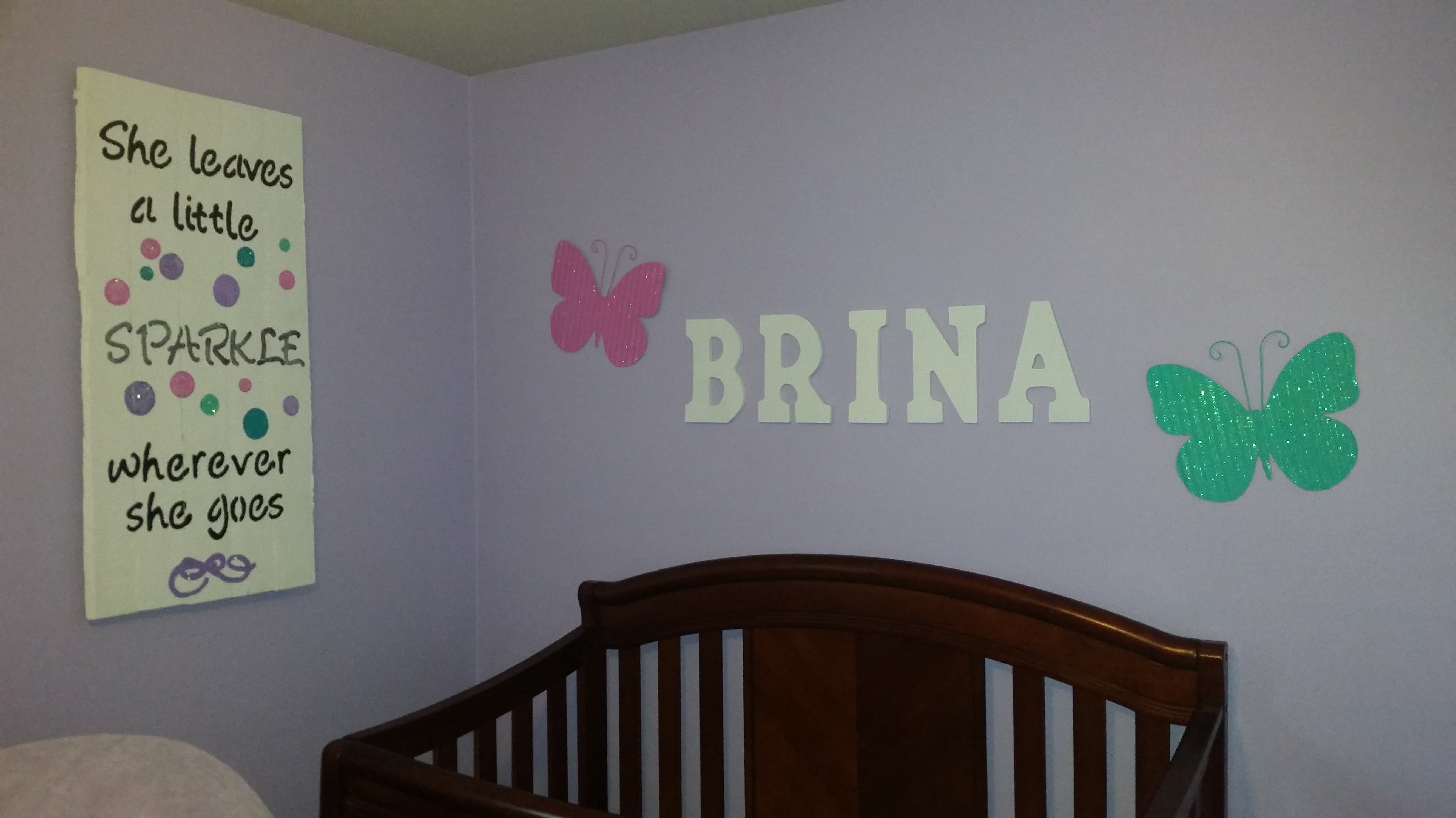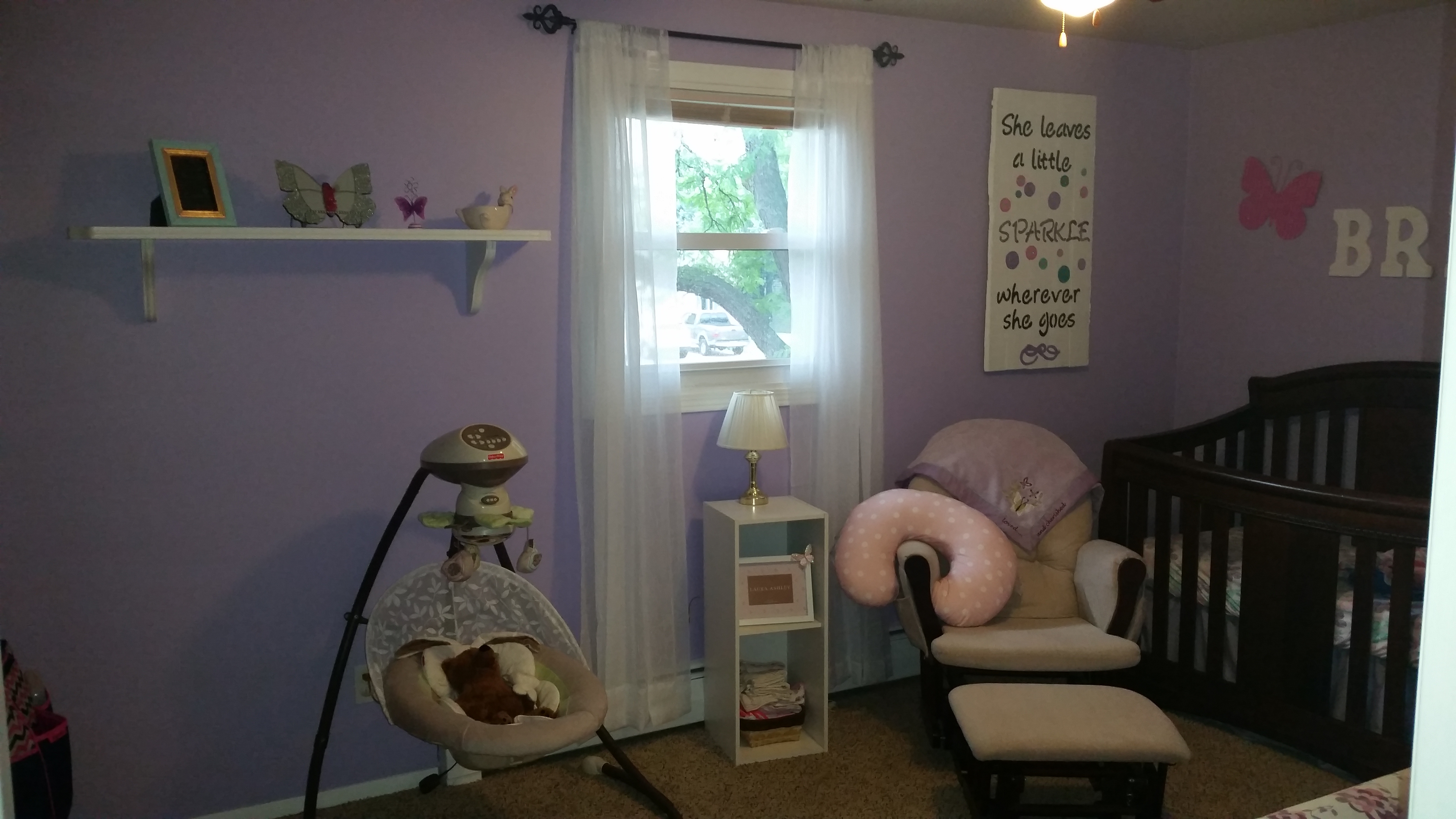 The flower tree canvas, the butterflies on the wall, and the "she leaves a little..." was made/painted with lots of love by mommy