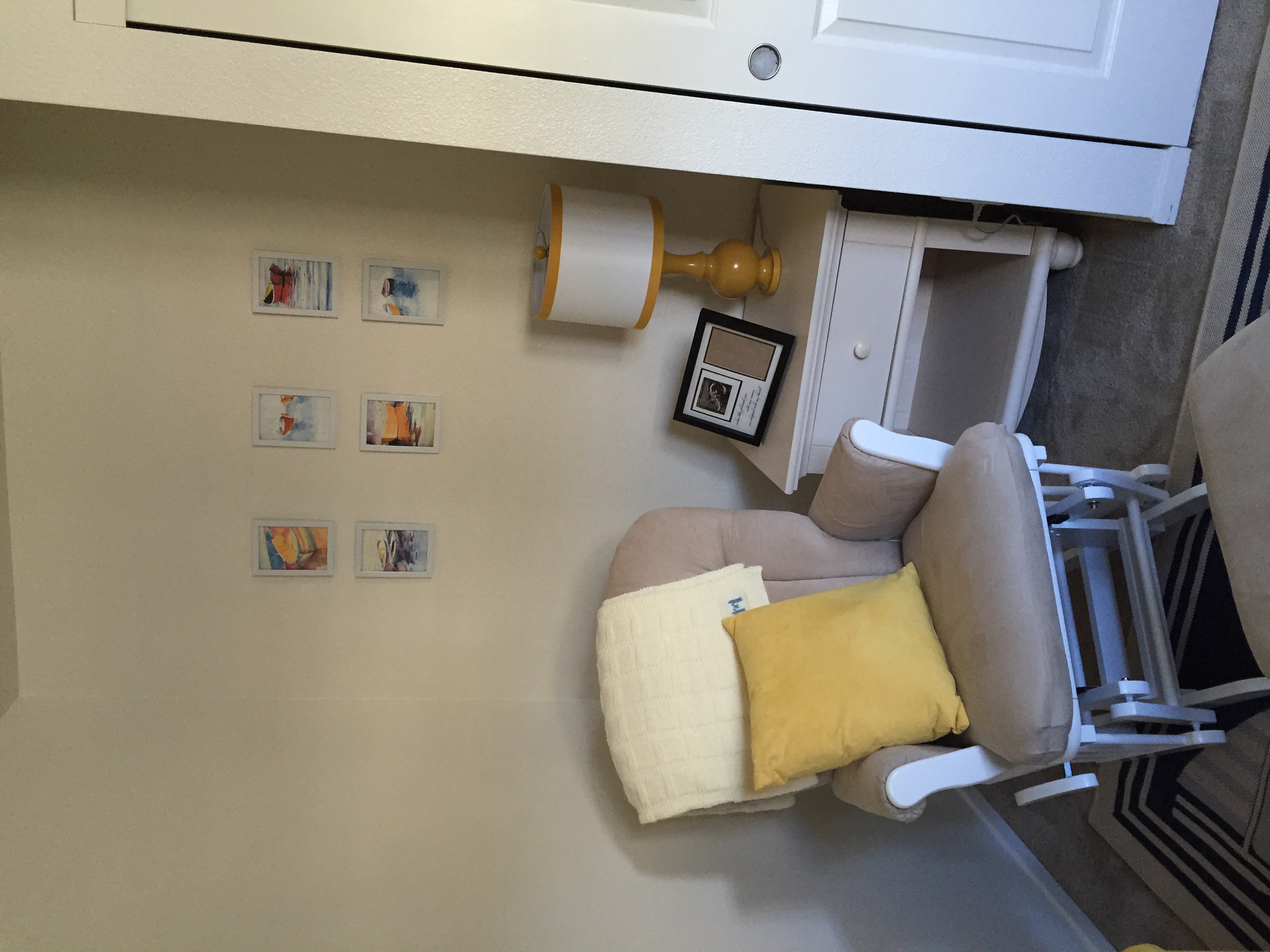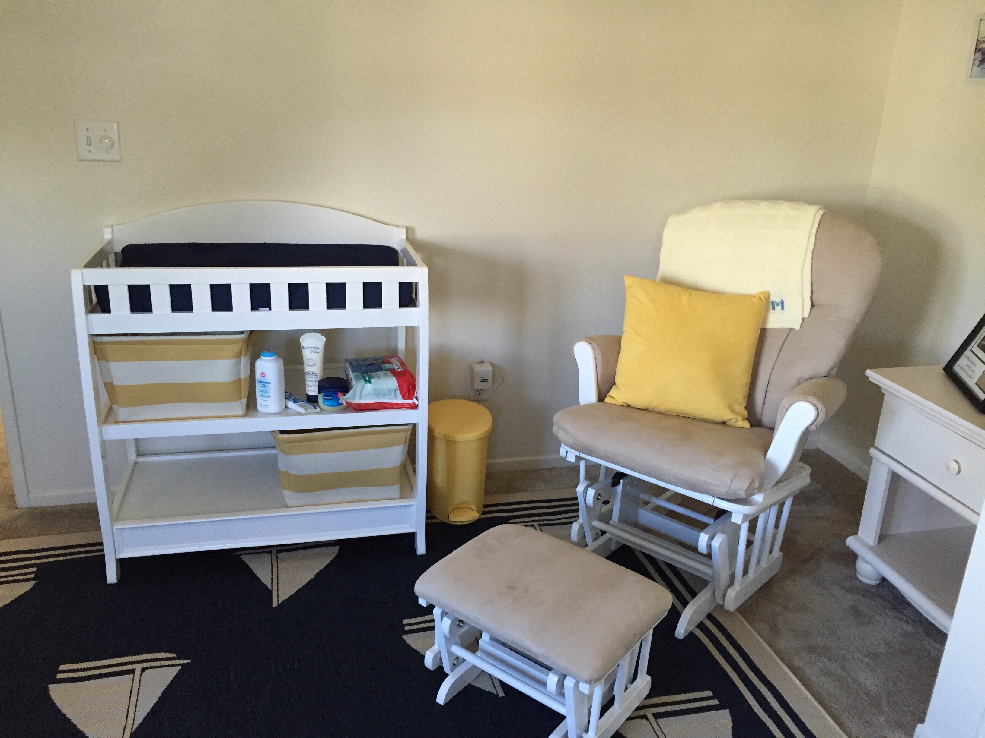 So, I actually was on vacation 6000 miles from home for the past 7 weeks and only got back on Tuesday, which put me at 35w4d (I know, crazy). So, when I got back, I went into crazy nesting mode and pretty much put the entire nursery together in three days. I'm super excited about how it looks, so I figured I'd share, since I'm loving these little sneak peeks into people's houses and styles! Also, fun story, I live in Hawaii. My sister's wedding was in Rhode Island. That crib travelled all the way from Rhode Island to Hawaii with me on the plane - talk about an ordeal to get it there, but I'm so in love with it!