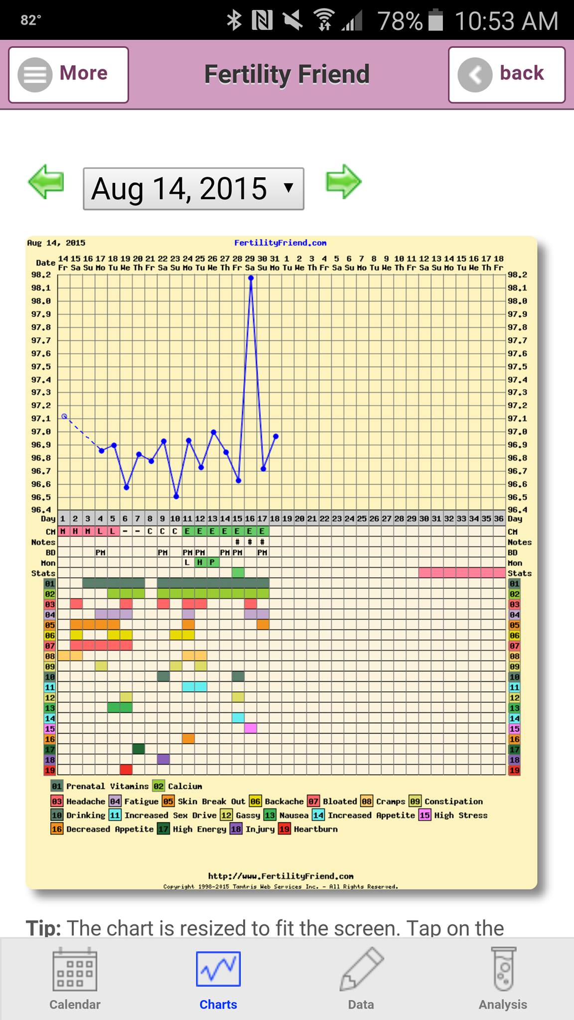 Rants/Raves/CS: Depending on tomorrow's temp, FF will likely say I ovulated Saturday. But that temp spike was probably due to drinking. Then I overslept my 4:30am alarm today and temped at 7:30. I'm mad at myself. And on top of that, we found out a friend passed away unexpectedly. So lots of stress and no sex.