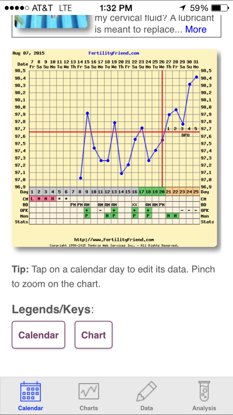 Rants/Raves/Chart Stalks: Just started temping this month.  I bought the BBT from target and it doesn't seem to be a whole lot accurate.   Got some terrible reviews online and I wish I didn't buy it! When I am out for this month, I am getting a new one.  My sleep has been very much off, waking up 1-2-3 AM multiple times; so my temps are probably a little off.  FF marked my O day as CD 17.  For some reason I feel like it was CD 16 or very early on CD 17.  I got my very first OPK positive on CD 16 around 11AM, and by the evening it was completely gone.  CD 17 my CM was almost dry-TMI LOL.  I didn't know my O day prior, as this was my first month temping, so I aimed the BD to be for CD 14 :( I will deff keep using the BBT and the OPK-as now I know how to use it.  My OPK were all negative and I figured I just wasn't catching the surge.  I've had some weird symptoms, but not thinking to much of it until its BFP :) Bloating, left sided pelvic pain, and a nose bleed yesterday, sore boobs today.  I could contribute them to many other things too.