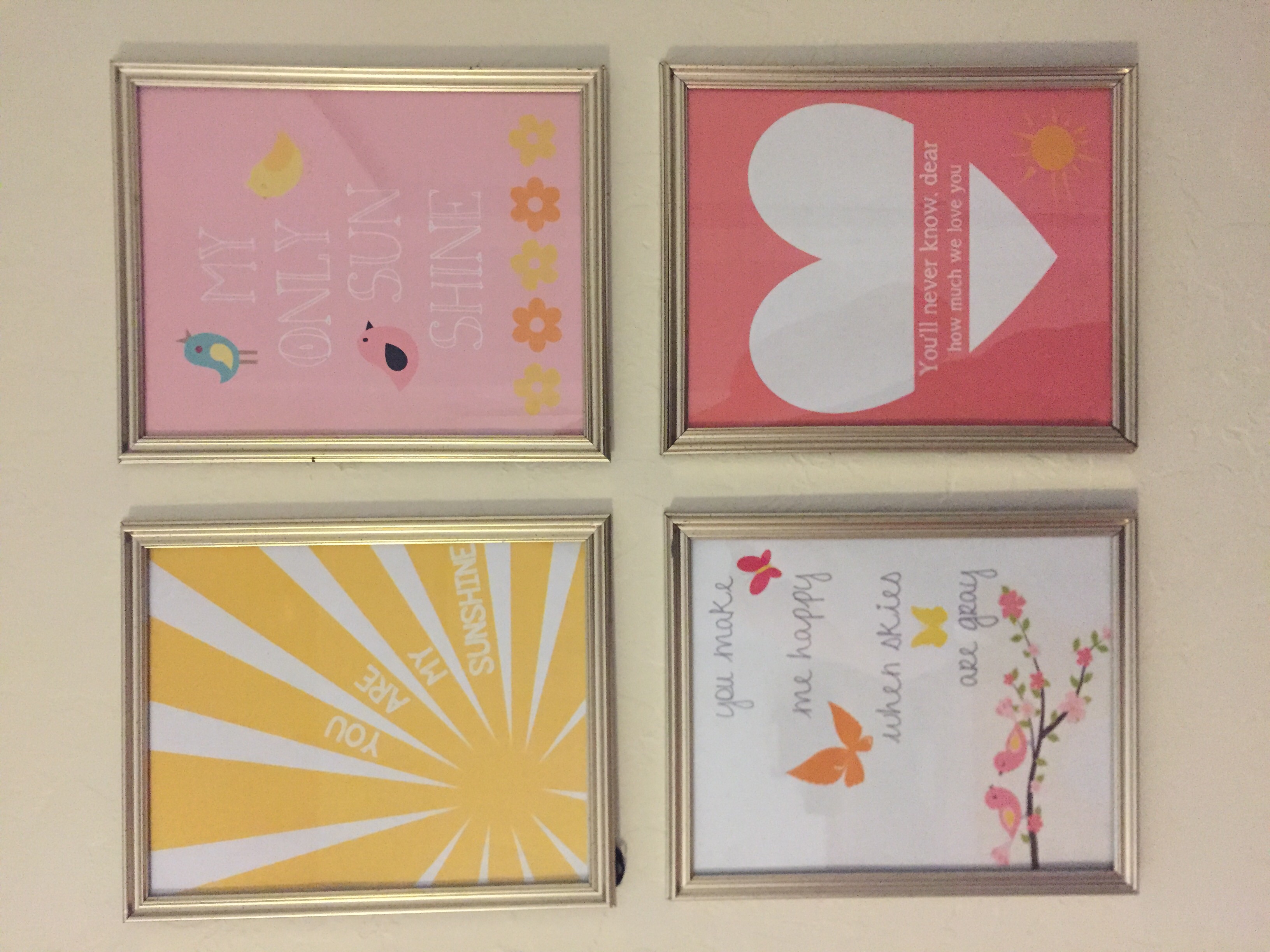 Also spray painted her name, will paint the wall pink (this pic is just an app from Home Depot) and frame her name in a gold frame. And then add gold dots... That's not all done yet