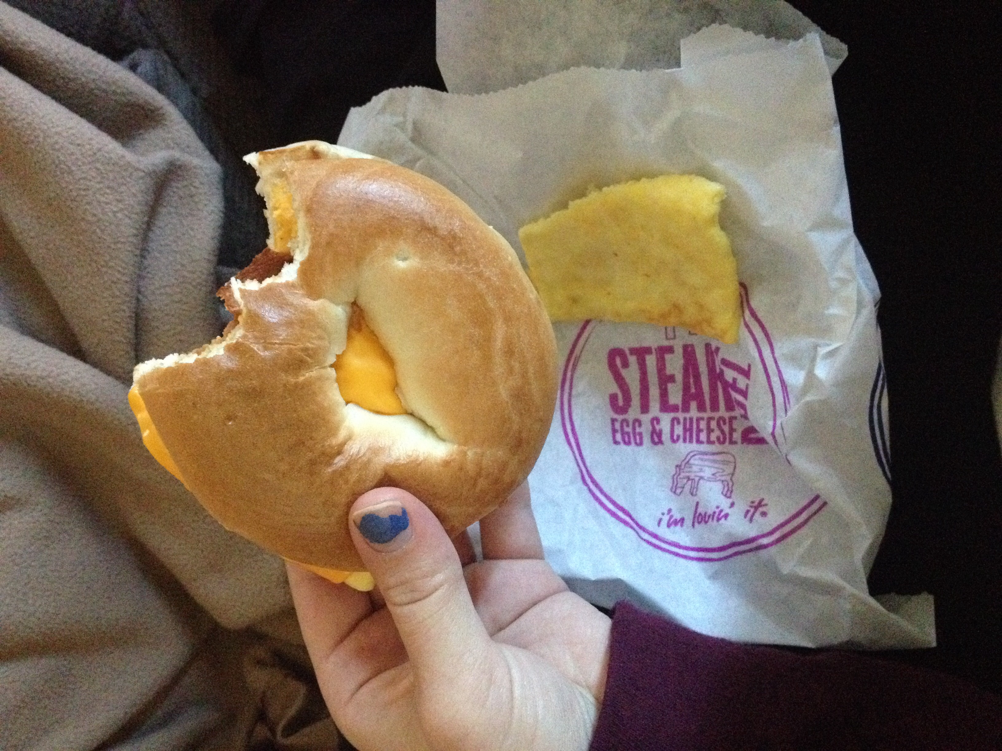 This ladies is a McDonald's bacon, egg, and cheese biscuit. Sooooooo yummmy....