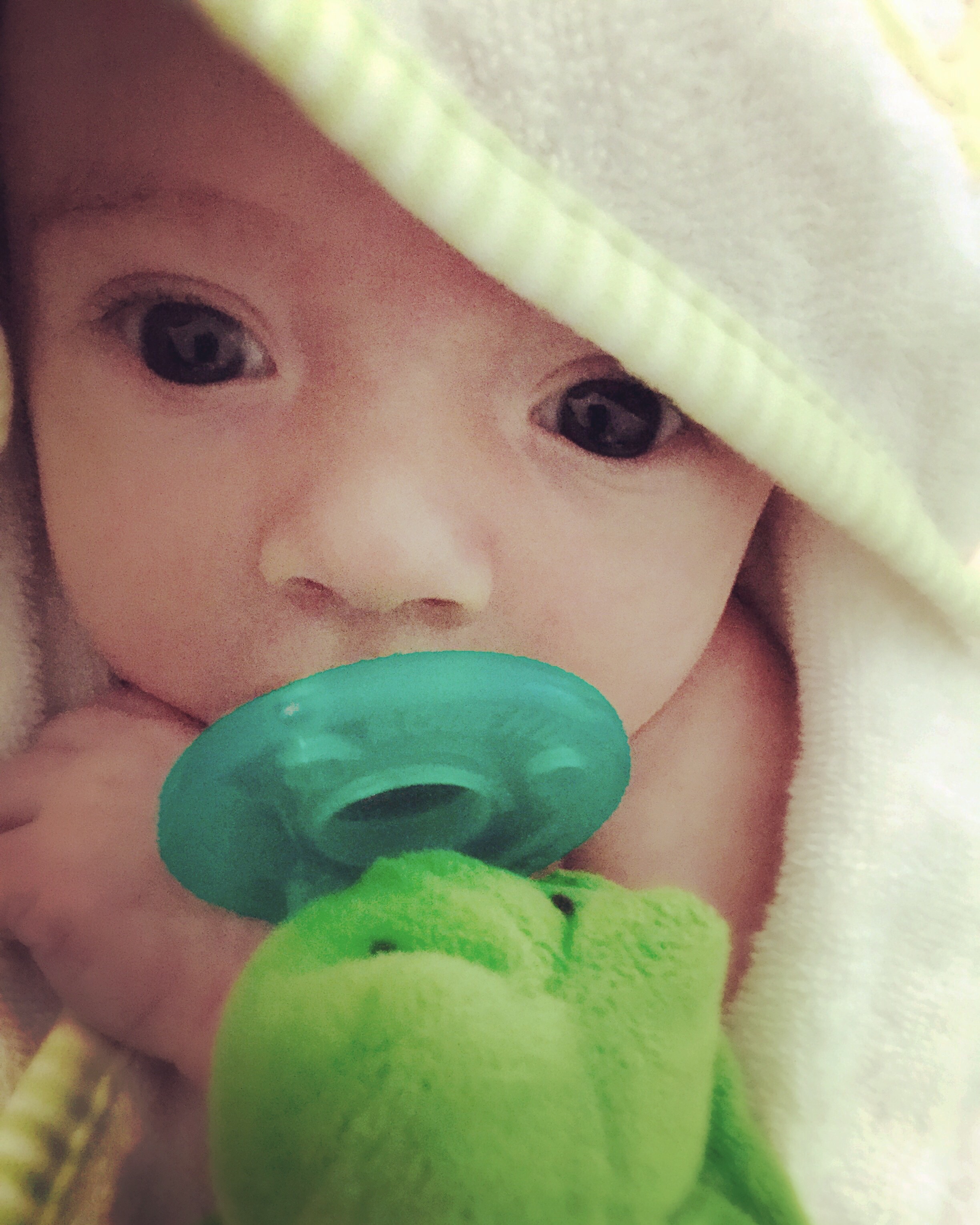 "I have a sixth sense for when my mom is trying to steal my milk (pump) for her stash. I will wake up from a dead sleep and demand to be held-which is difficult with those cones on her chest-so she usually just stops stealing my milk and hold me. " -Owen 10 weeks