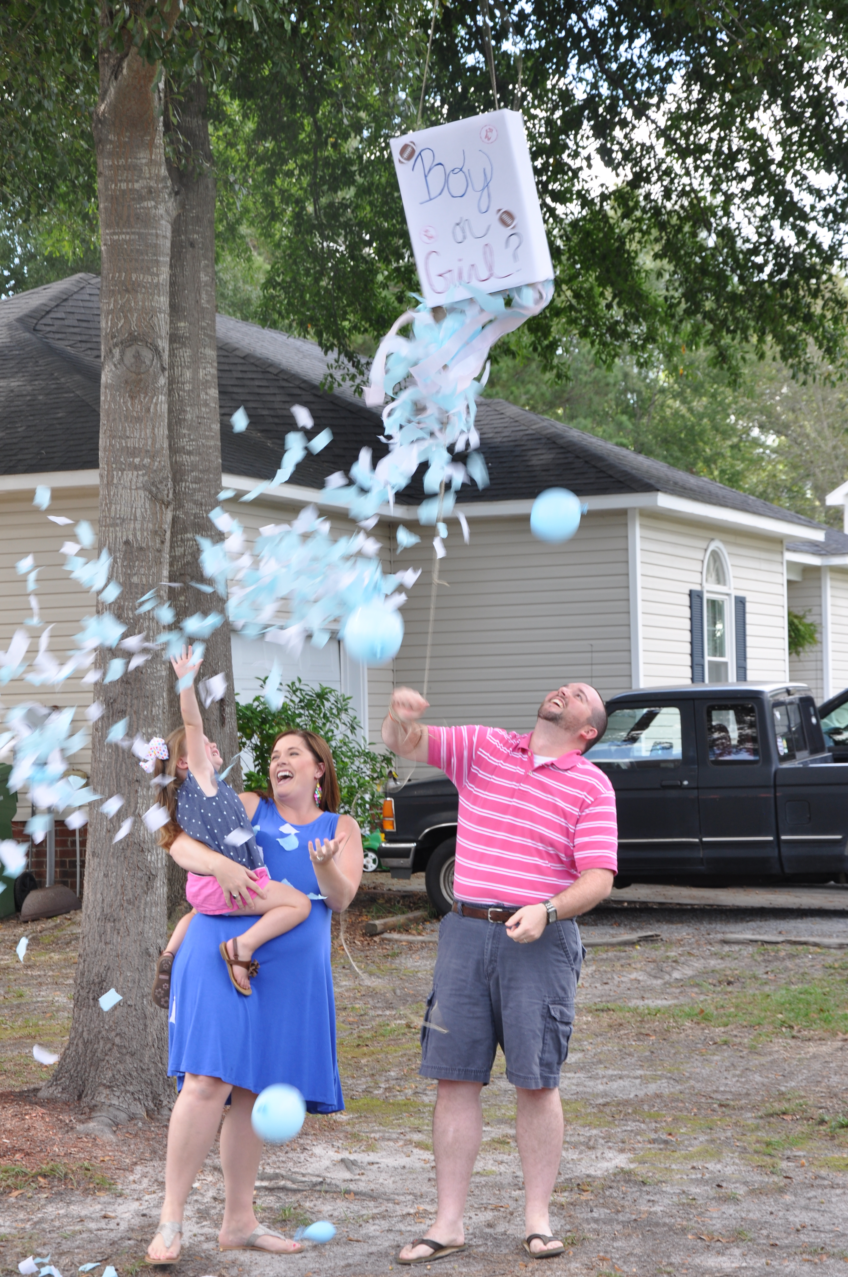 It's a boy!!!!!! We chose outfits and our sisters found out first and placed the shirt in the box for us to open! We did this in front of immediate family. So excited!!