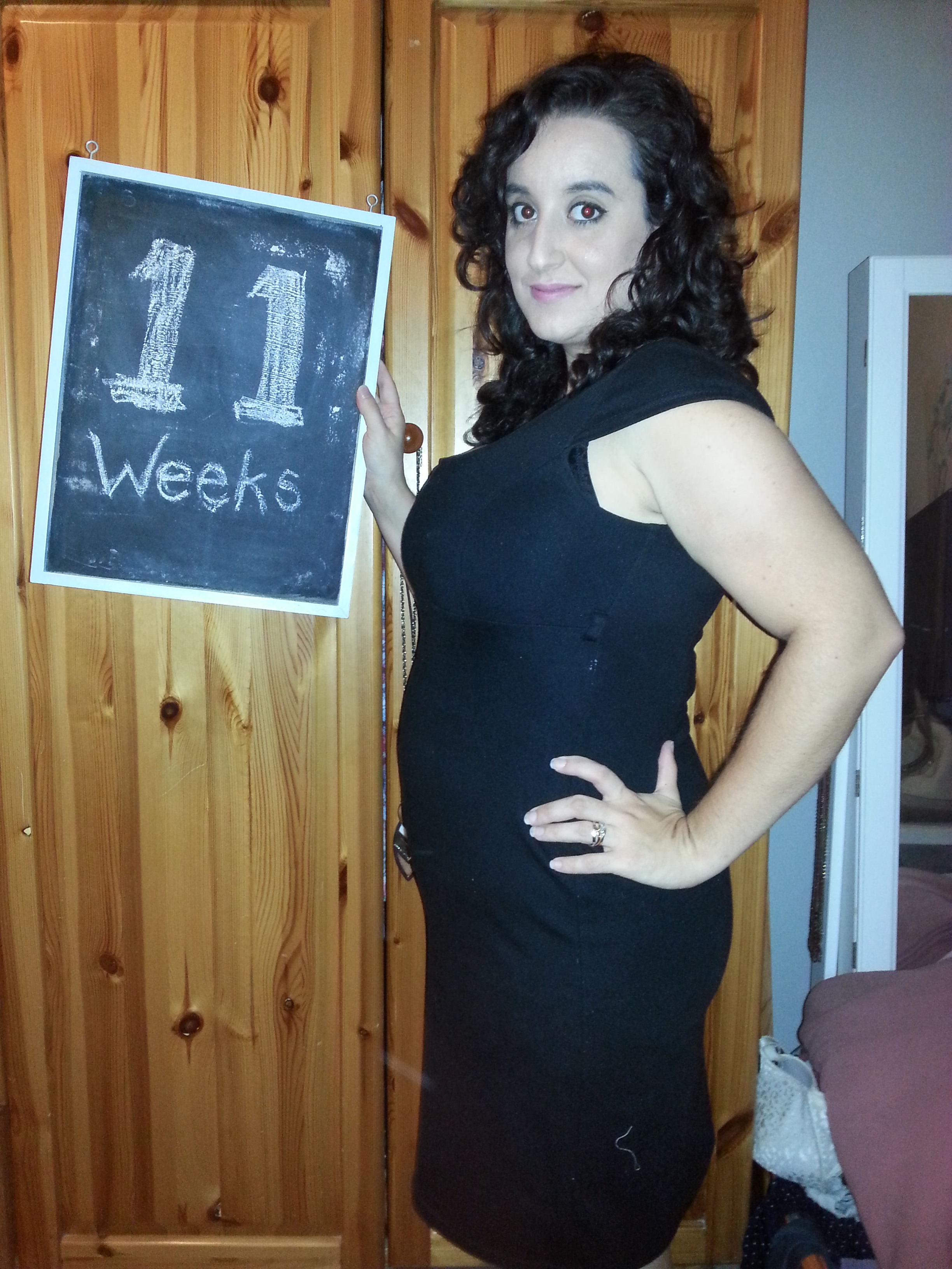 It looks way to big to be all bump at 11 weeks, but it suddenly showed up out of nowhere last weekend, despite losing weight! So I'm guessing it's mostly bloat, and some fat in there too. hehe.