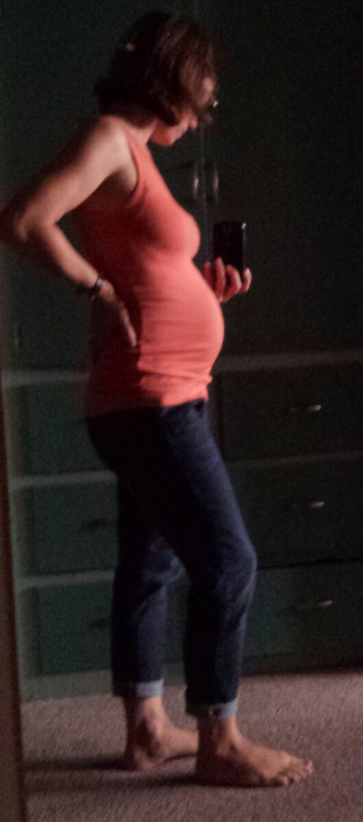 • No pics for me yet, but I did have my first experience of someone giving me their seat on the subway last night!  I'm performing in a show next week and I need to not look obviously pregnant, so I'm actually hoping to pass for "full tummy from a big lunch" for 7 more days - then I can't wait for this baby to pop! :)