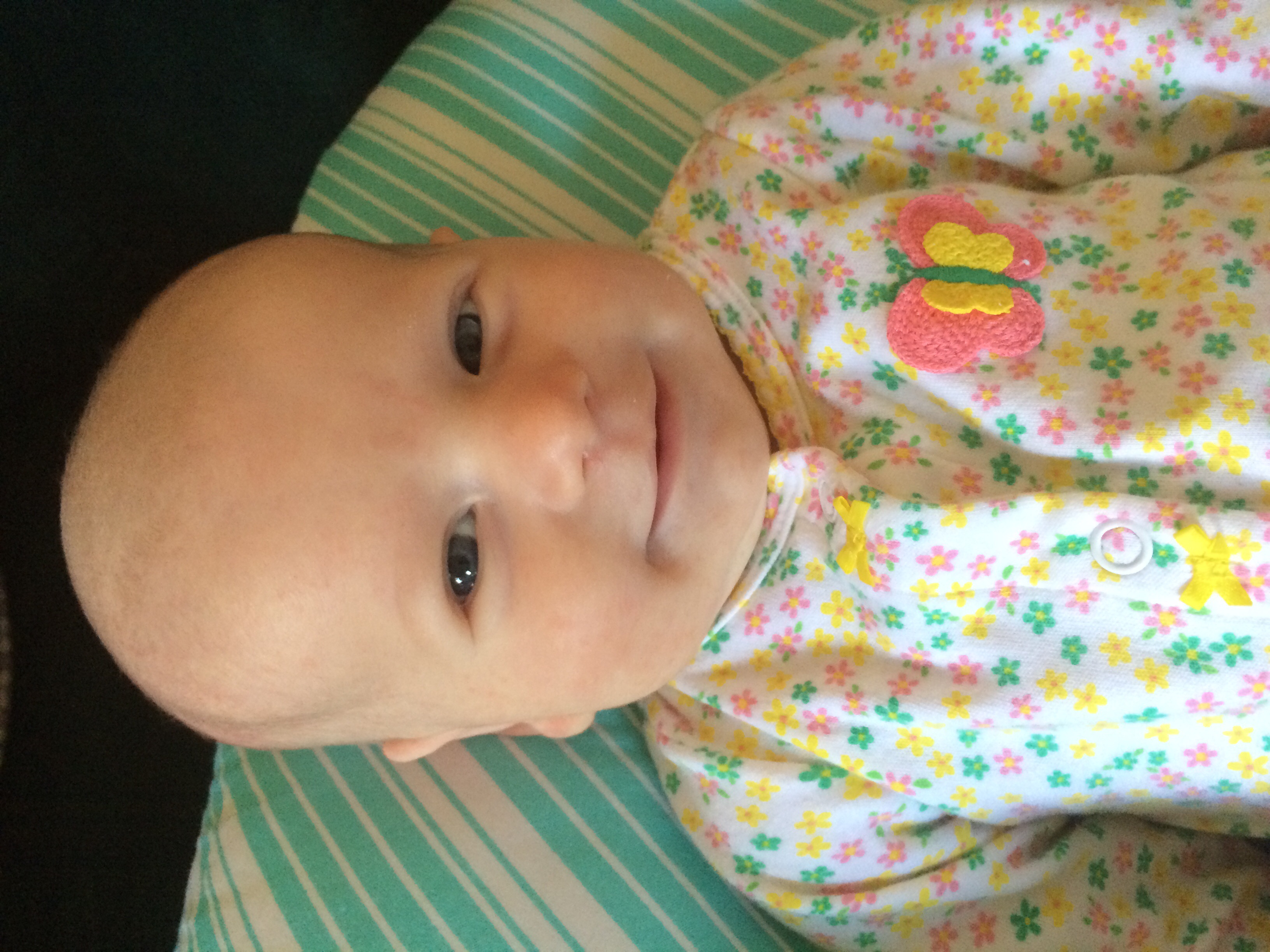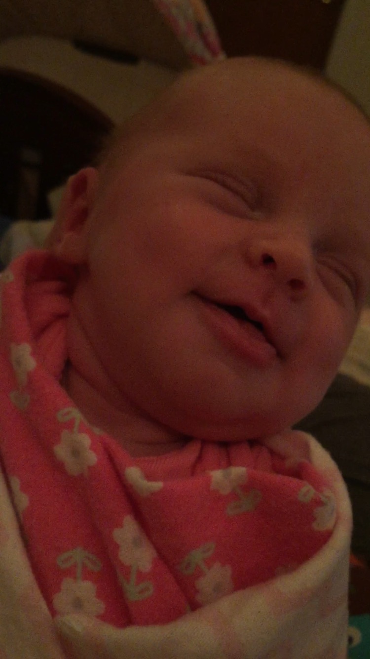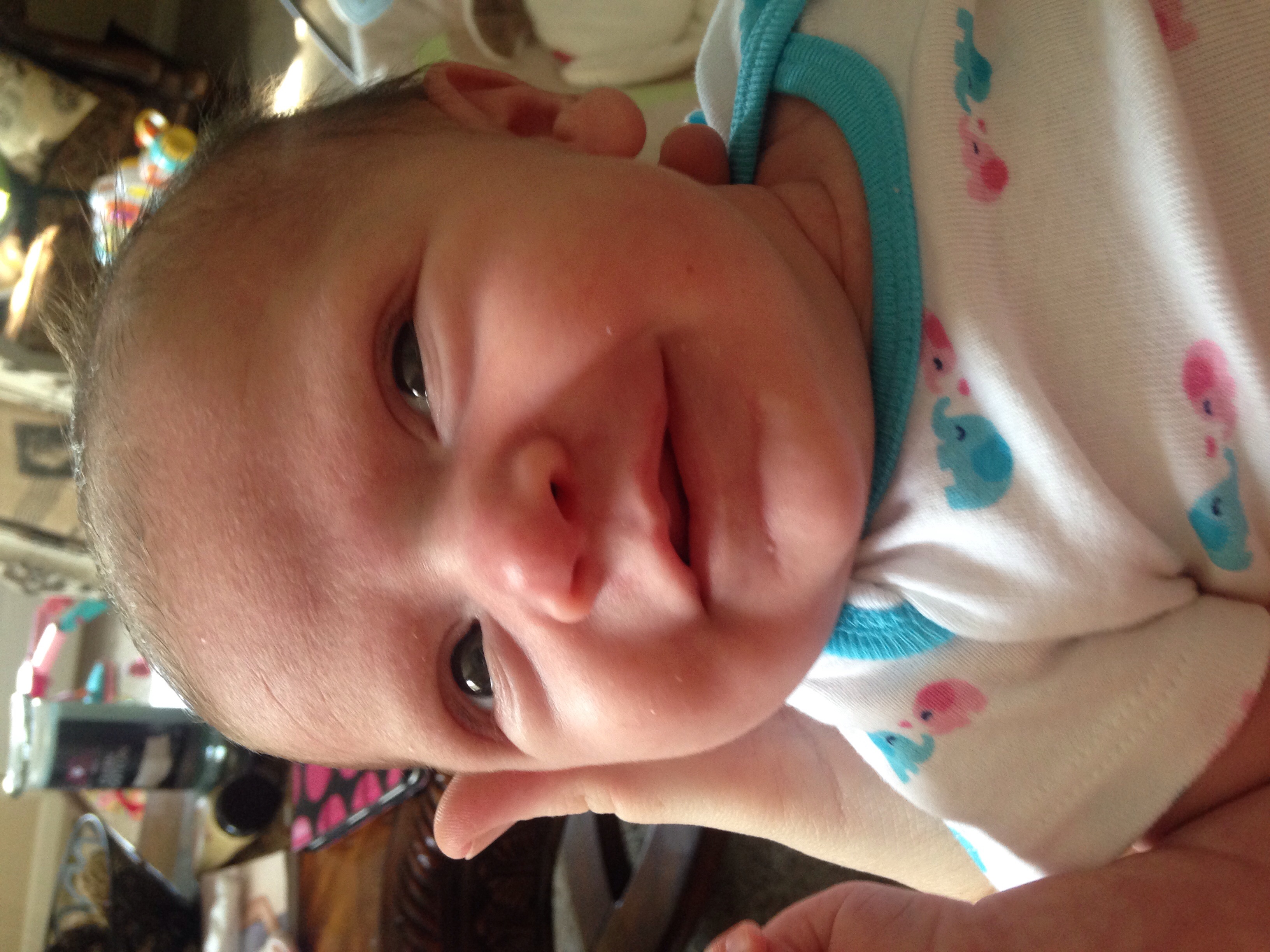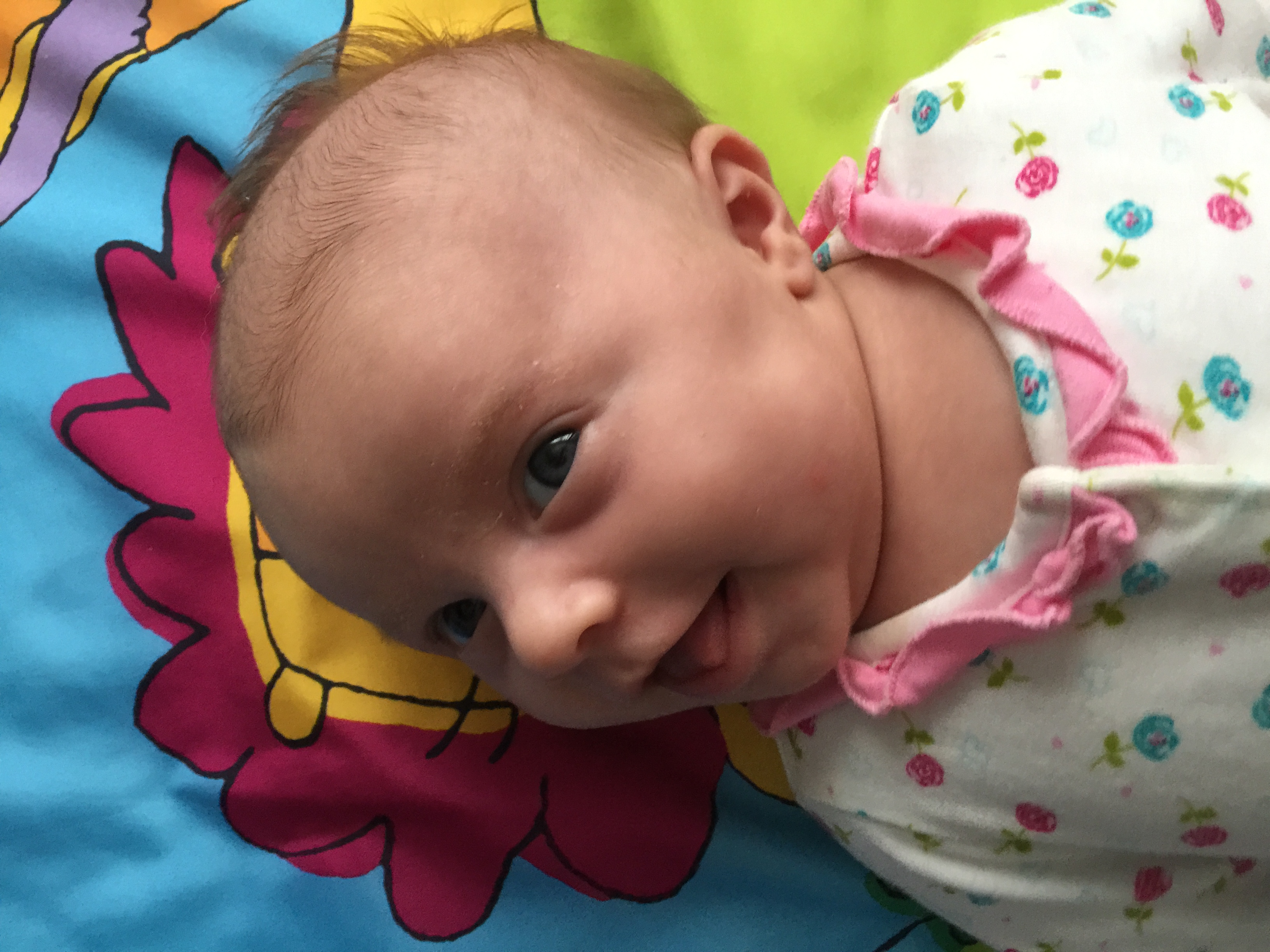 Arya Jade 5 weeks...this was the best smile ever, she was just listening to me talk to her then all of a sudden I kissed her and when I pulled back..bam!!