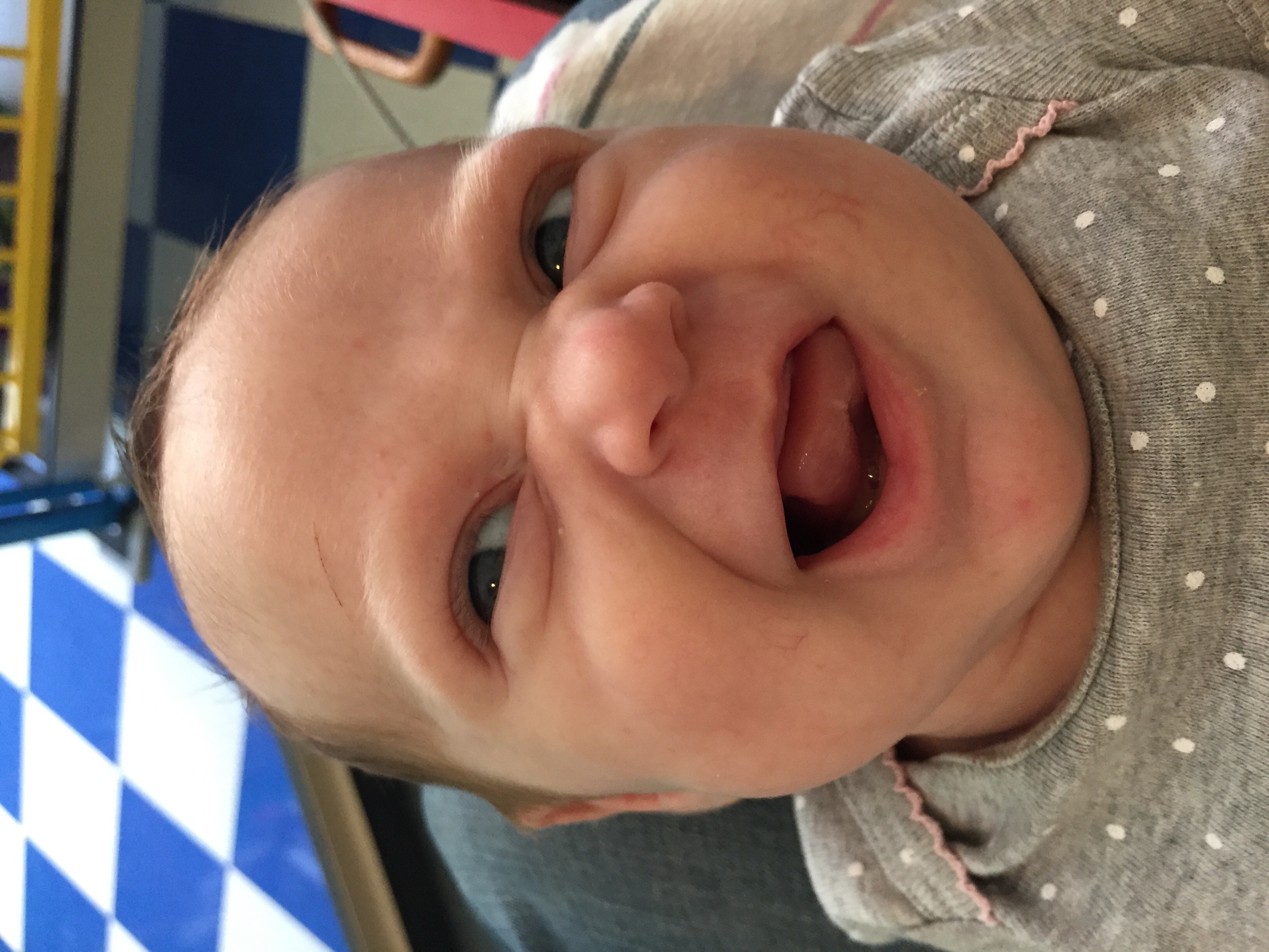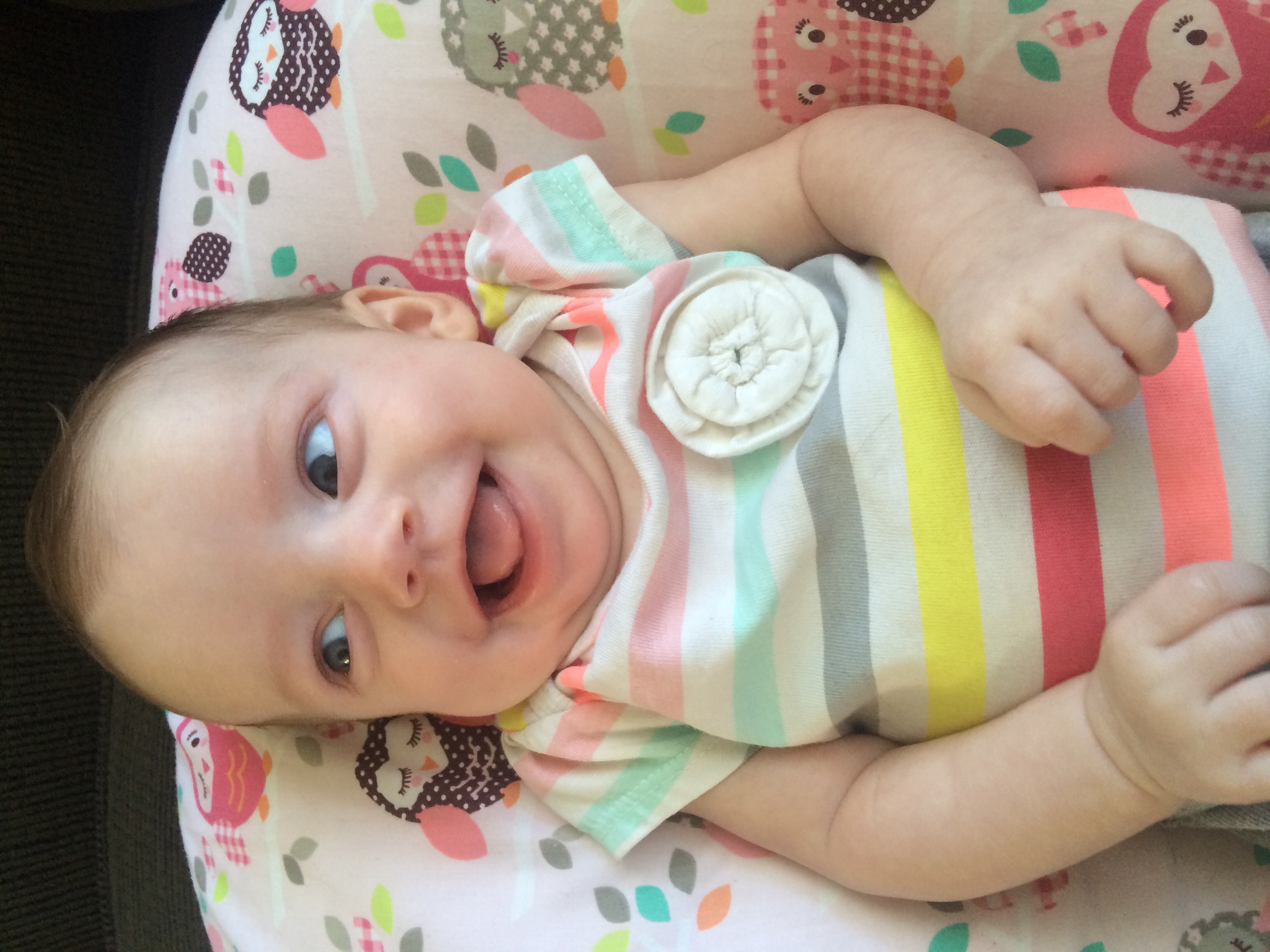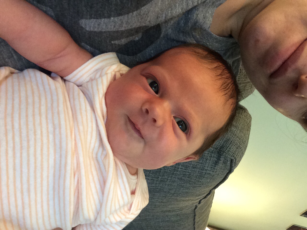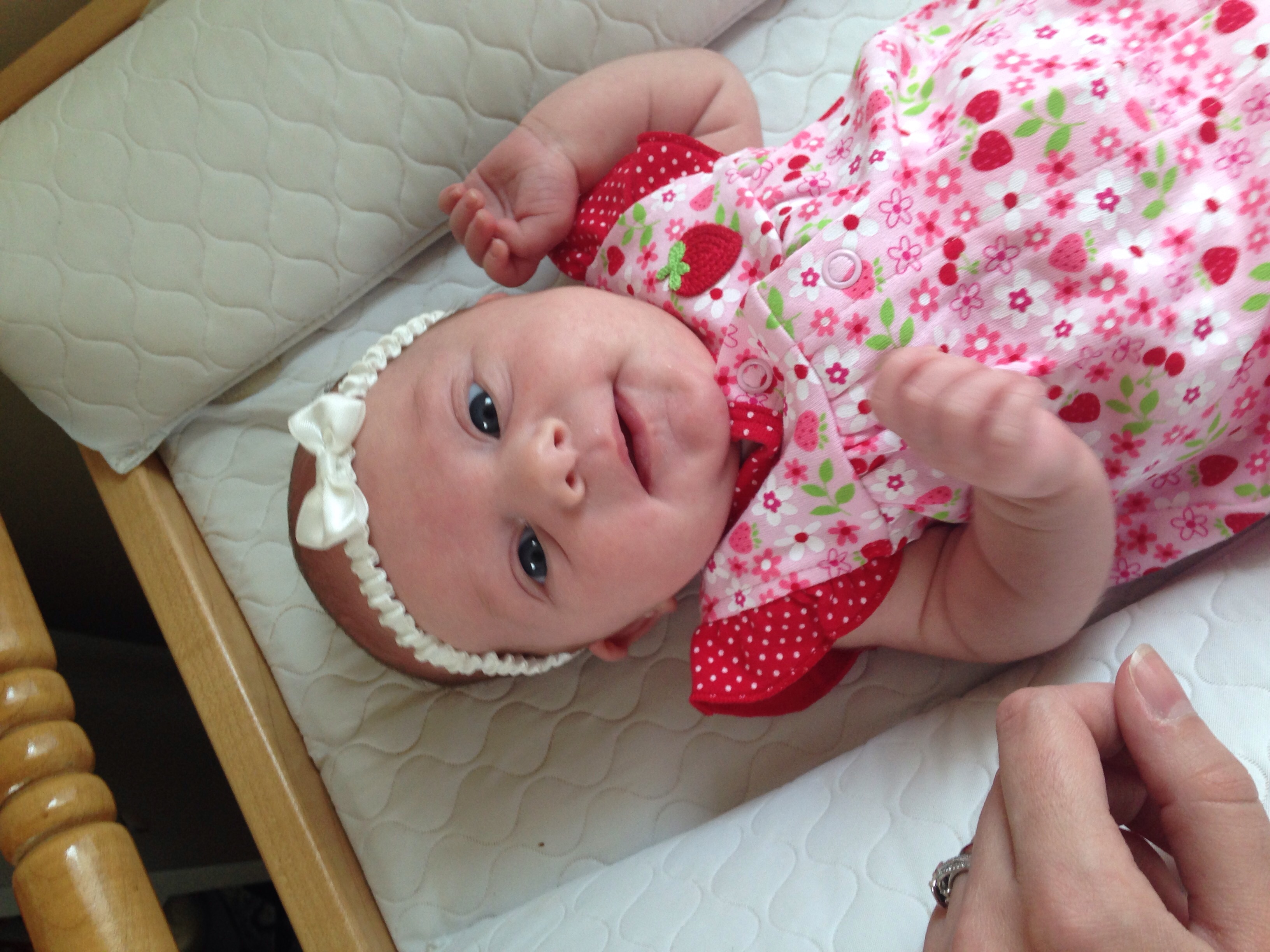 Arya Jade 5 weeks...this was the best smile ever, she was just listening to me talk to her then all of a sudden I kissed her and when I pulled back..bam!!