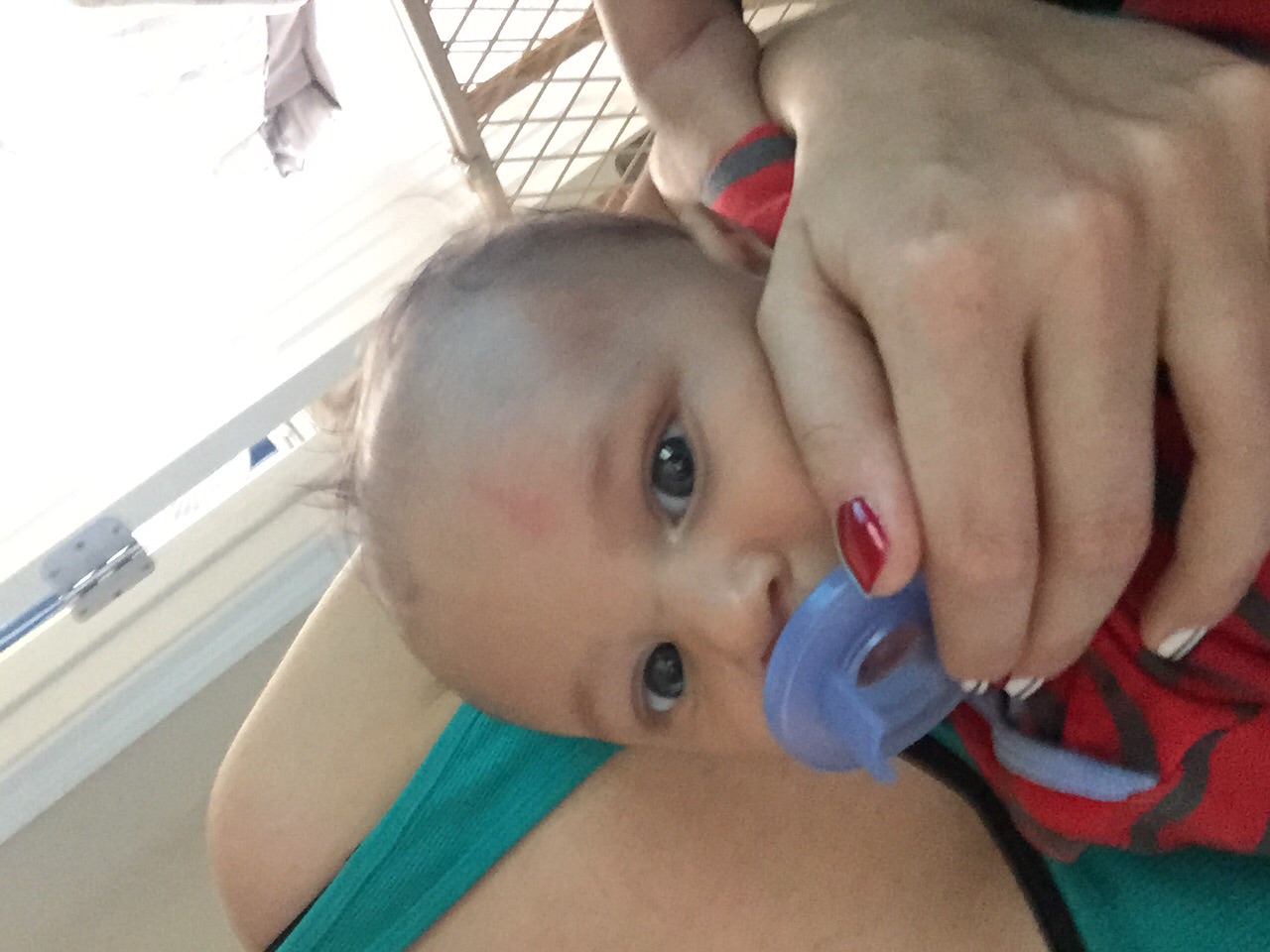 • Awee poor baby. Nope not here my nails are rather short & I don't wear rings hardly ever.maybe while your at home just take off your ring. & trim your nails a tad bit. ( not trying to sound like a jerk here ) but honestly you really don't want your baby to ascoicate you w/ pain. Sorry it must honestly break your heart alil to see him cry from it.