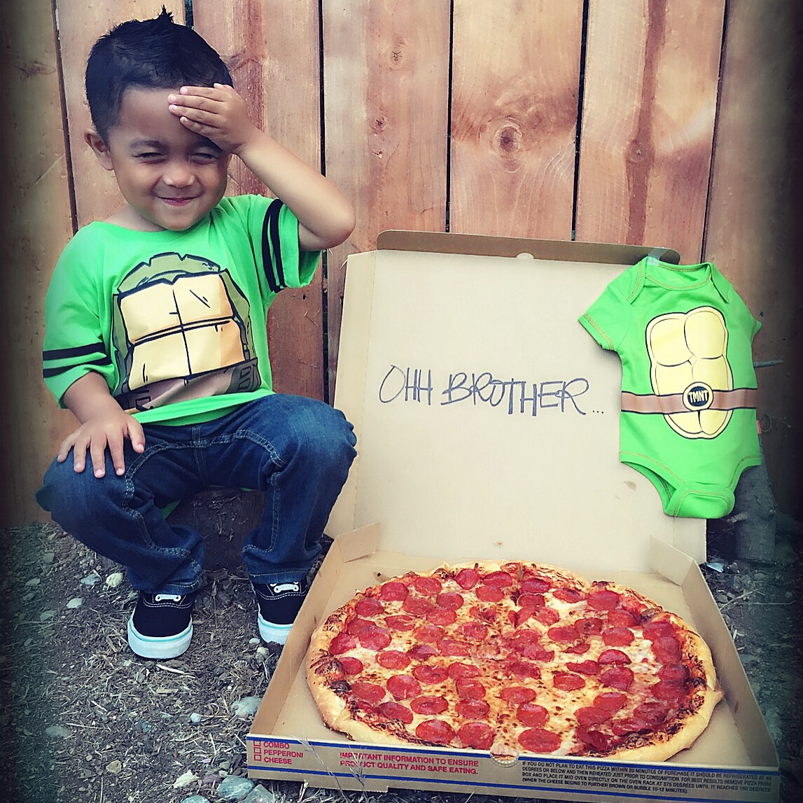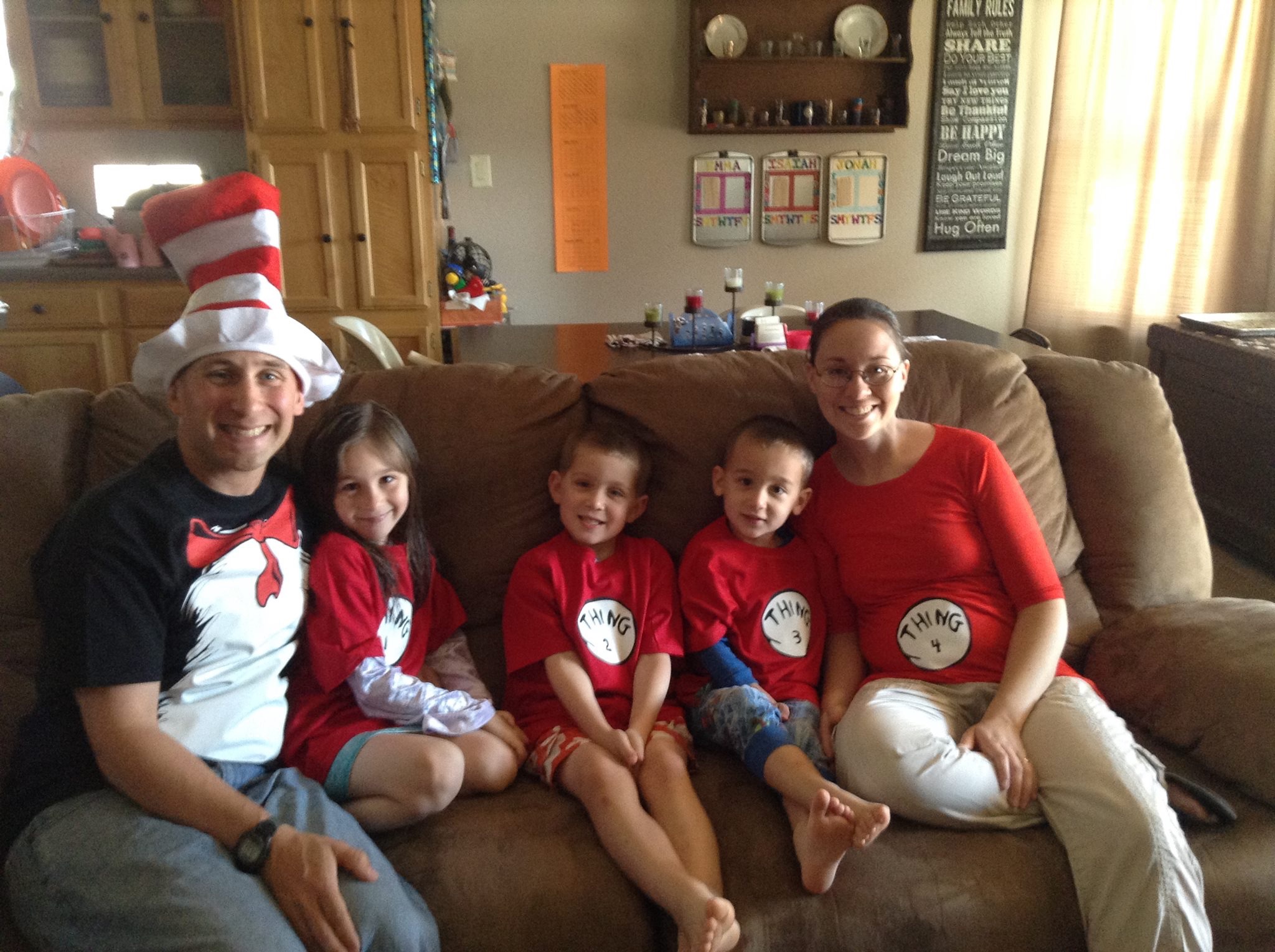 We told our kids I was pregnant by giving each of them "Thing #" shirts and having them figure out why I had Thing 4. We posted our photo shoot to announce back in April. Here's one we shared: