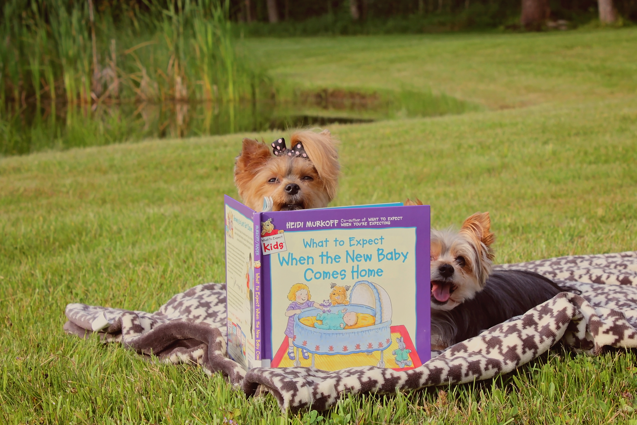 This was the way we announced on Facebook, along with a photo including my husband and I "reading" the book to the pups and some text announcing when baby was coming.