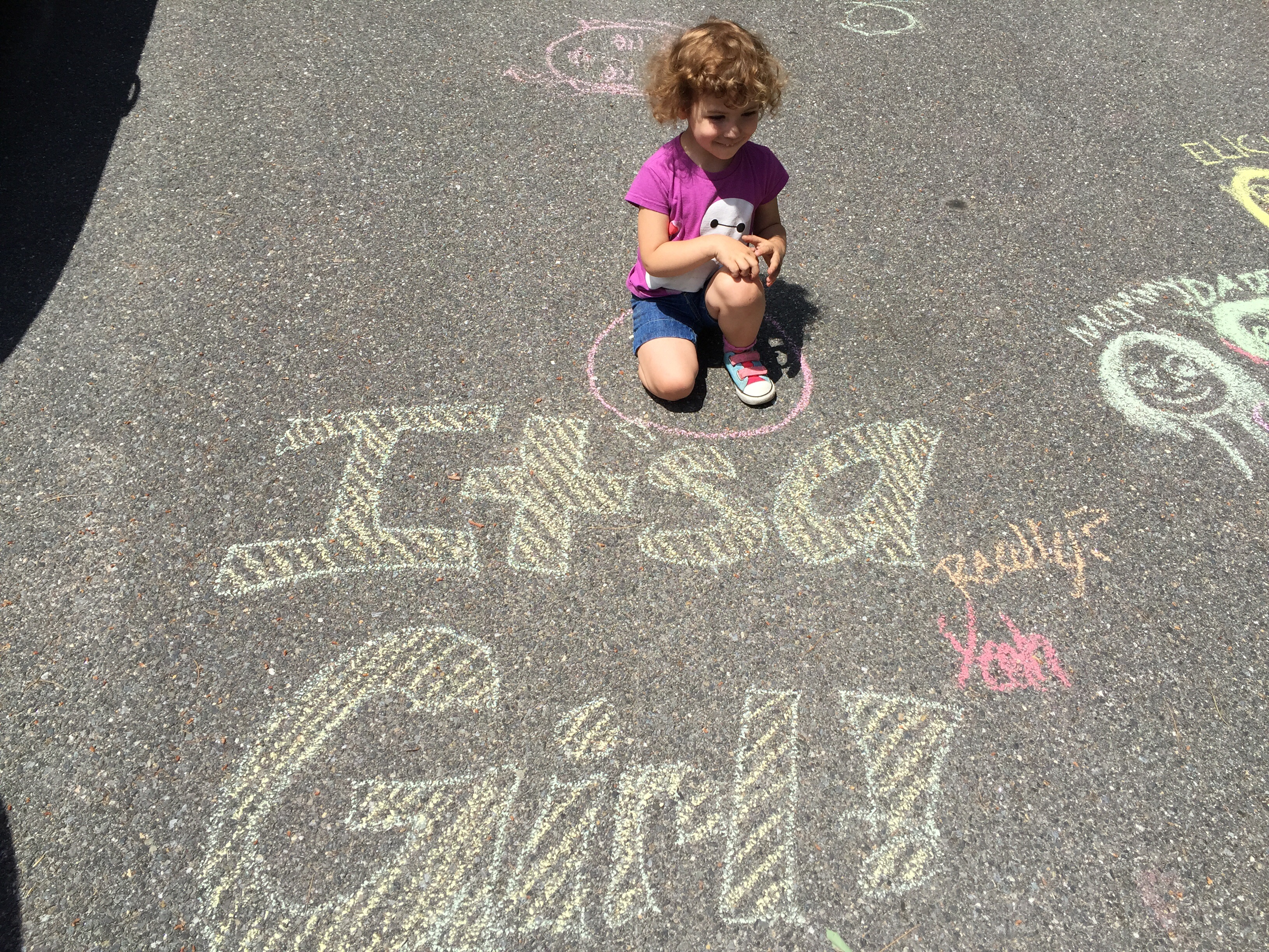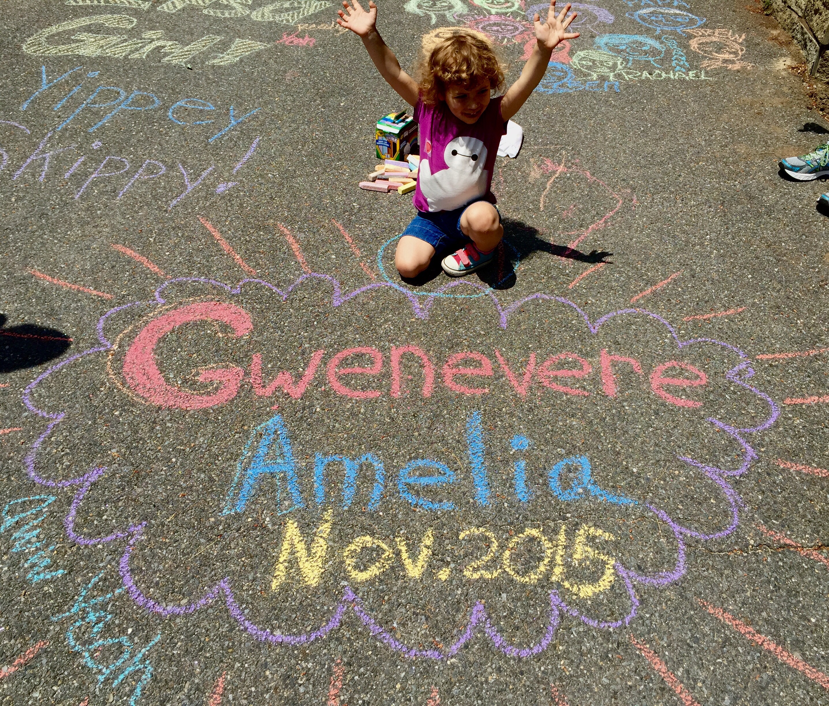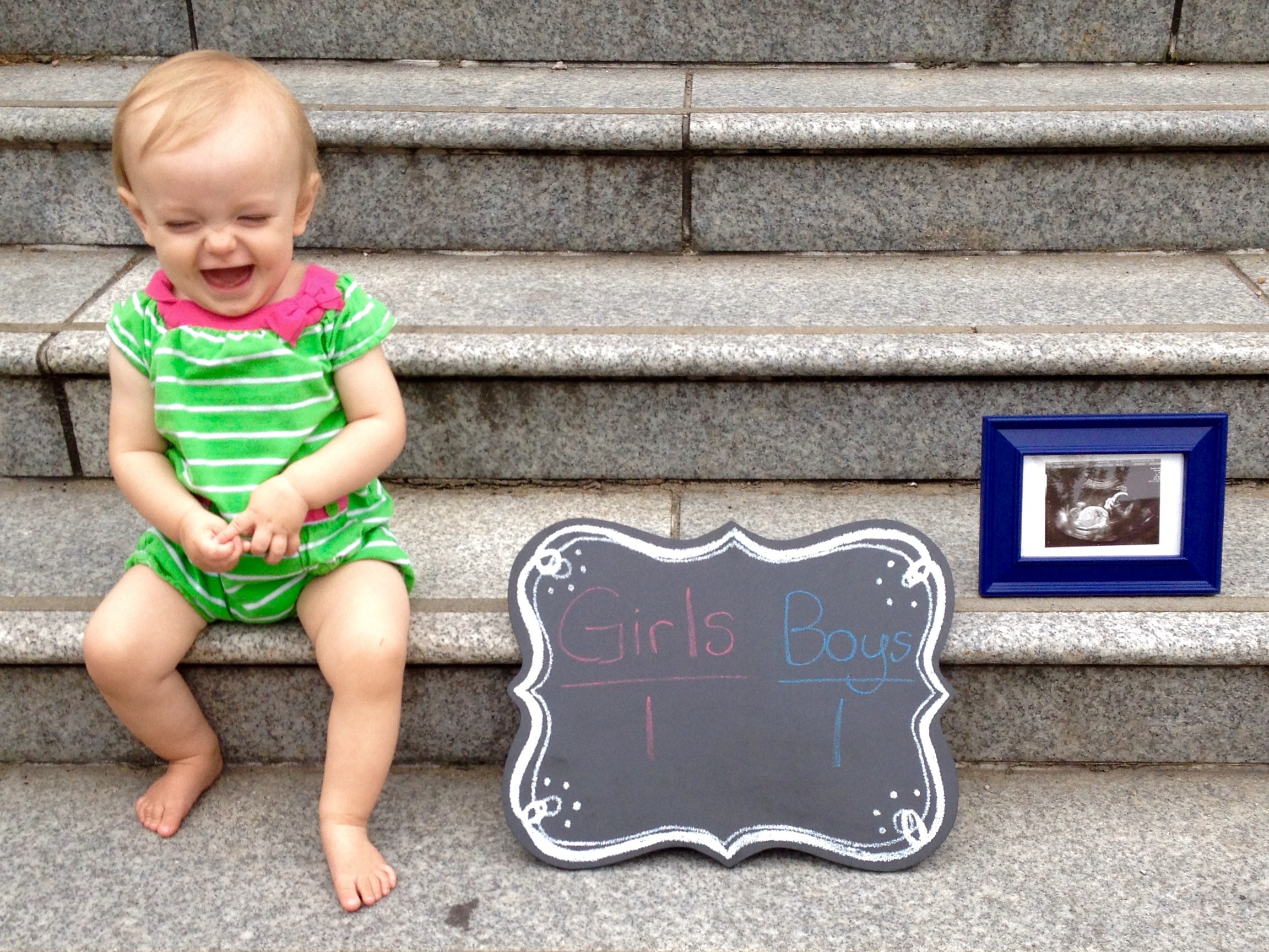 We announced it with our daughter telling everyone and then we announced the gender the same way. Sidewalk chalk is so much fun! And then we did a portrait of the entire family.