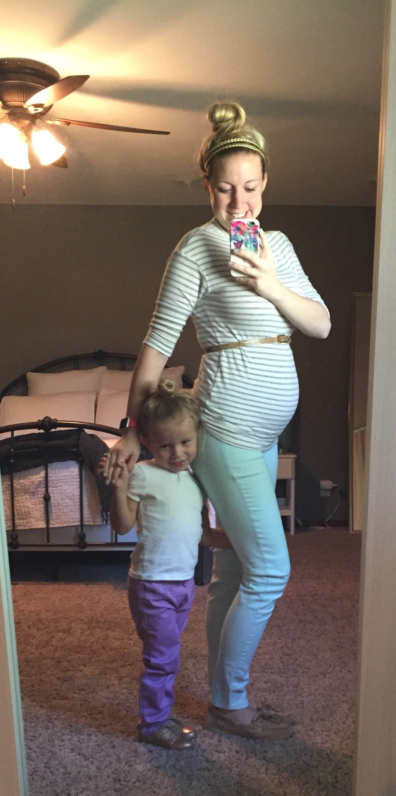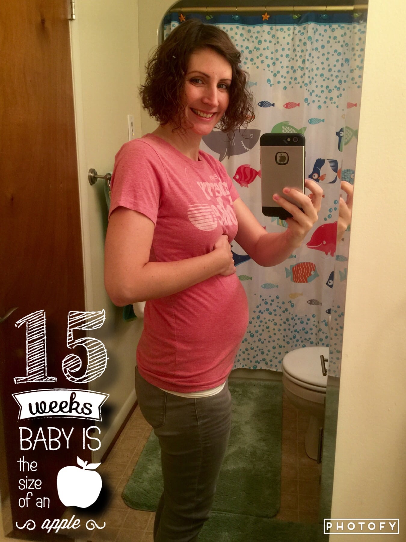 Taken on Sunday at 15 weeks - Big sister had just gotten a clown nose from the circus. Little sister is not too sure about it. Mom is having a bad hair day.