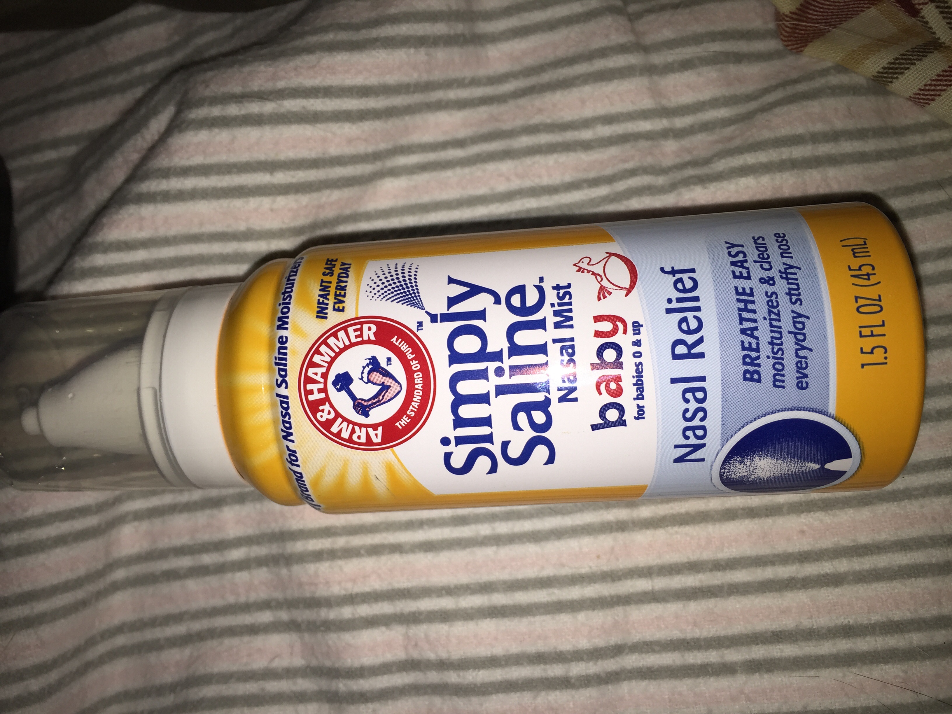 We use simply saline... We follow the directions basically. We put her on her side and spray, then use the sucker if we need to. A lot of times she sneezes it out before we use the sucker. She definitely doesn't like it, but it's not horrible. She typically cries until she realizes she can breathe better.
