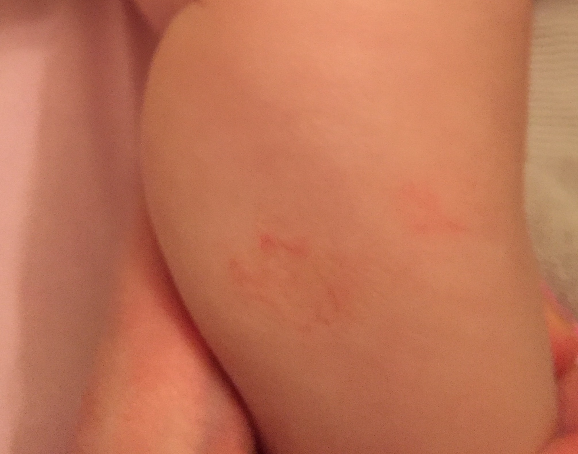 Then I get a call from daycare that she has a rash. I show up and it's bad. I take her to the doctor & she says the rash is an allergic reaction since it was the worst where there was no clothing, face arms legs...
