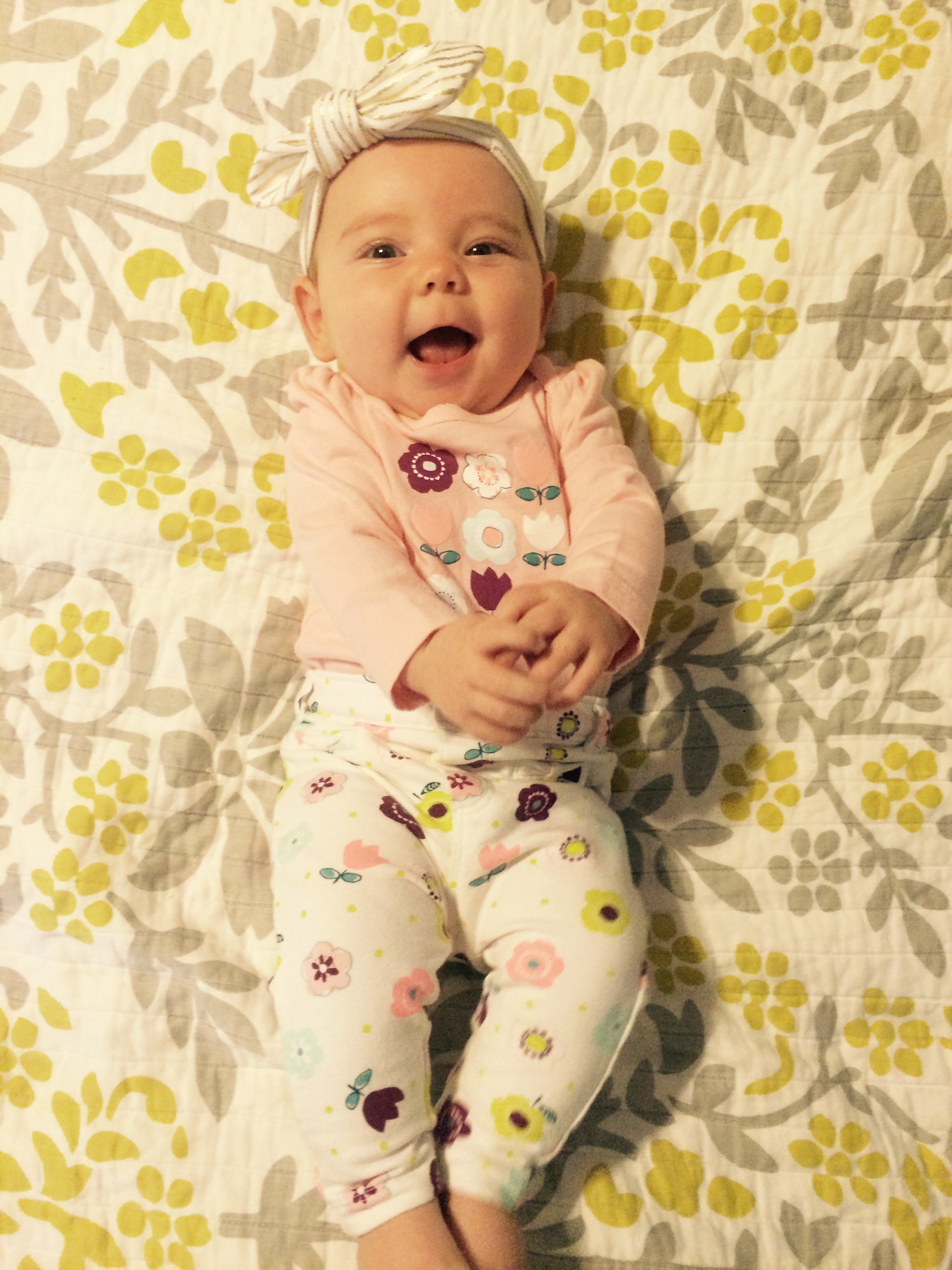 Riley turned 3 months yesterday! My parents came over and we brought her outside for the gorgeous day. She was fascinated by all the changing leaves. We also finally installed the cloth diaper sprayer, so she's officially a fluffybutt now!