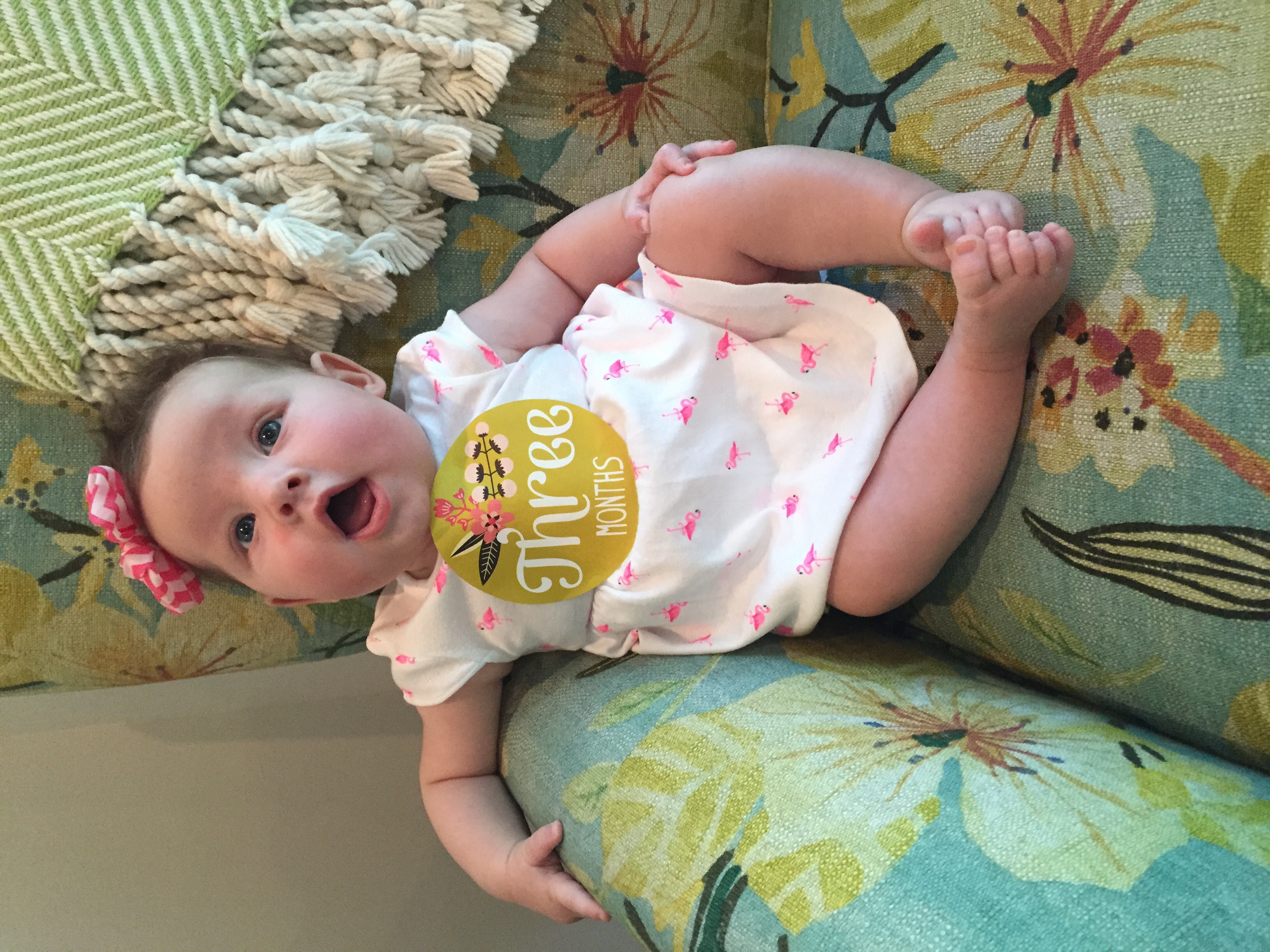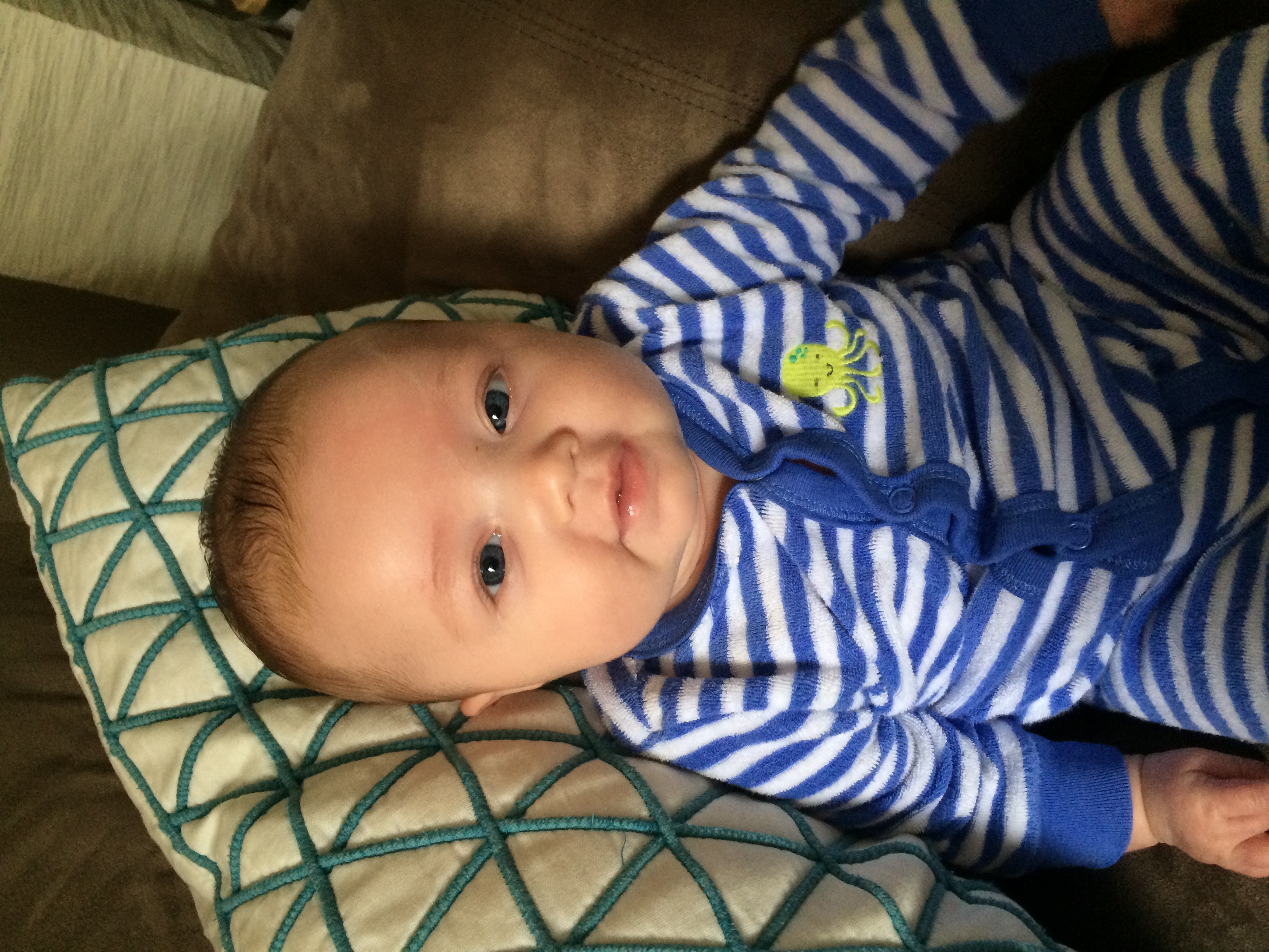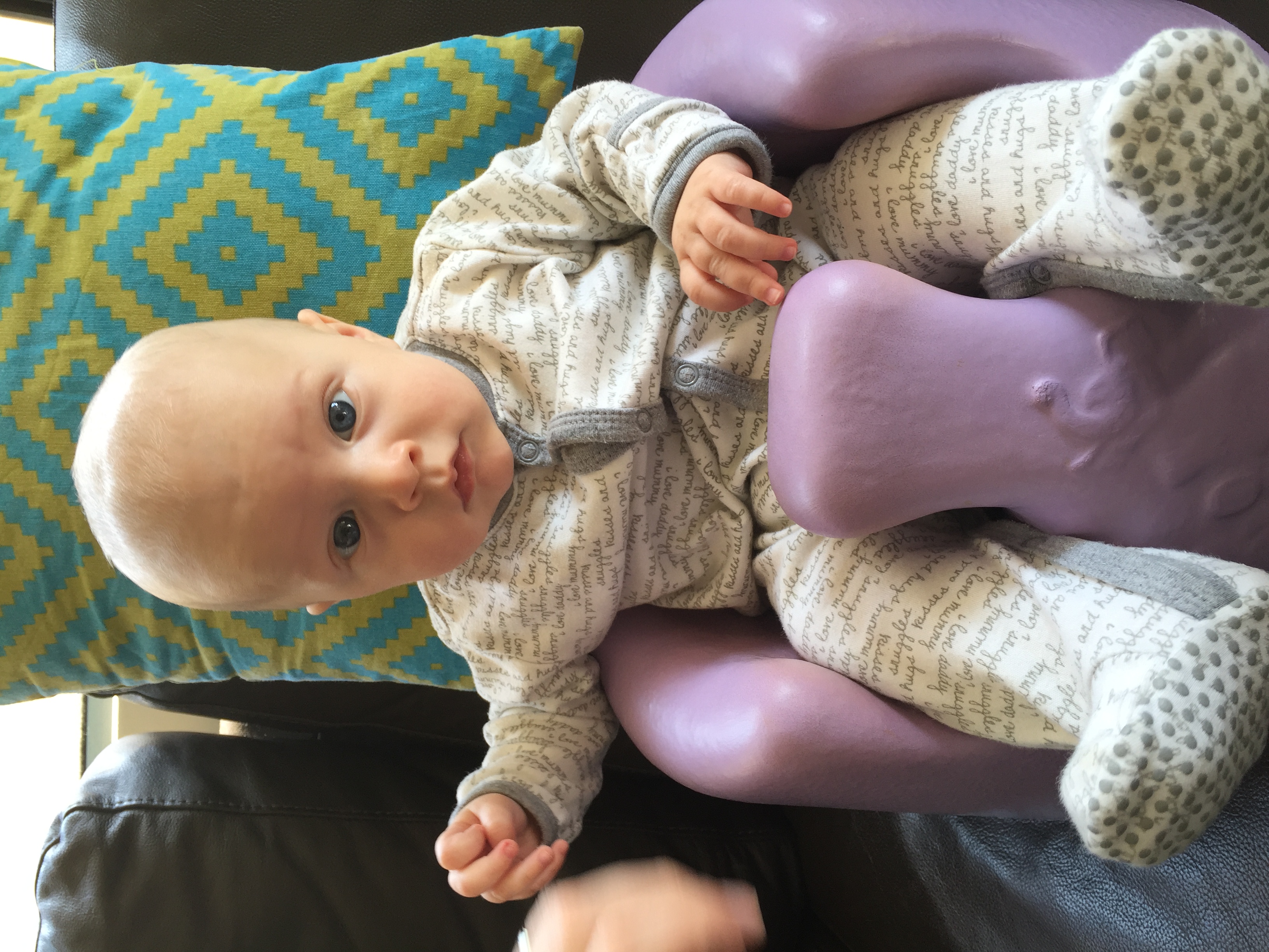 Just turned 3 months 2 days ago. He's really started checking everything out, so close to rolling over by himself and loves it when you help him sit/stand up (he actually grizzles when you put him down until you let him stand again).