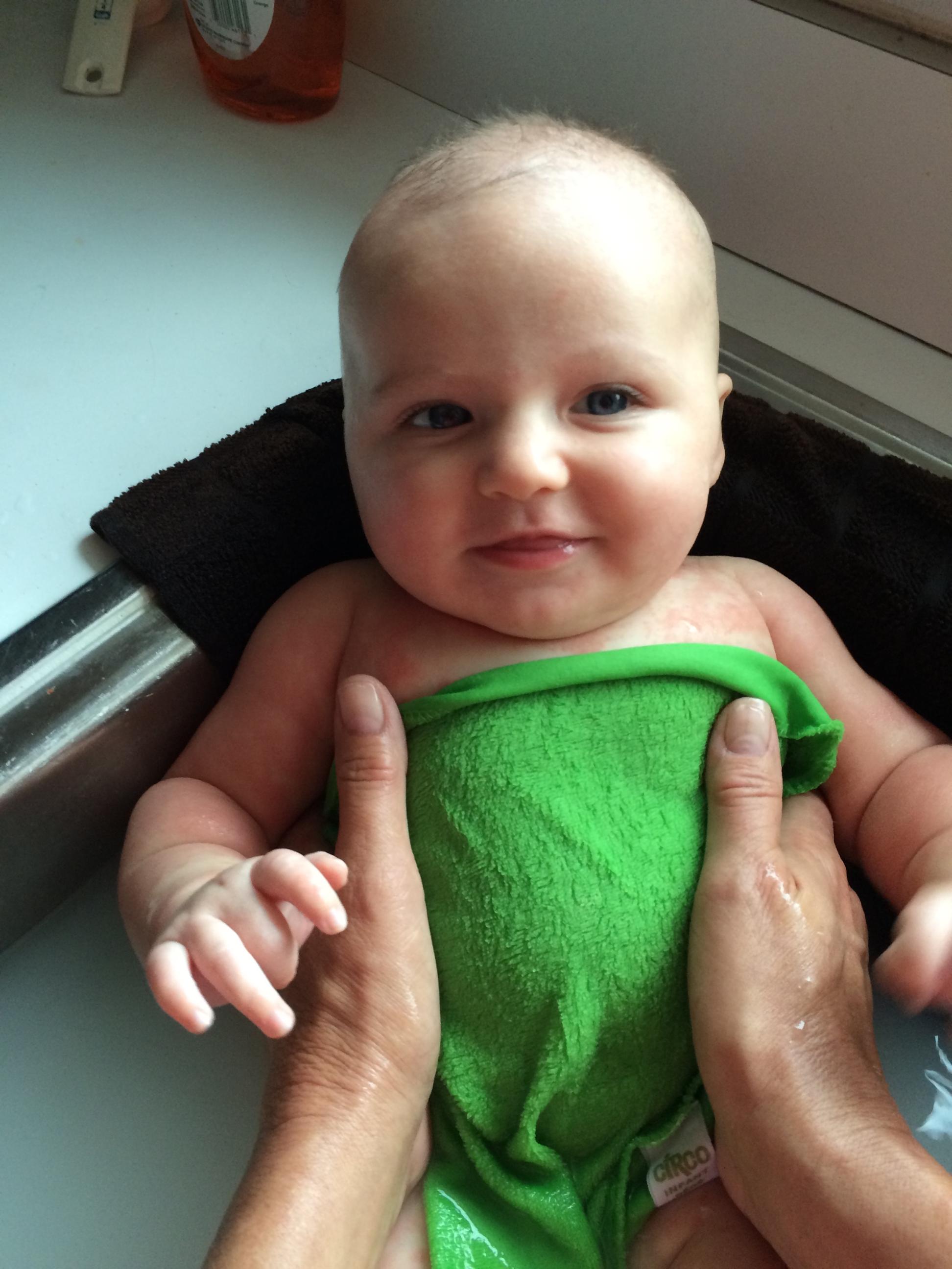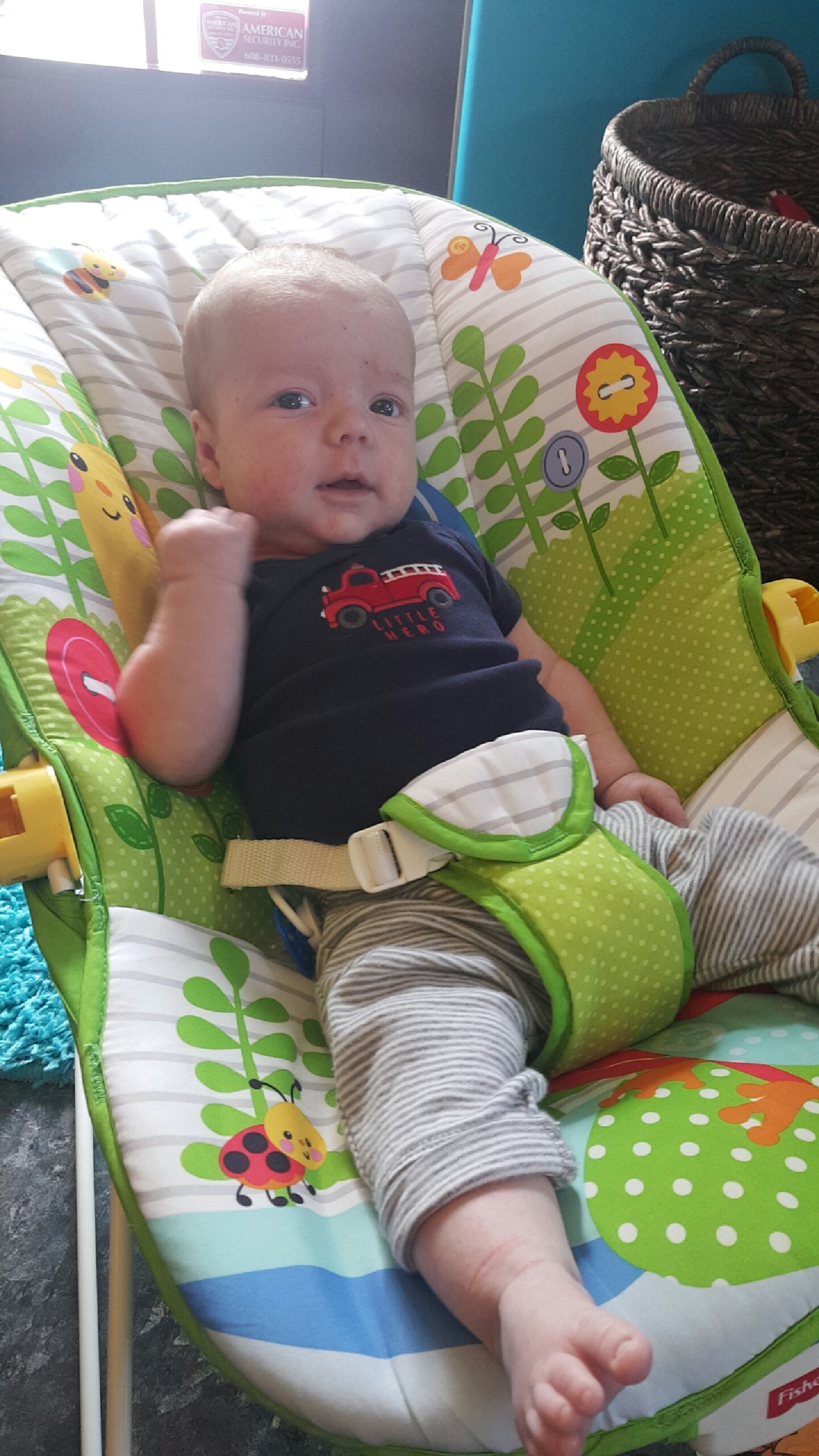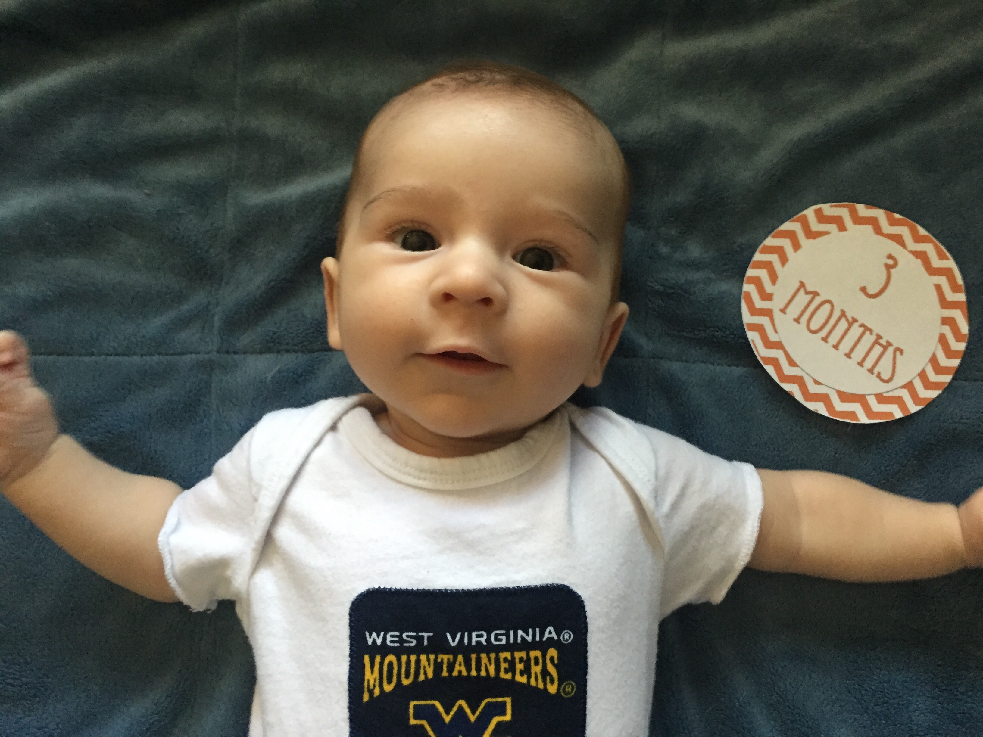 Just turned 3 months 2 days ago. He's really started checking everything out, so close to rolling over by himself and loves it when you help him sit/stand up (he actually grizzles when you put him down until you let him stand again).