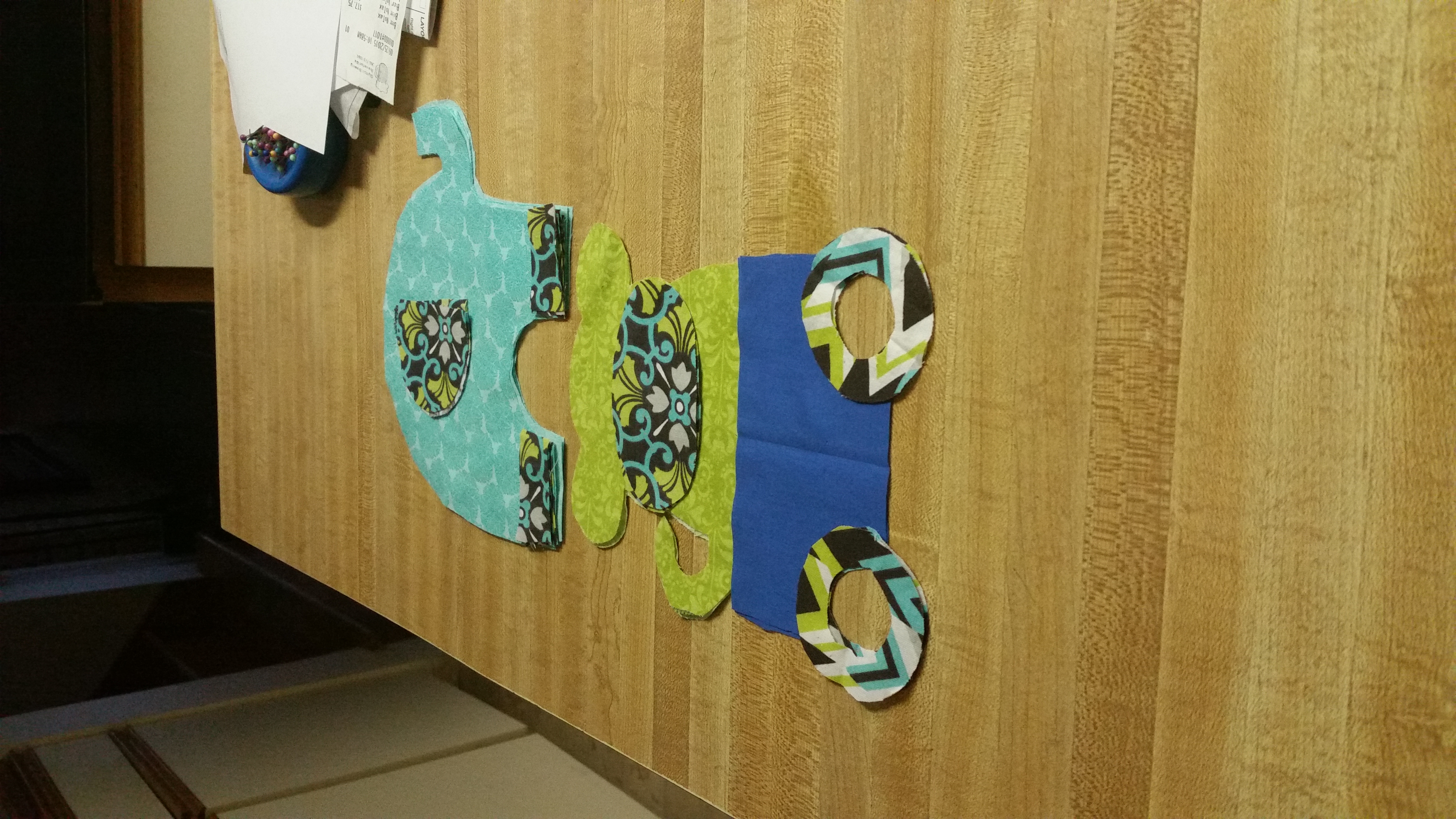 This is as far as I've gotten. Spent all day Saturday serging and ironing all the pieces of fabric I've picked out, and yesterday after watching my football game I spent the rest of the day cutting out animal shapes for elephants and monkeys for the crib bumpers. I still have to cut out lion shapes, but when copying the original pattern of it for the tiny details (so I wasn't cutting up the original pattern) was having computer difficulties so will have to do that another day.