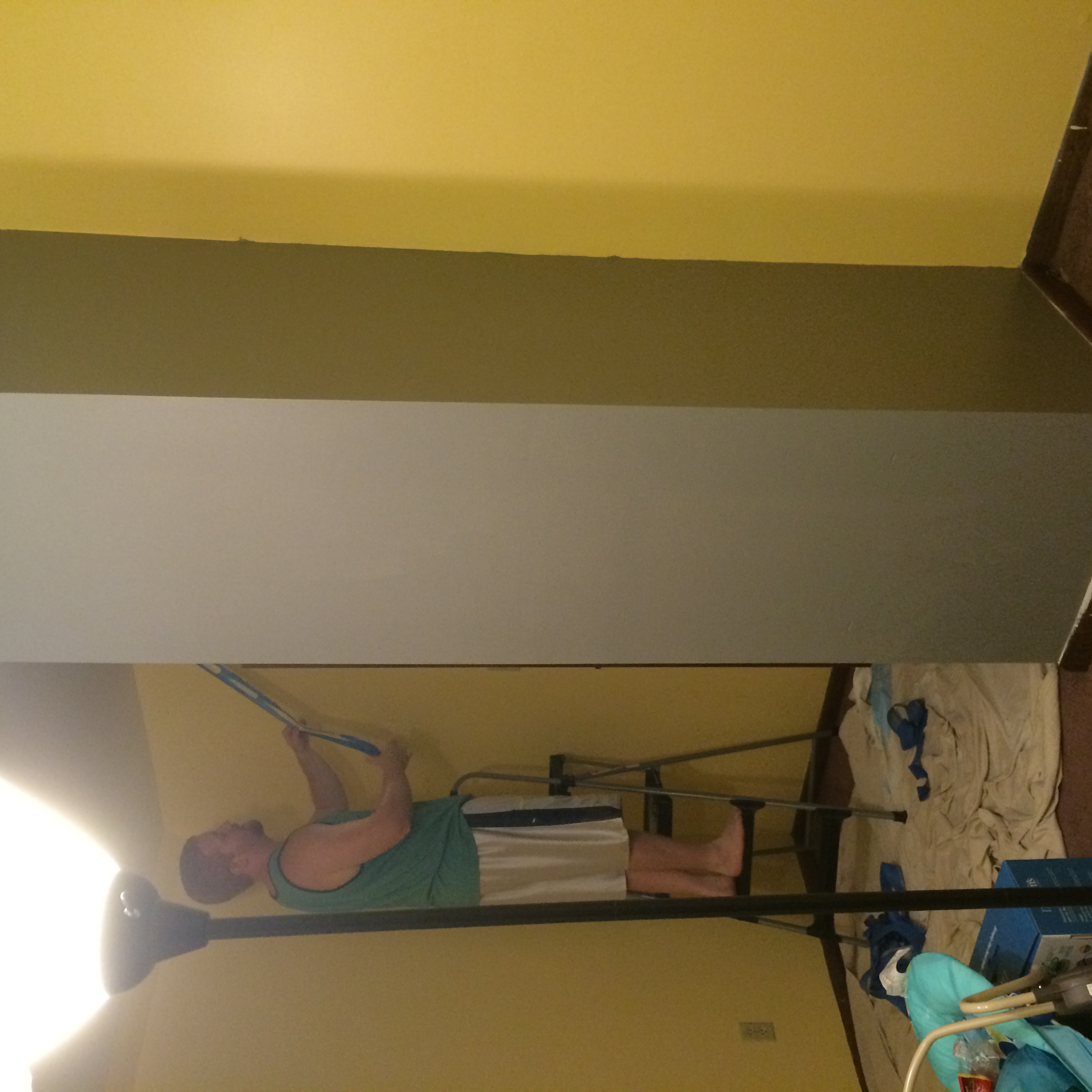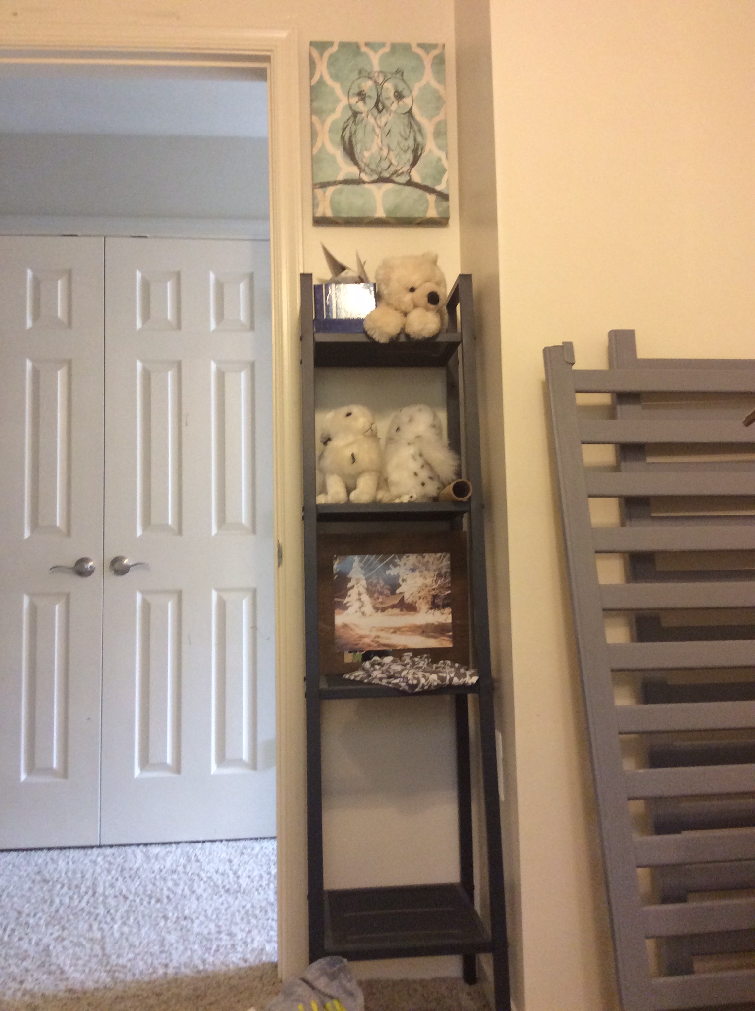 This is about as far as we have gotten. My dad is also painting a crib and dresser for us that he had gotten for free from someone. The crib is the same gray as the trim and accent wall and the dresser is going to be yellow and gray.