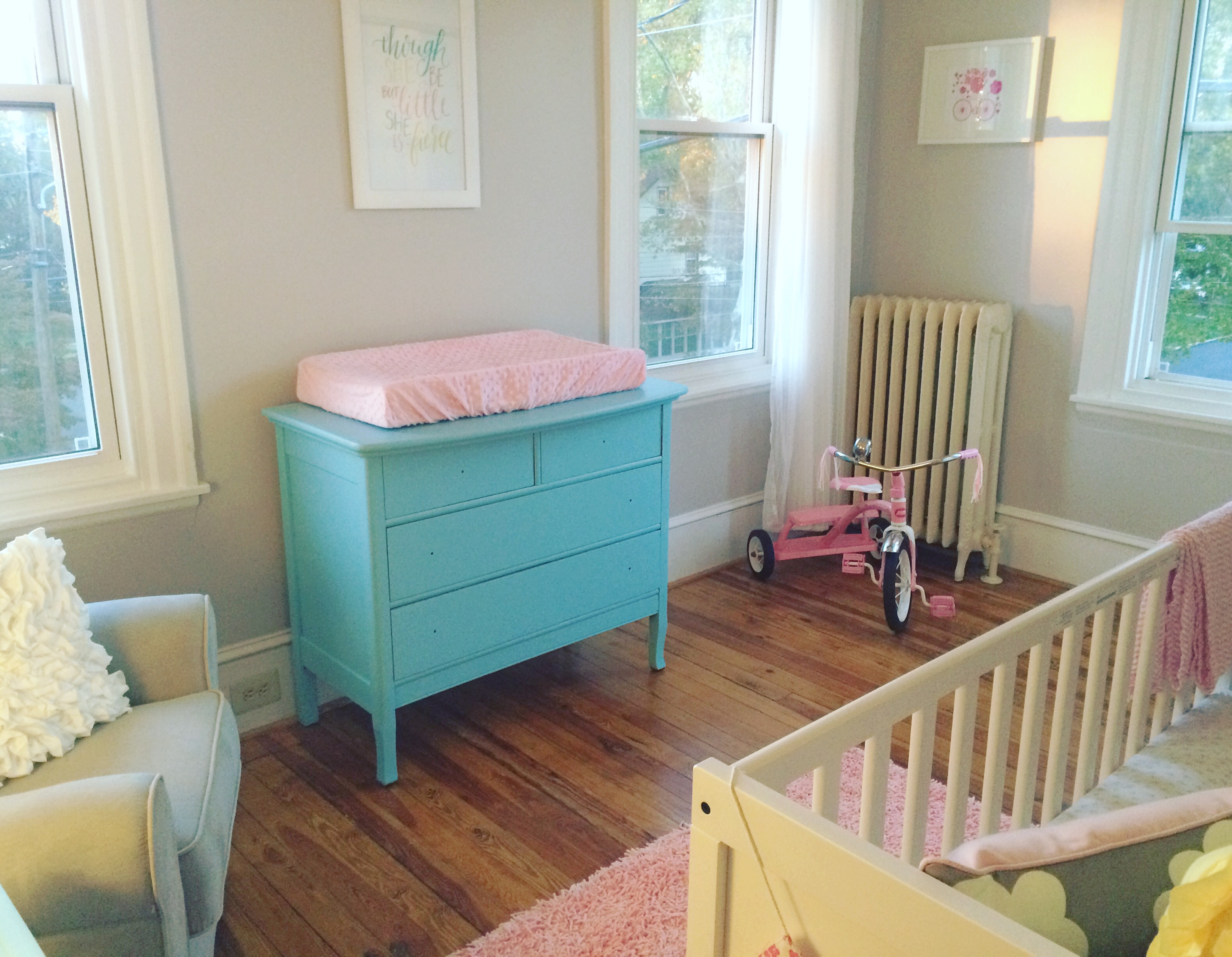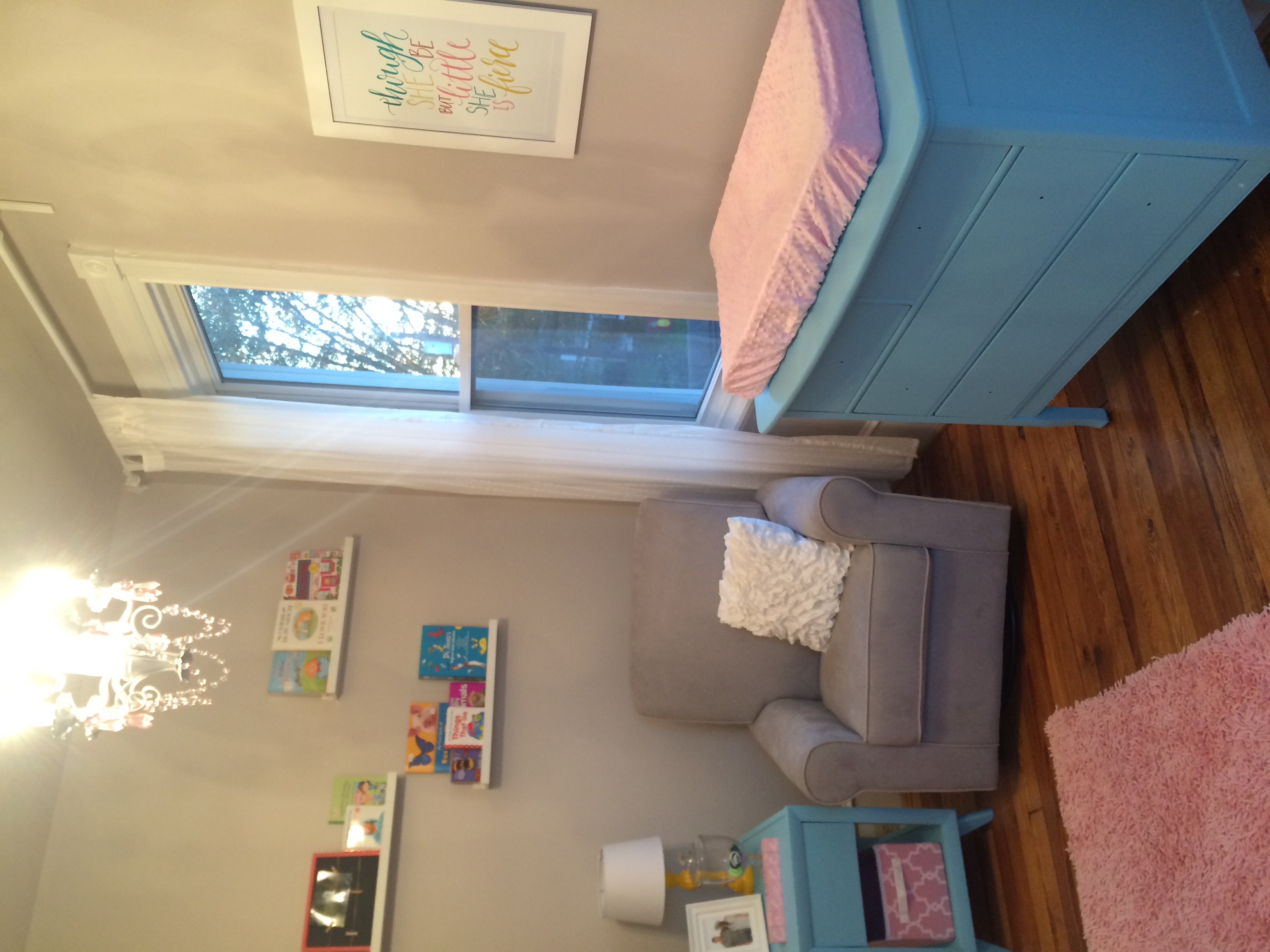 I got the rocking chair off of craigslist for 80 bucks! Crib from ikea for 80 bucks. The dresser I've had for years, the book shelf my grandpa had made for me when I was a kid... I just painted it.