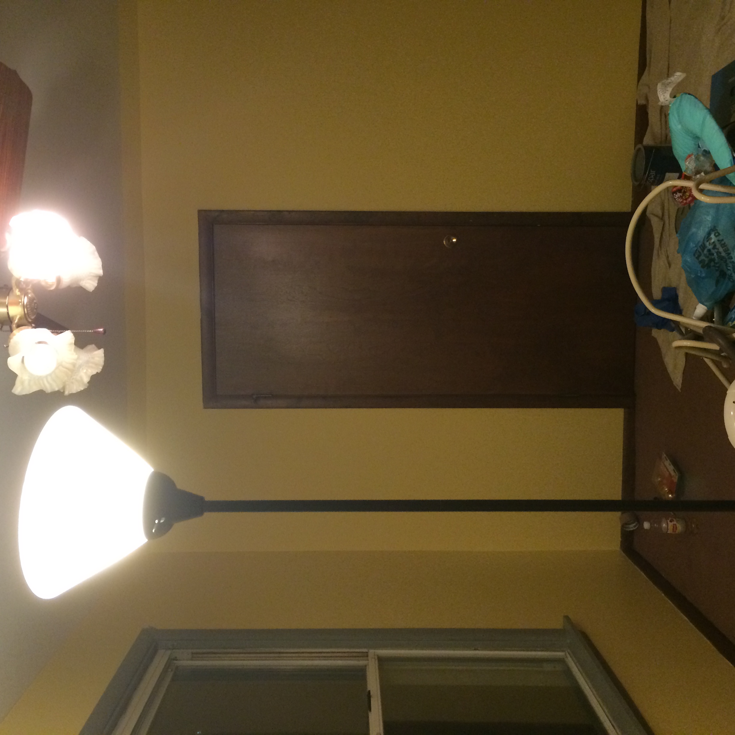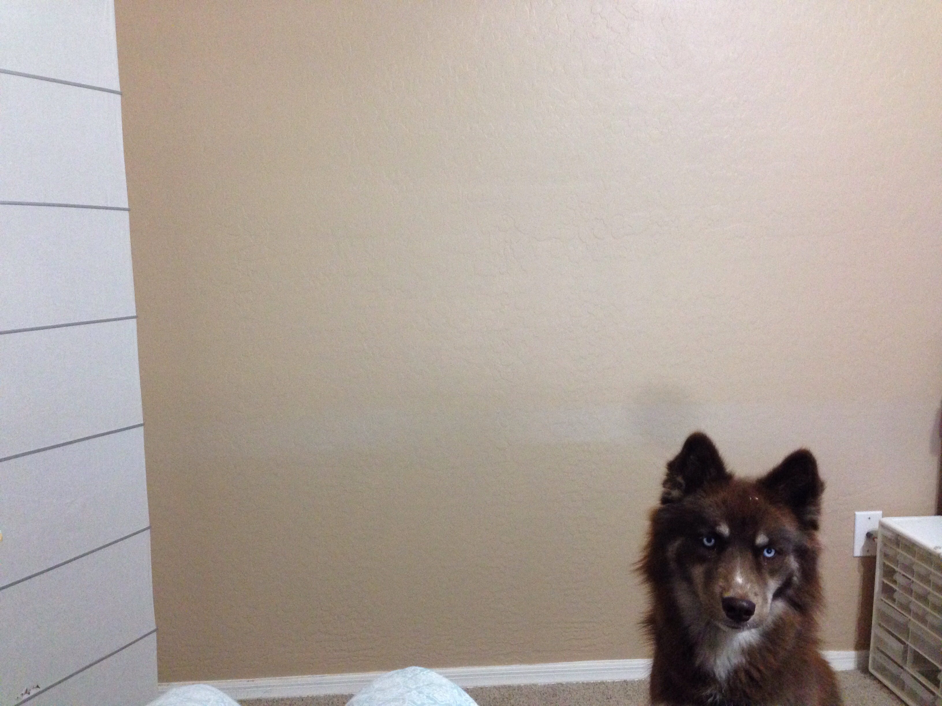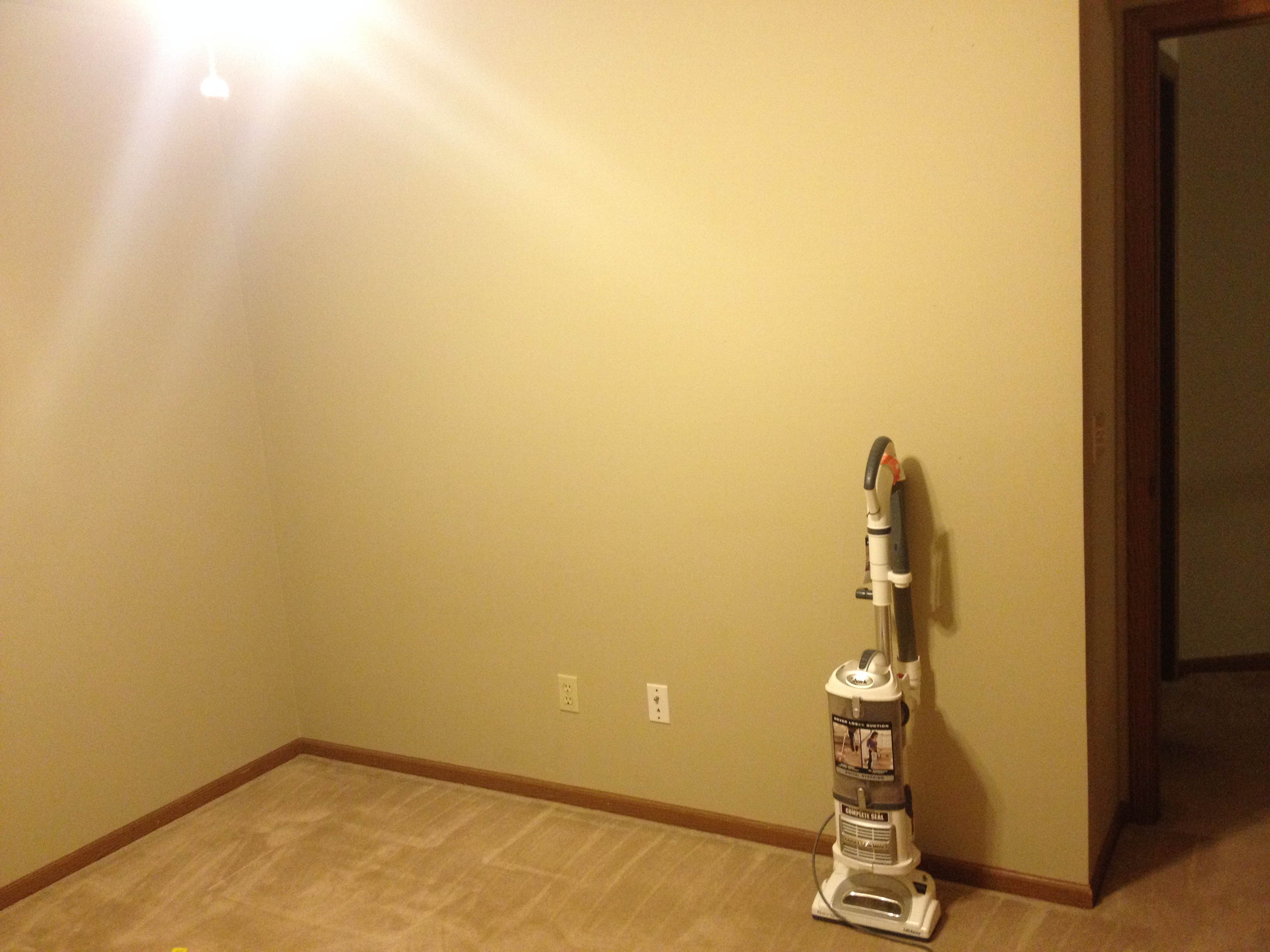 I finally got the room cleared. And we picked up a couple of samples of paint yesterday to test on the walls.