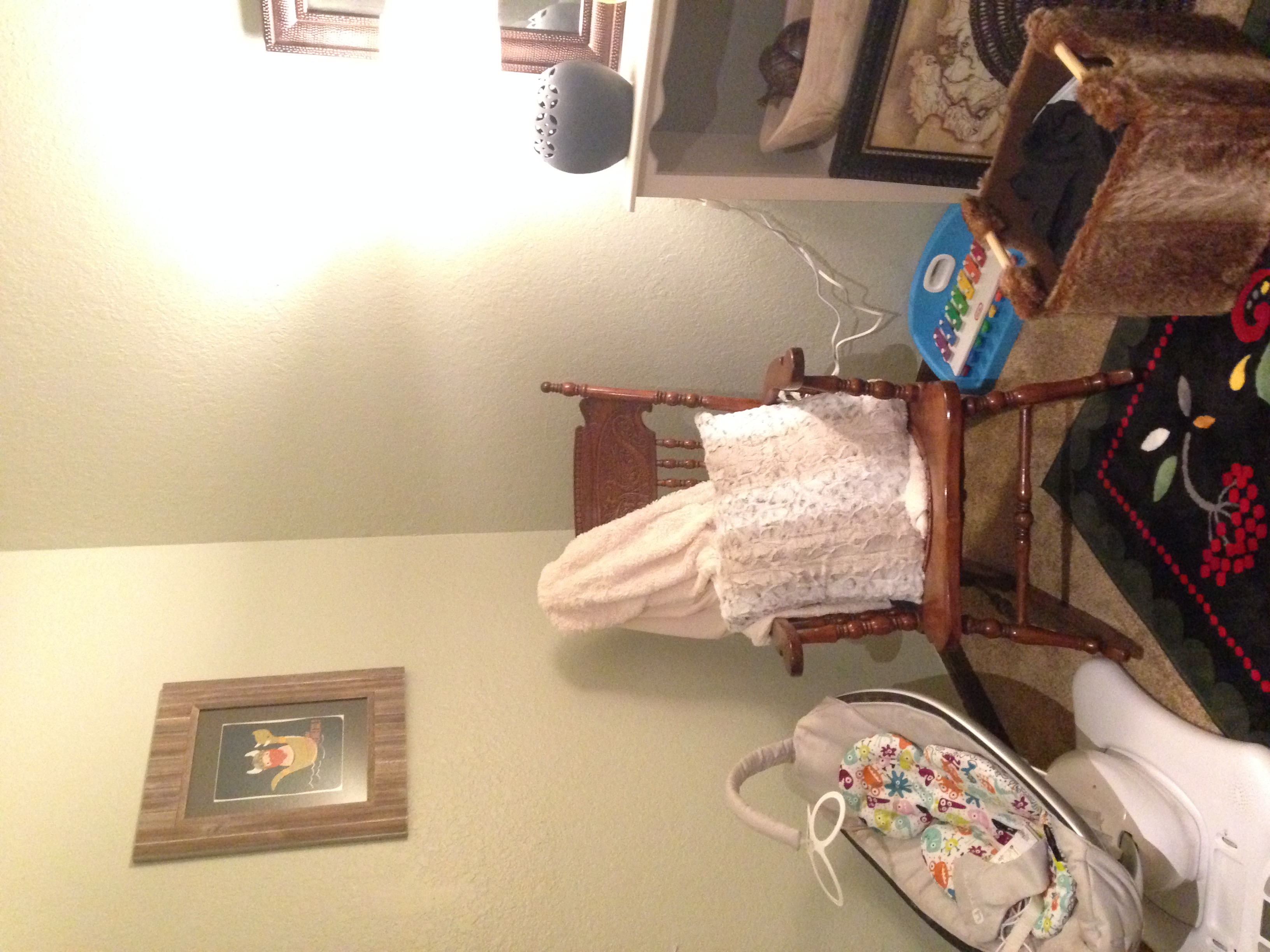 We still have a few things to move around, put away, and more decor on the walls. (And a few things need to be safety-tized) my sister gave me her mama roo and a few other things I've just put in the nursery for now. All in all its a tiny room and we have a ton of furniture in it. Lol