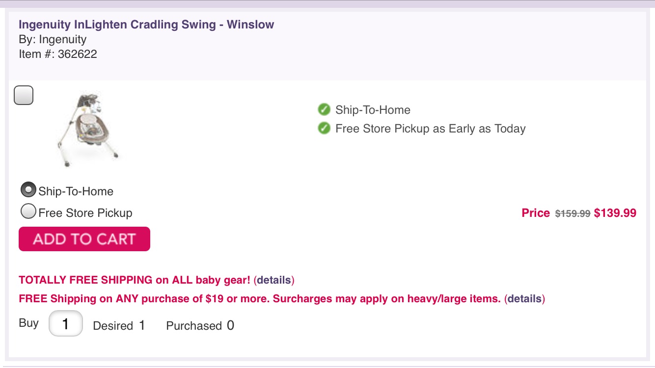 So last night my family finally put together the baby swing. Annnnnnd the stupid motor appears to have a problem. We got the Fisher Price Smart connect 4-n-1, detaches for a glider that can move from room to room. The motor sounds like it's on it's last breath, and barely swings at all. Hubby looked online at videos, and that's not how it's supposed to be. So BRU said I can exchange it for another, or just return and get a different one. I really liked this one, for the different swing positions, and also that it detached. None of the others seems to do both. But, I want to get this taken care of today, to make sure I have a working swing for next week. What has everyone else gotten and had success with?