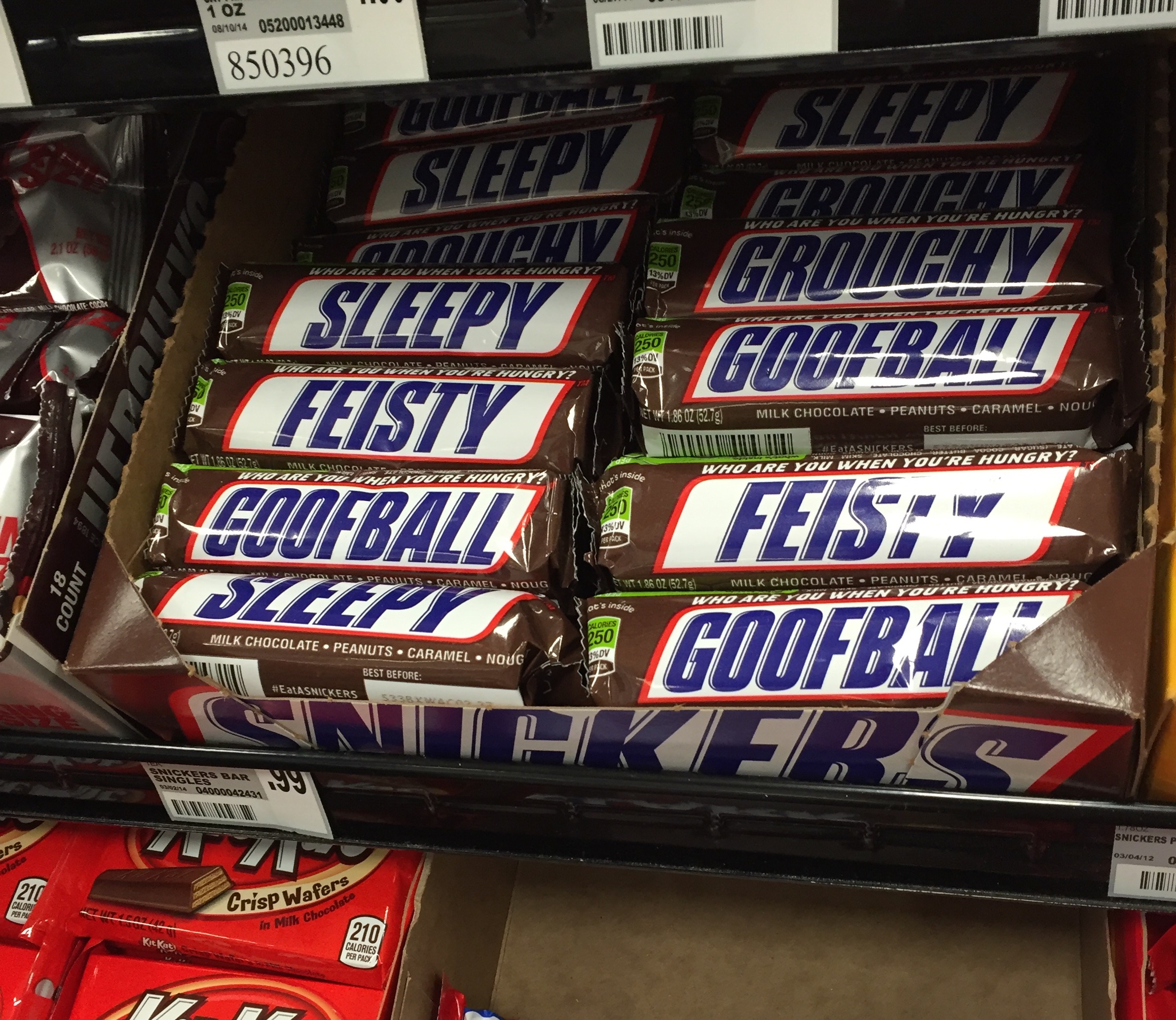 Either these Snickers say "sleepy" or I am so newborn sleep deprived I am seeing things.