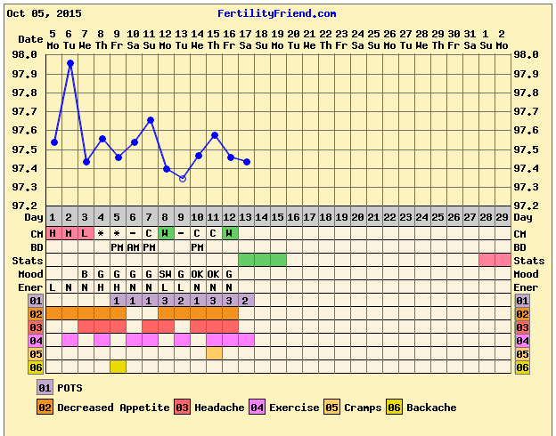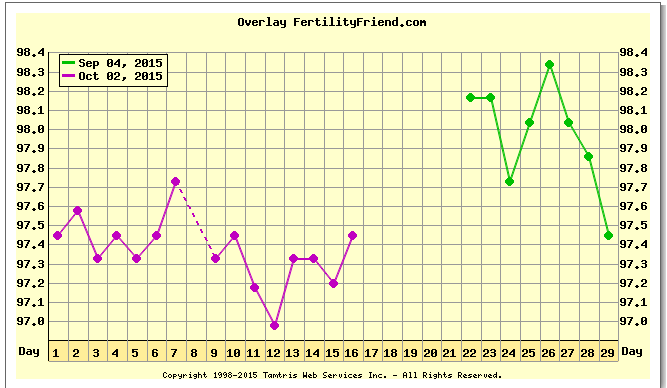 R/R/CS: took my temp this morning for the first time since AF started 5 days ago and to my surprise it's still really high 98.2 when my usual post-AF temp have been 97.8, for the past 7 months. This just add a piece to my really messed up body. I know I'm not pregnant because the nurse at the OBGYN made me take a test at home yesterday when I called for the thin period/huge clot to make sure I didn't add an ectopic pregnancy. And the FRER was negative. So here's my question. do you have a winter and a summer bbt? My highest temp last month after O were the highest I had in 7 months.