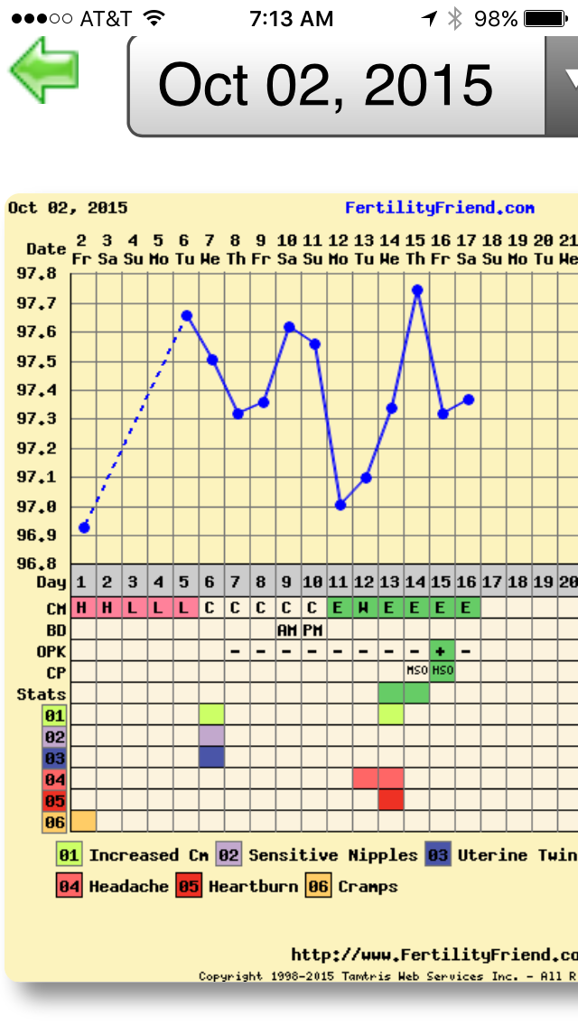 R/R/CS: This may sound ridiculous..sometimes I when I read the details on FF it sounds like the app is juding me- "you took your temperature at different times, it will not be accurate" Ah! It was only 55 minutes apart and it was once. Just deal with it FF.