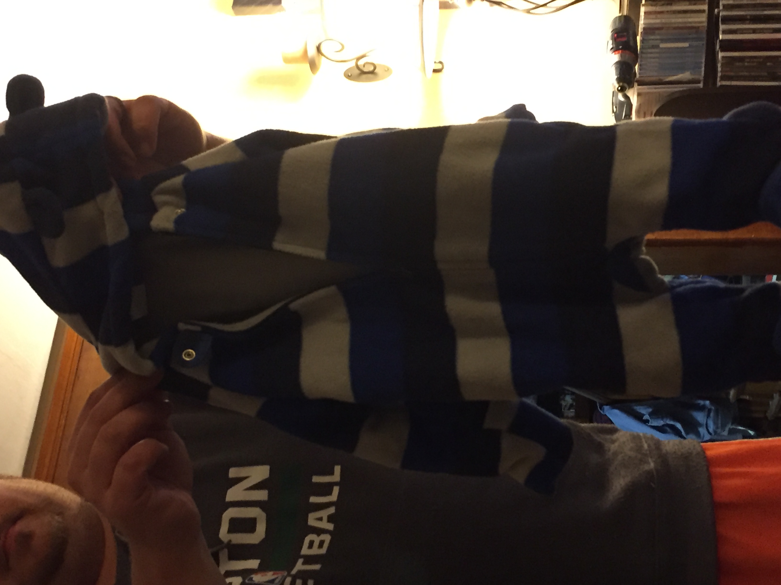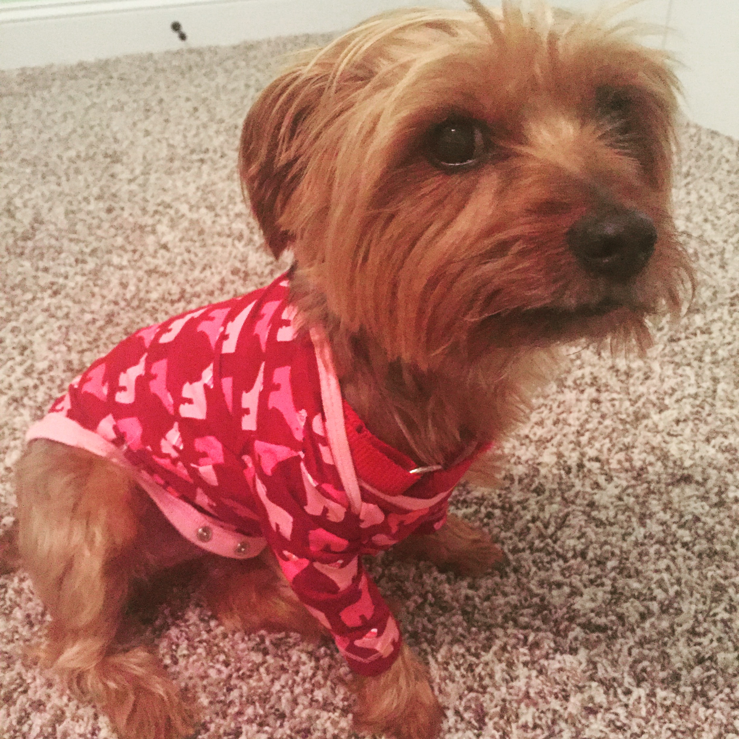 I think he secretly loved it. He always loves putting his sweater on when it's cold!!