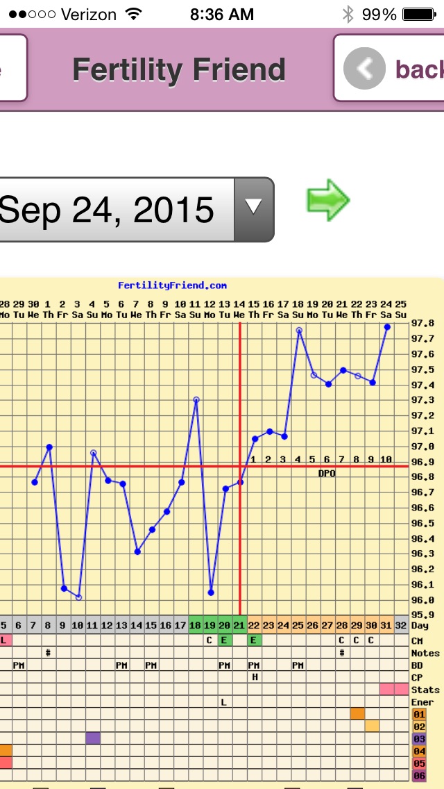 Rant/Rave/Chart Stalk: I forgot to pack my thermometer so I had to buy a new one, which I like better and think is more accurate but today's temp was important and now my chart might be even more inaccurate than before. AND it doesn't look good so...hopes are dashed. And now I wait.